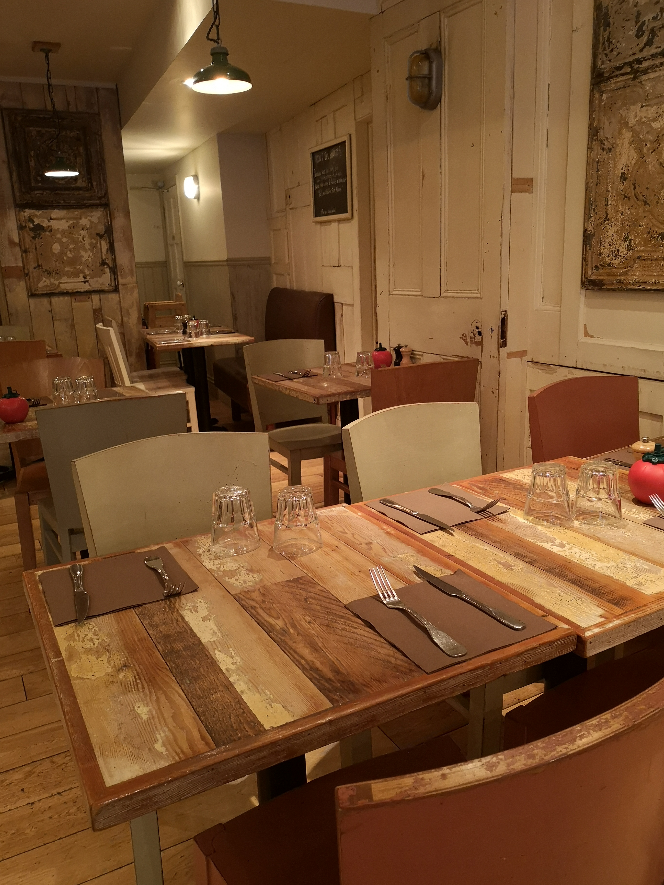 Nous n'avons pas passé un excellent moment... La localisation est attractive mais les prix sont élevés. Motivées par les salades, nous avons cependant été déçues par la quantité et surtout par le goût !( gros bémol sur les 3 petits morceaux de pain amenés pour 3 personne...) Ça pourrait presque être drôle : Les chaises vintage partent en lambeaux ! Des échardes sont entrées dans nos pantalons en bougeant... Le service était agréable et les serveurs souriants, cependant !