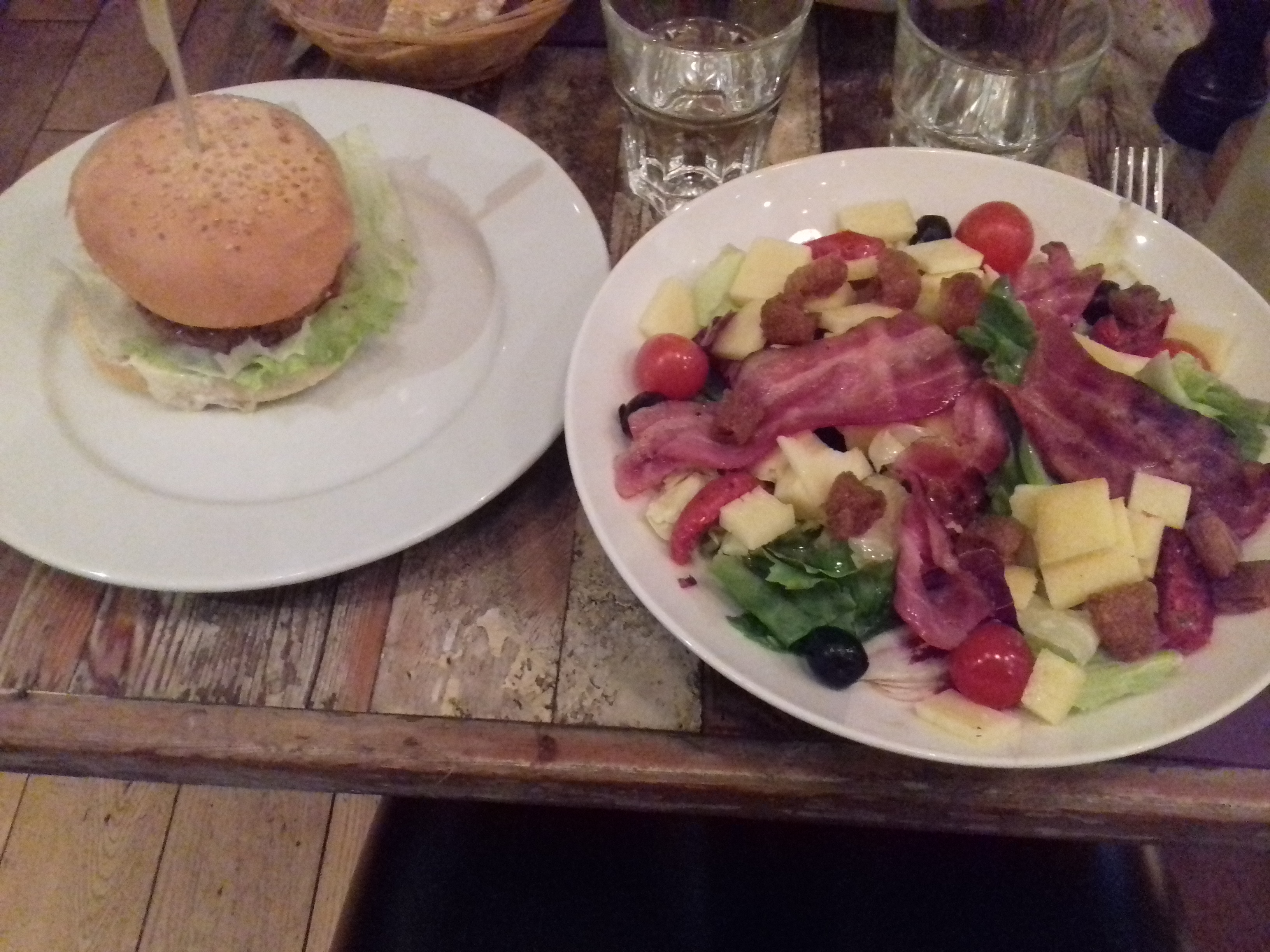Burger plutôt bon même s’il existe mieux dans le coin. Un morceau de plastique dans la salade, signalé à la serveuse. J’ai faillit m’étouffer avec… dommage. Un geste co plus conséquent que un café offert aurait été bienvenu…
