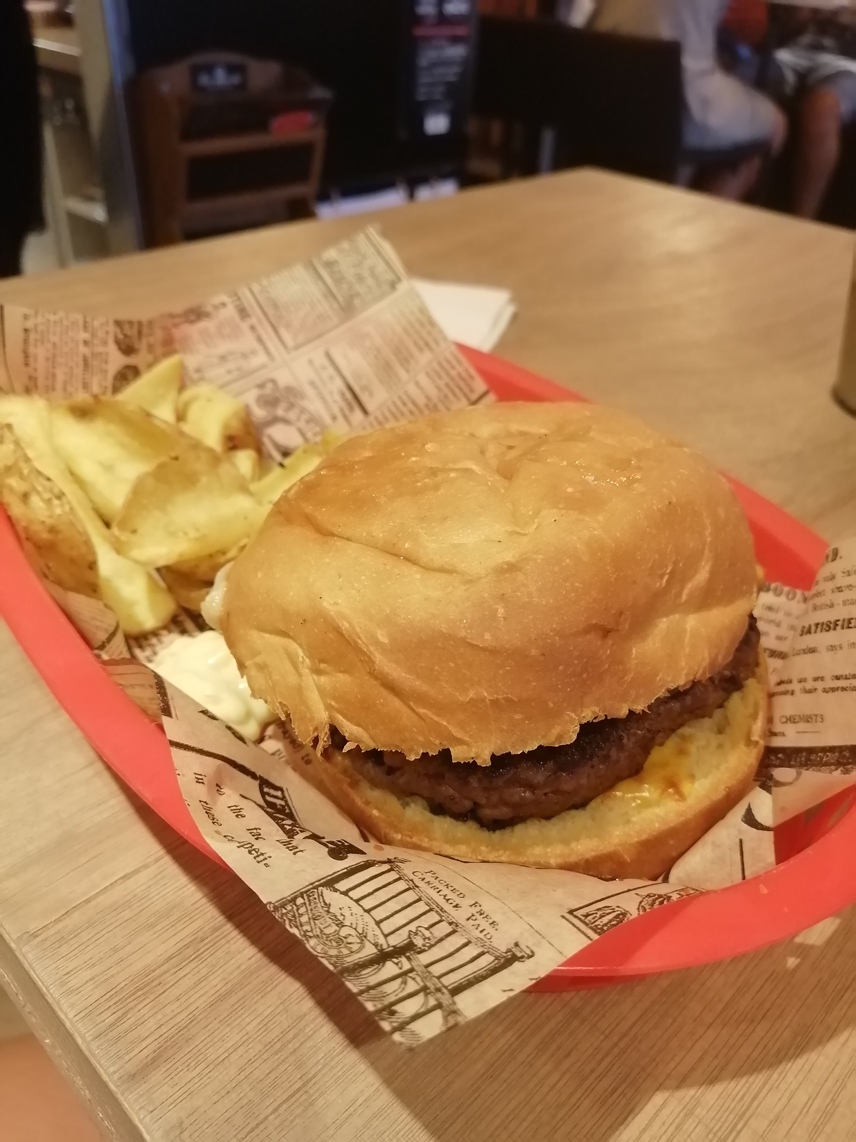 Burger extra bon, pain au top, viande rien à dire. Service très rapide pour une table de 8 personnes. Déco très sympa 😁