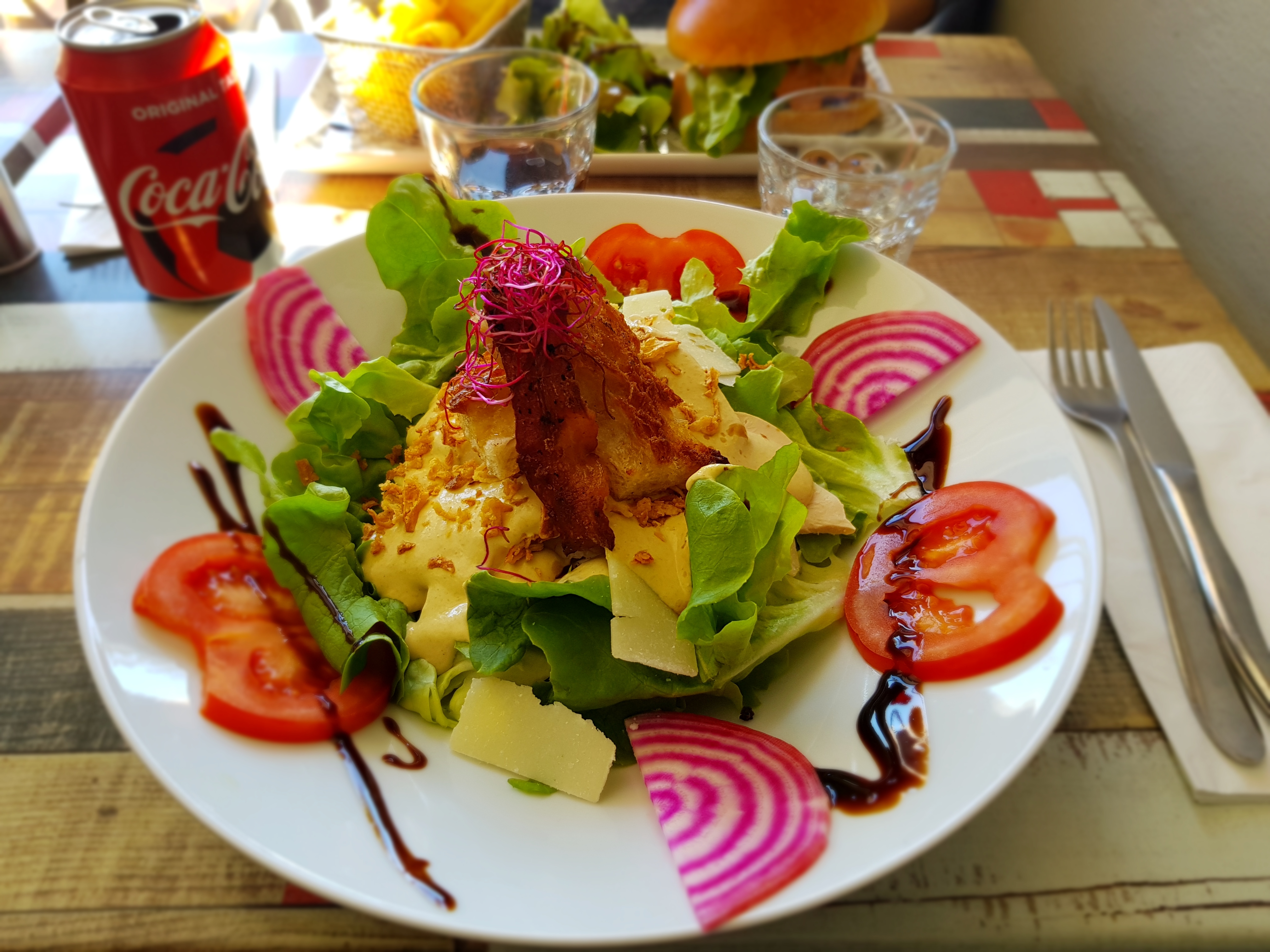 Établissement sympathique et bien placé en bord de mer avec des prix abordables mais la salade césar était une simple salade avec du poulet. Je ne me suis pas régalée. Pas de panure, pas de croûtons, du lard (pourquoi ?), une sauce industrielle trop présente (salade noyée et brûlée) et loin du goût d'une César (à la limite ne mettez que de l'huile d'olive et du sel ou la vraie sauce césar), 1 seule tomate cerise coupée en 2, peu de Parmesan. Assiette donc peu fournie. Escalope de poulet basique. Dommage. Peut-être sommes nous venus le mauvais soir (concert sur la plage)? Désolée mais j'aime trop la César et je suis déçue....