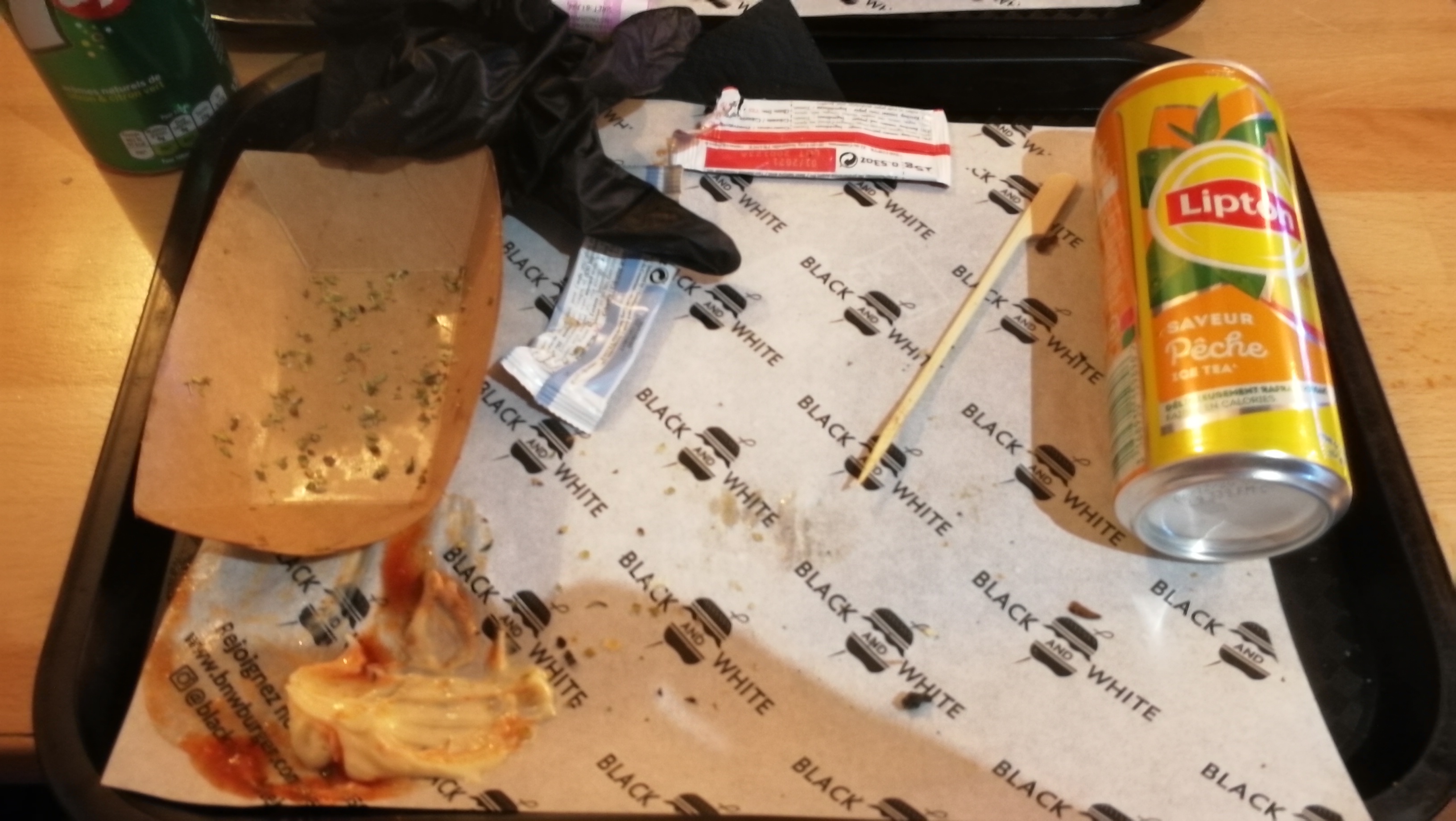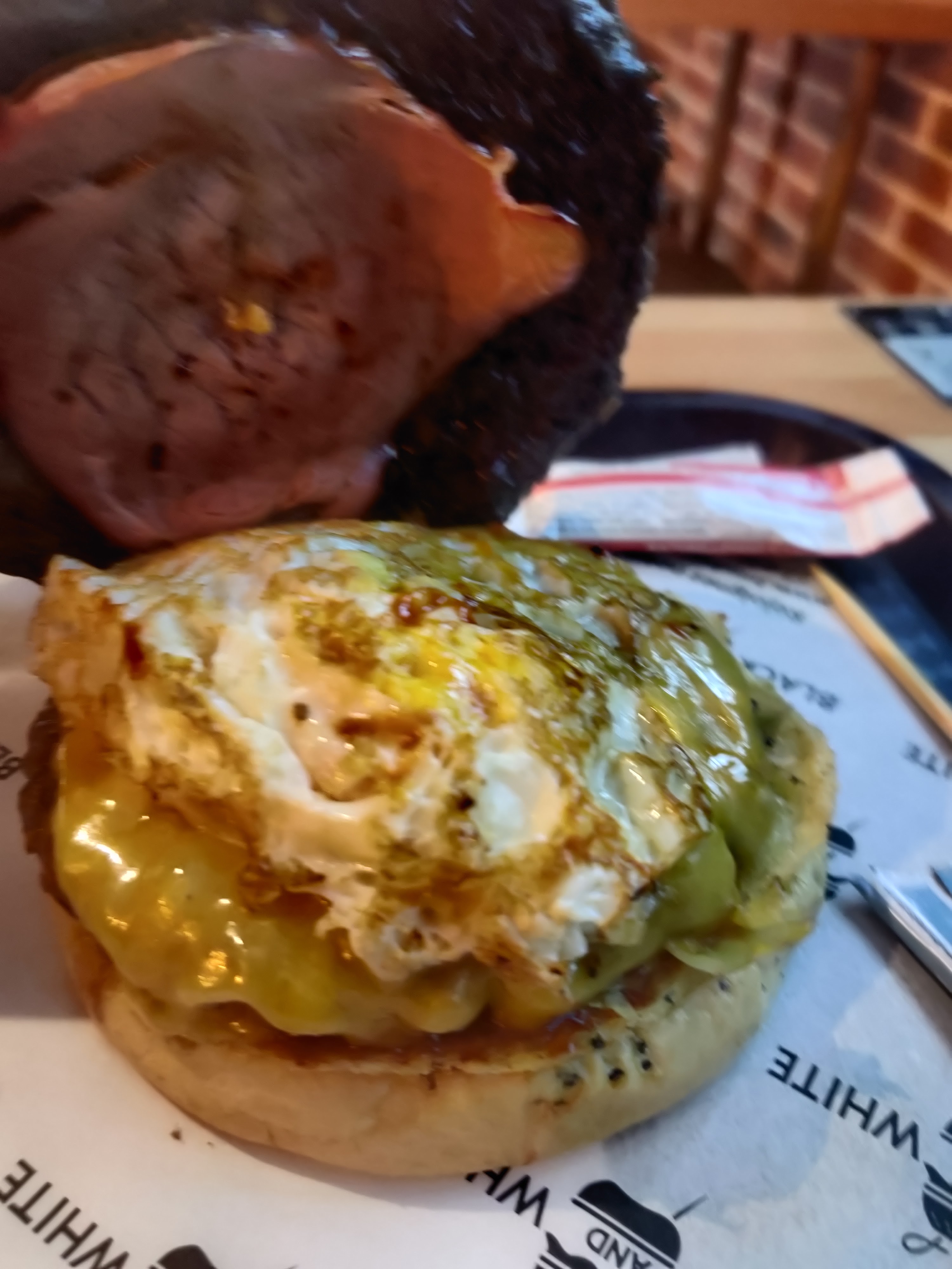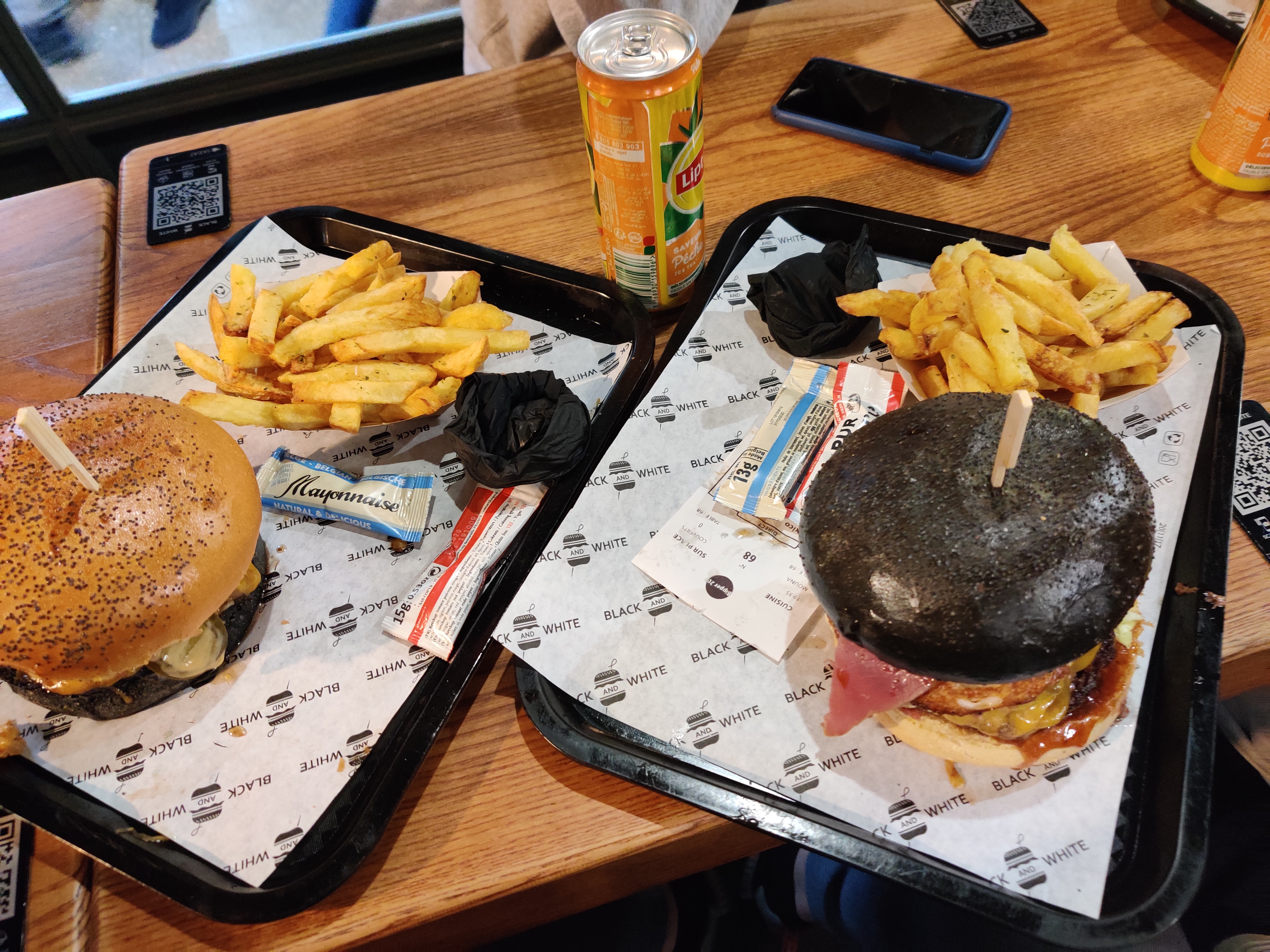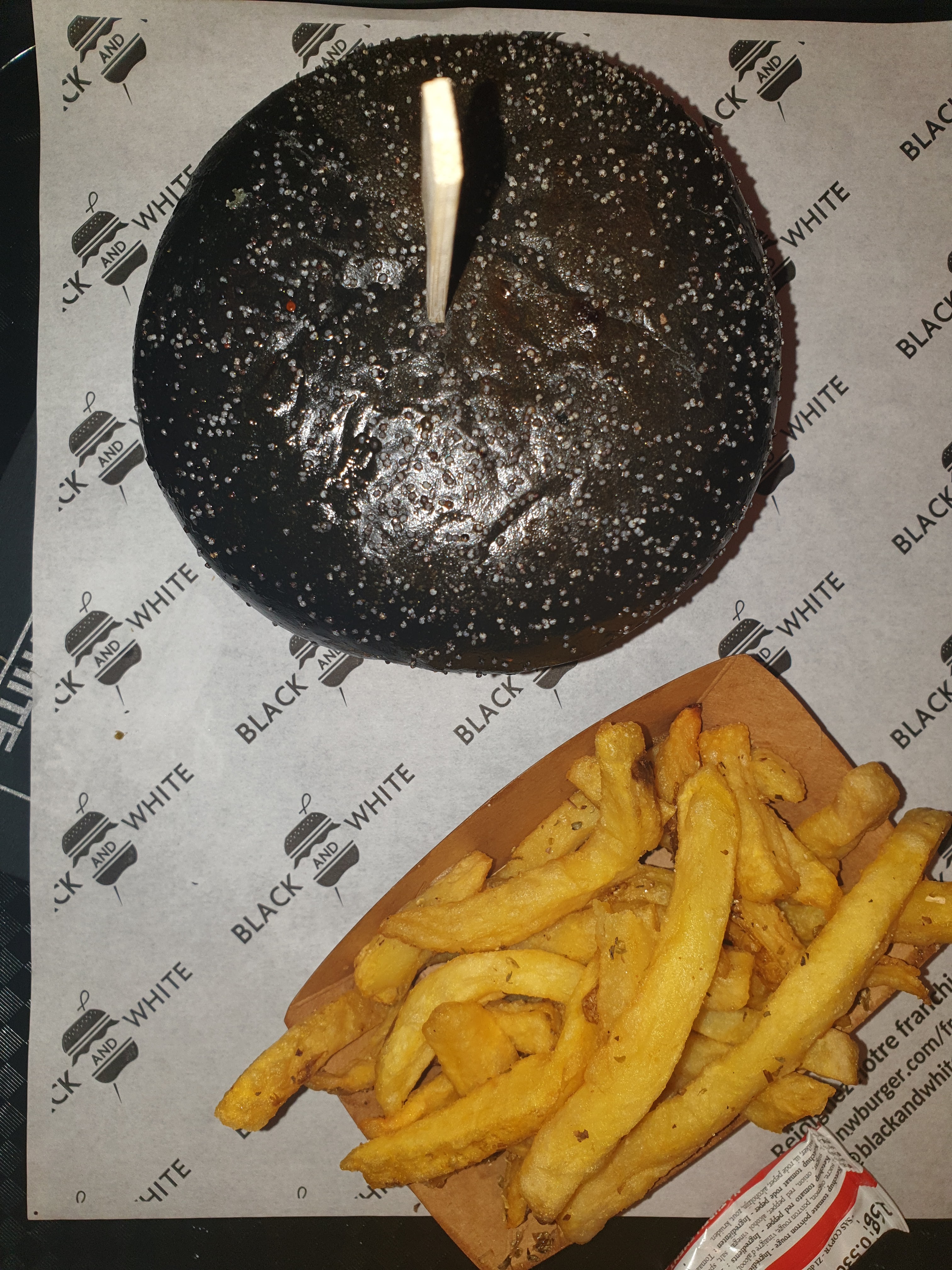 J’ai l’habitude de manger chez Black & White de châtelet, Je n’ai jamais été déçu la qualité est toujours au rendez-vous. Aujourd’hui je teste pour la première fois celui à côté du moulin rouge et là franchement ça n’a rien à voir. Le burger était trop sec que d’habitude et ce qui m’a choqué le plus c’est la qualité de la viande un arrière goût et une odeur trop bizarre. Même la texture était un peu bizarre. J’ai mangé quand même le burger (en enlevant la viande) car j’avais faim. Mais j’y reviendrai plus jamais. (Dans la 2eme photo c’est mon frère lui aussi il n’a pas mangé son burger)