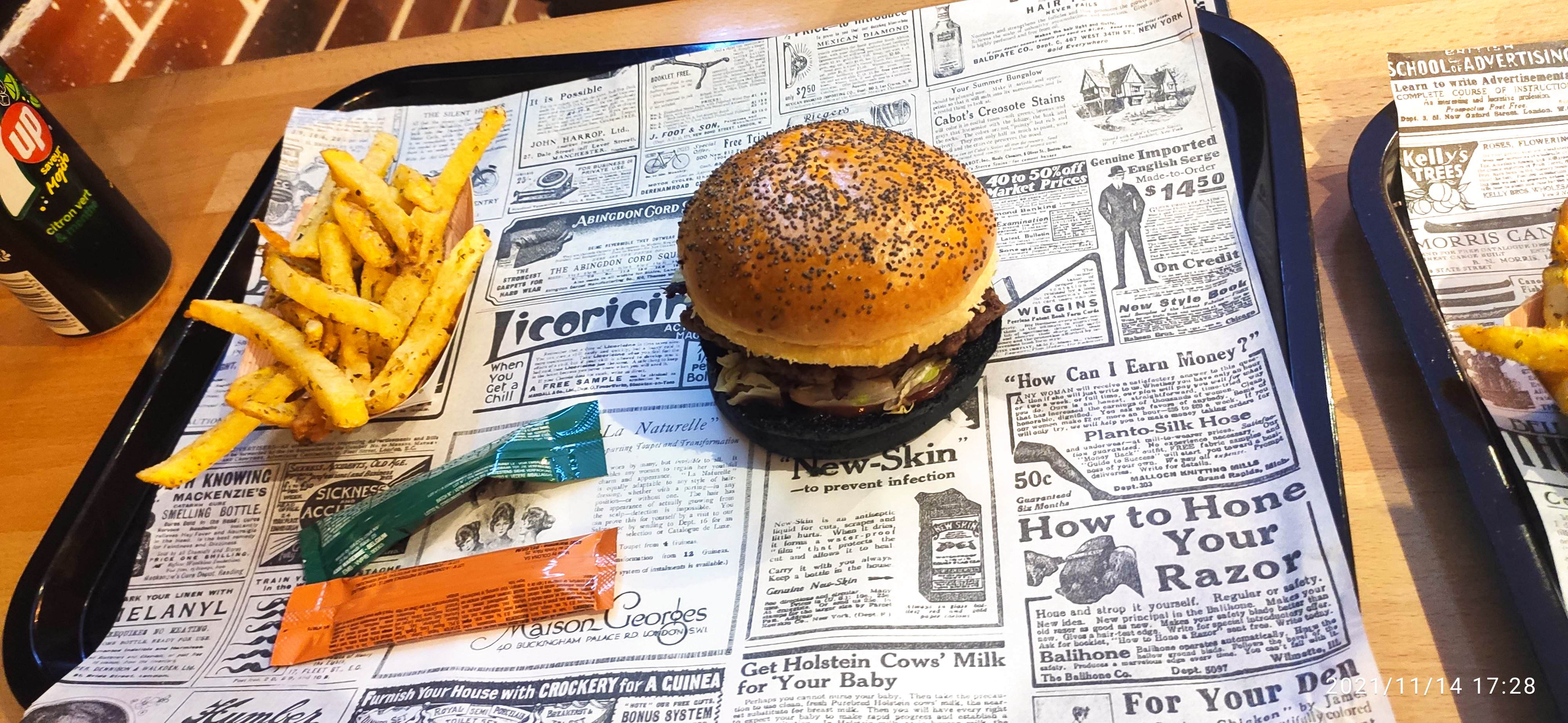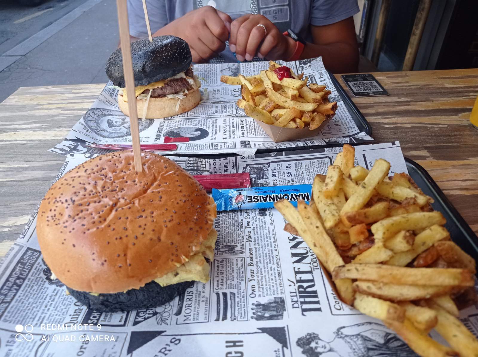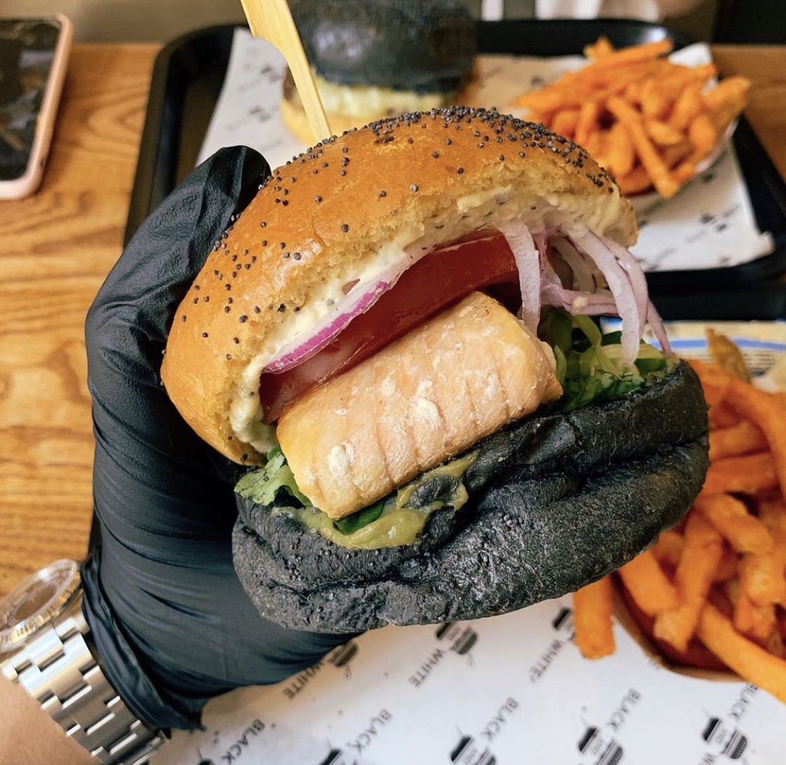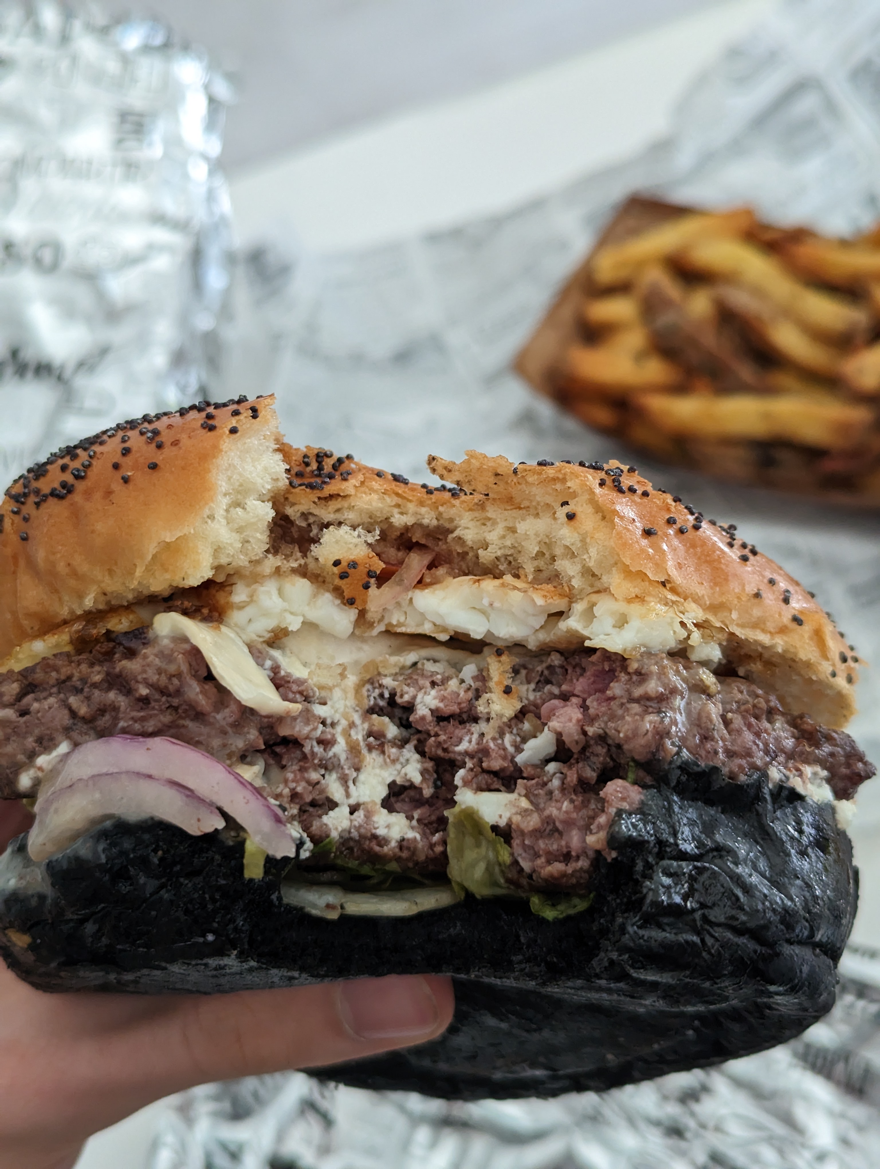 J’ai l’habitude de manger chez Black & White de châtelet, Je n’ai jamais été déçu la qualité est toujours au rendez-vous. Aujourd’hui je teste pour la première fois celui à côté du moulin rouge et là franchement ça n’a rien à voir. Le burger était trop sec que d’habitude et ce qui m’a choqué le plus c’est la qualité de la viande un arrière goût et une odeur trop bizarre. Même la texture était un peu bizarre. J’ai mangé quand même le burger (en enlevant la viande) car j’avais faim. Mais j’y reviendrai plus jamais. (Dans la 2eme photo c’est mon frère lui aussi il n’a pas mangé son burger)