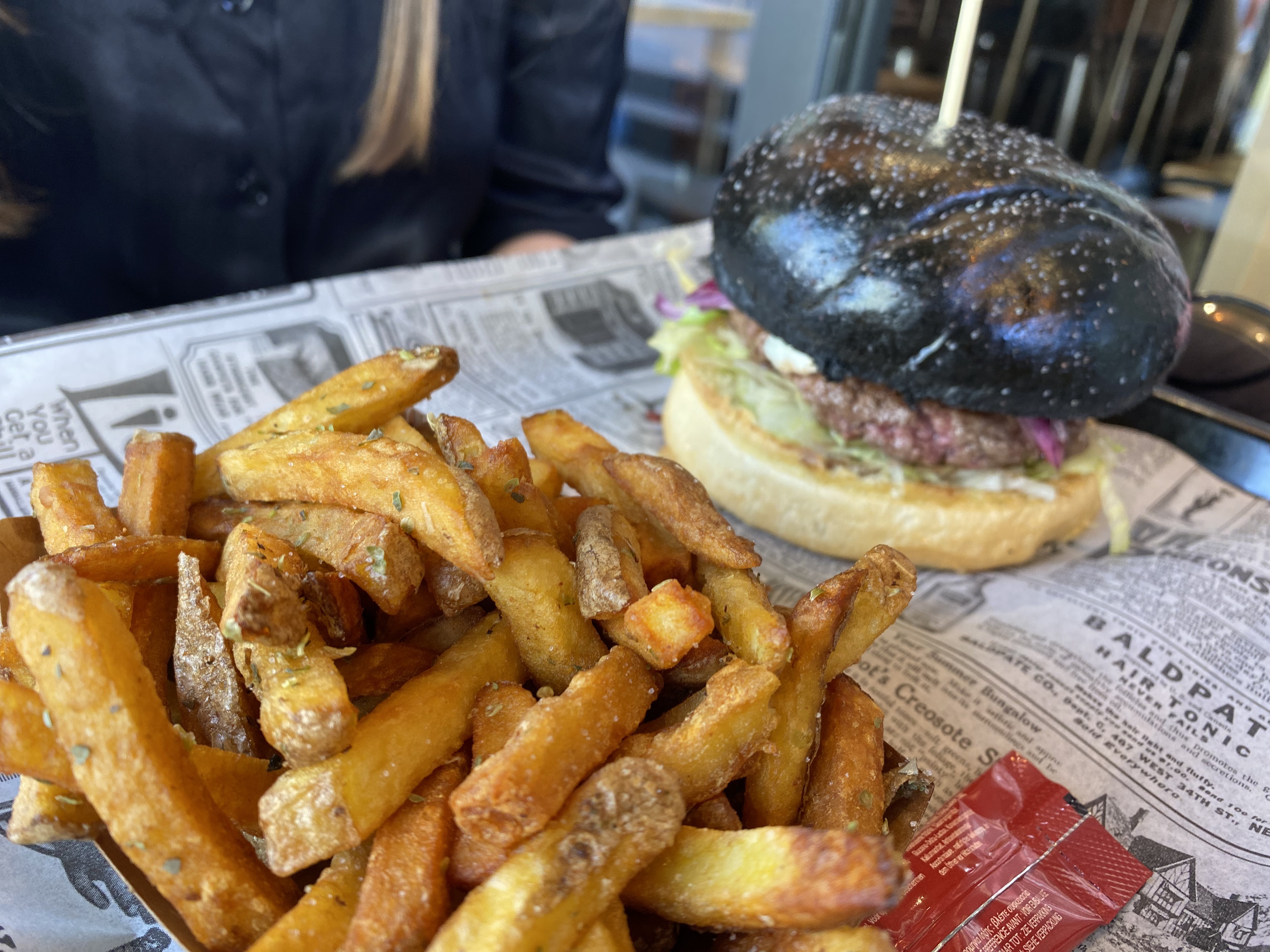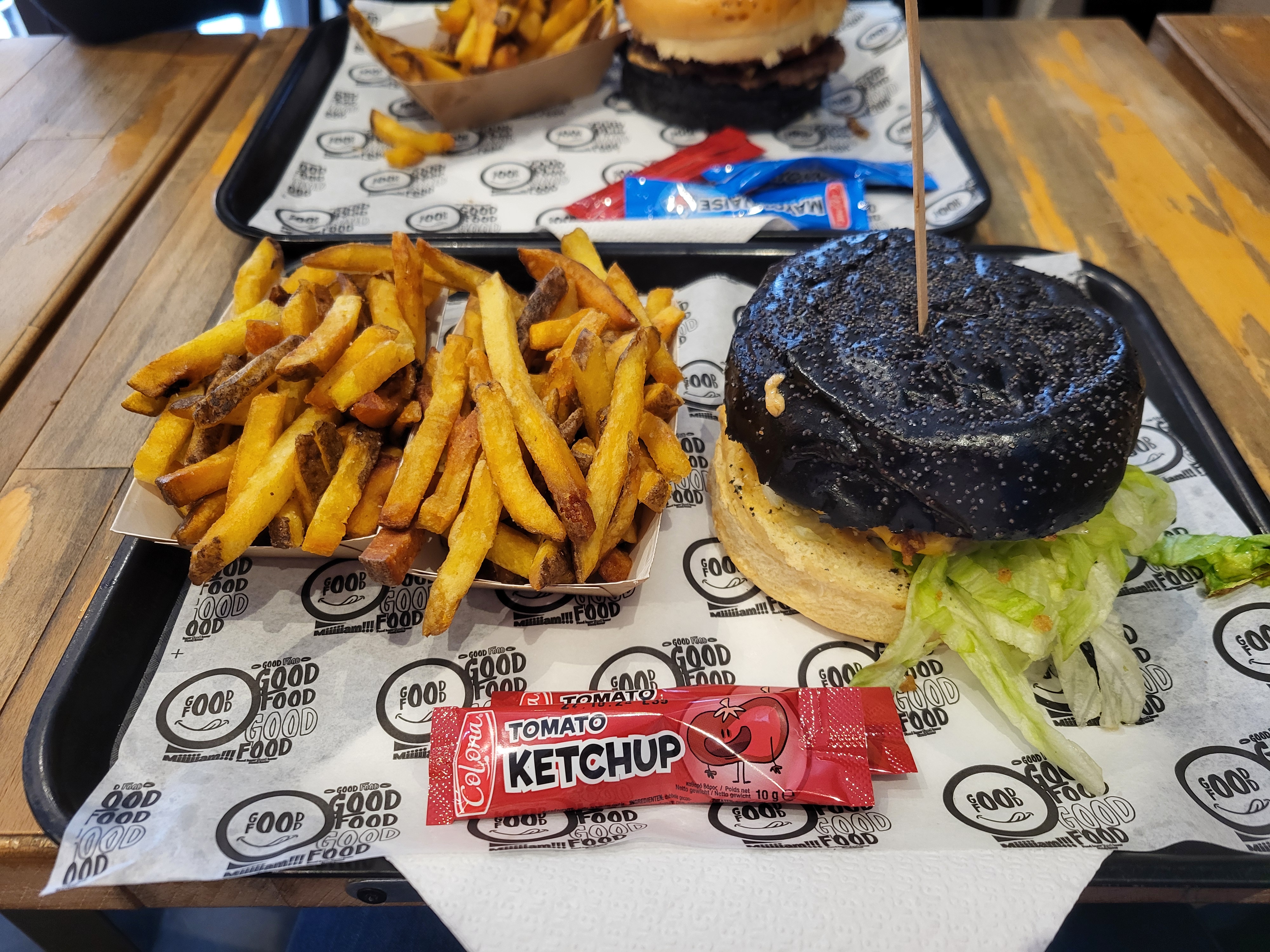 Premiere Impression plutôt bonne mais Temps d'attente relativement long, burger n'ayant pas un goût exceptionnel et les WC pourraient être un peu plus propre... Bref, je ne pense pas que j'y retournerai....PS: la couleur ne change pas le goût du burger