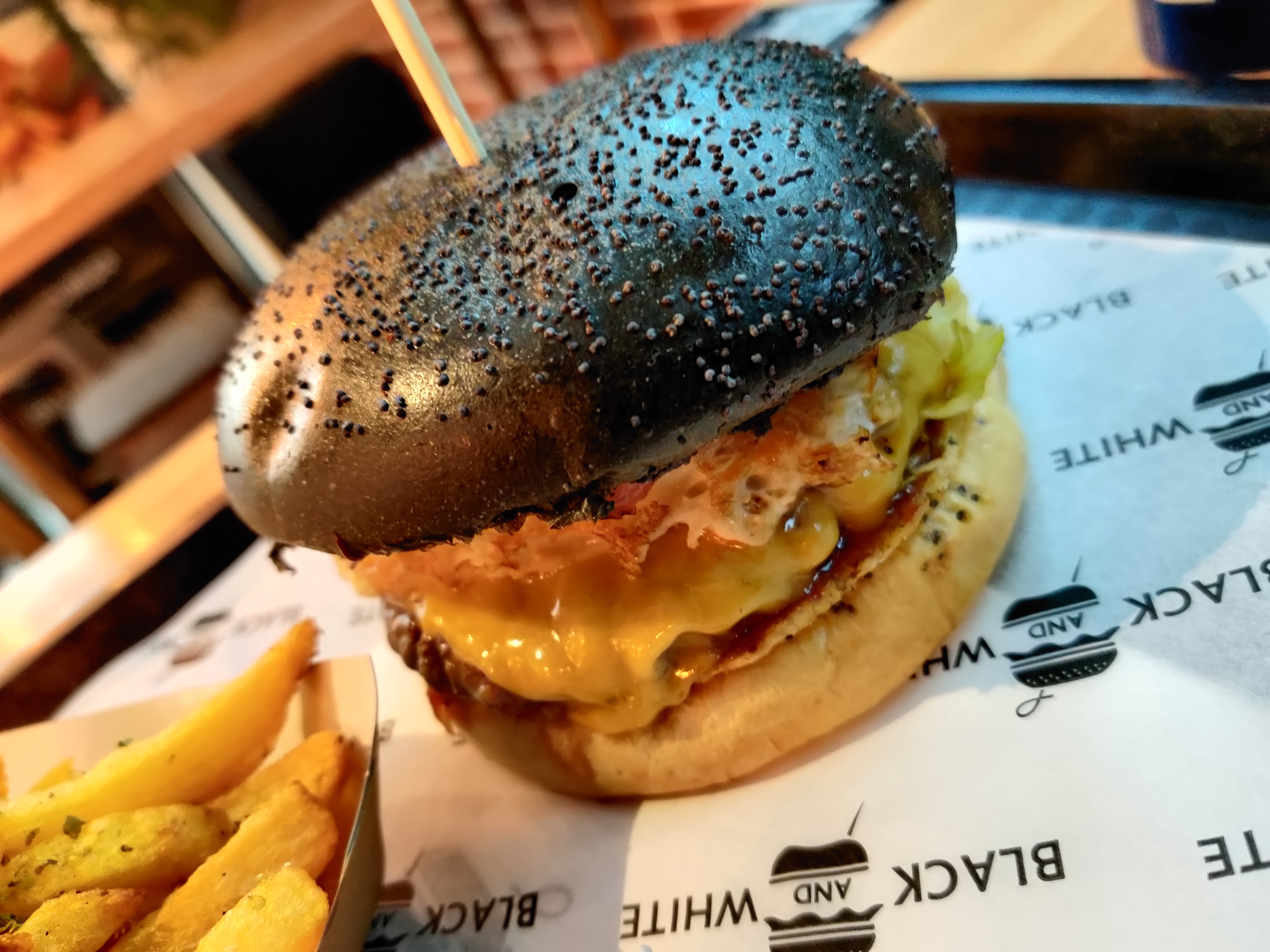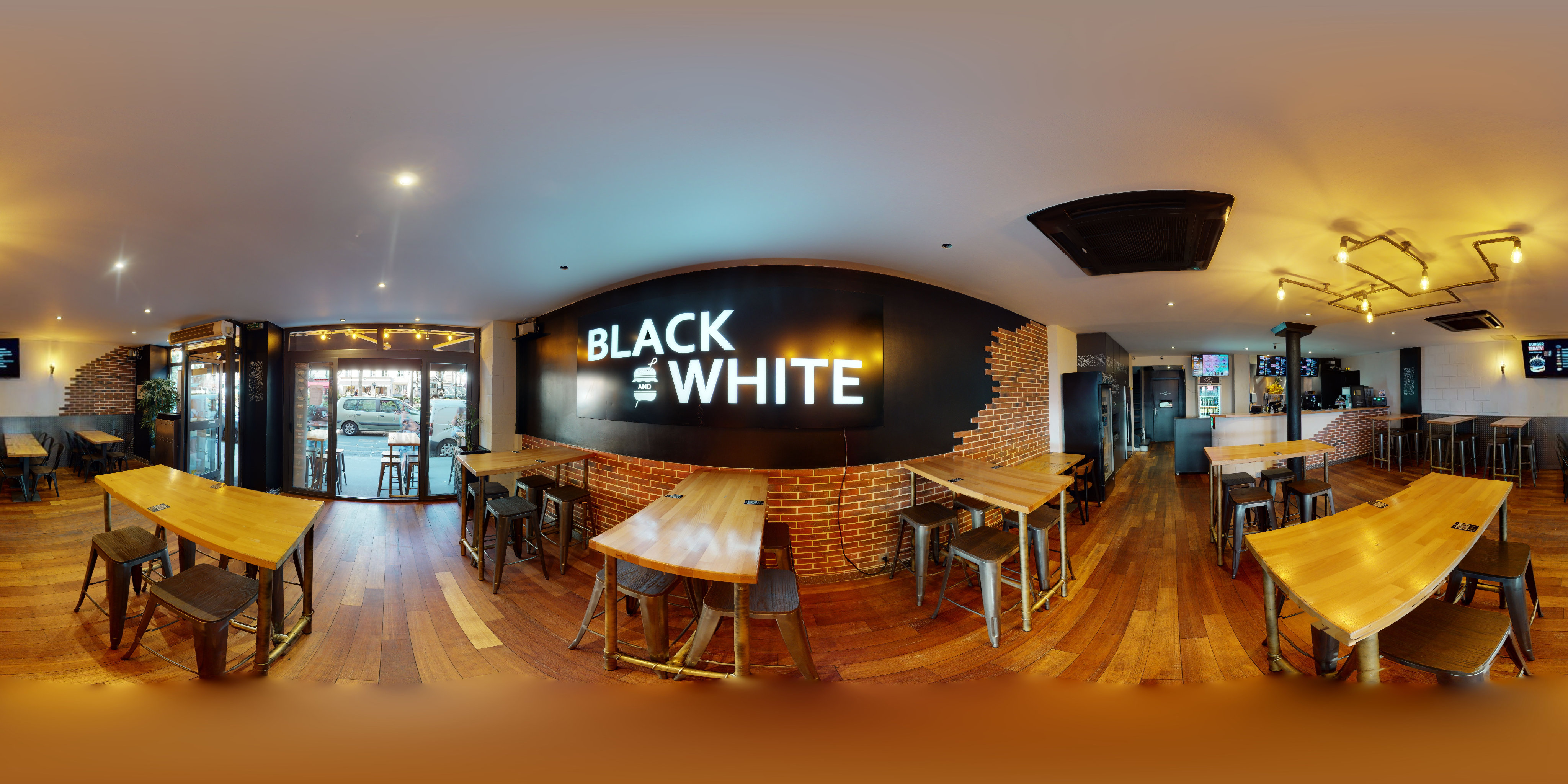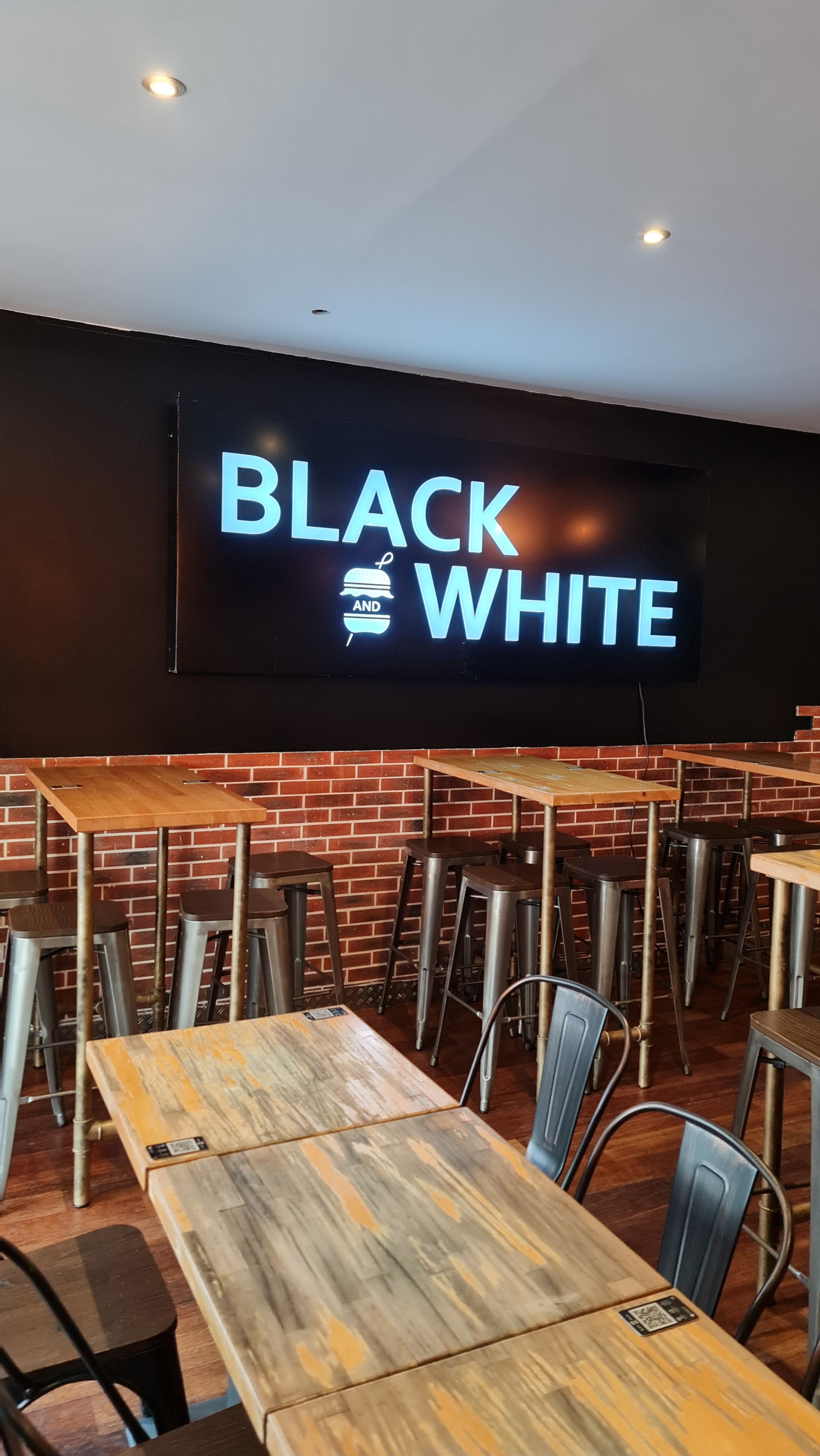 Trooop cher, et rien à voir avec les autres restos black and white ! Le burger n'a aucun goût. Le resto est sale. Et en plus un burger à 15euros. Attention à la note 4,3. Ce sont des faux avis. Personnel qui insulte les gens dans les commentaires. Va prendre ta retraite monsieur !