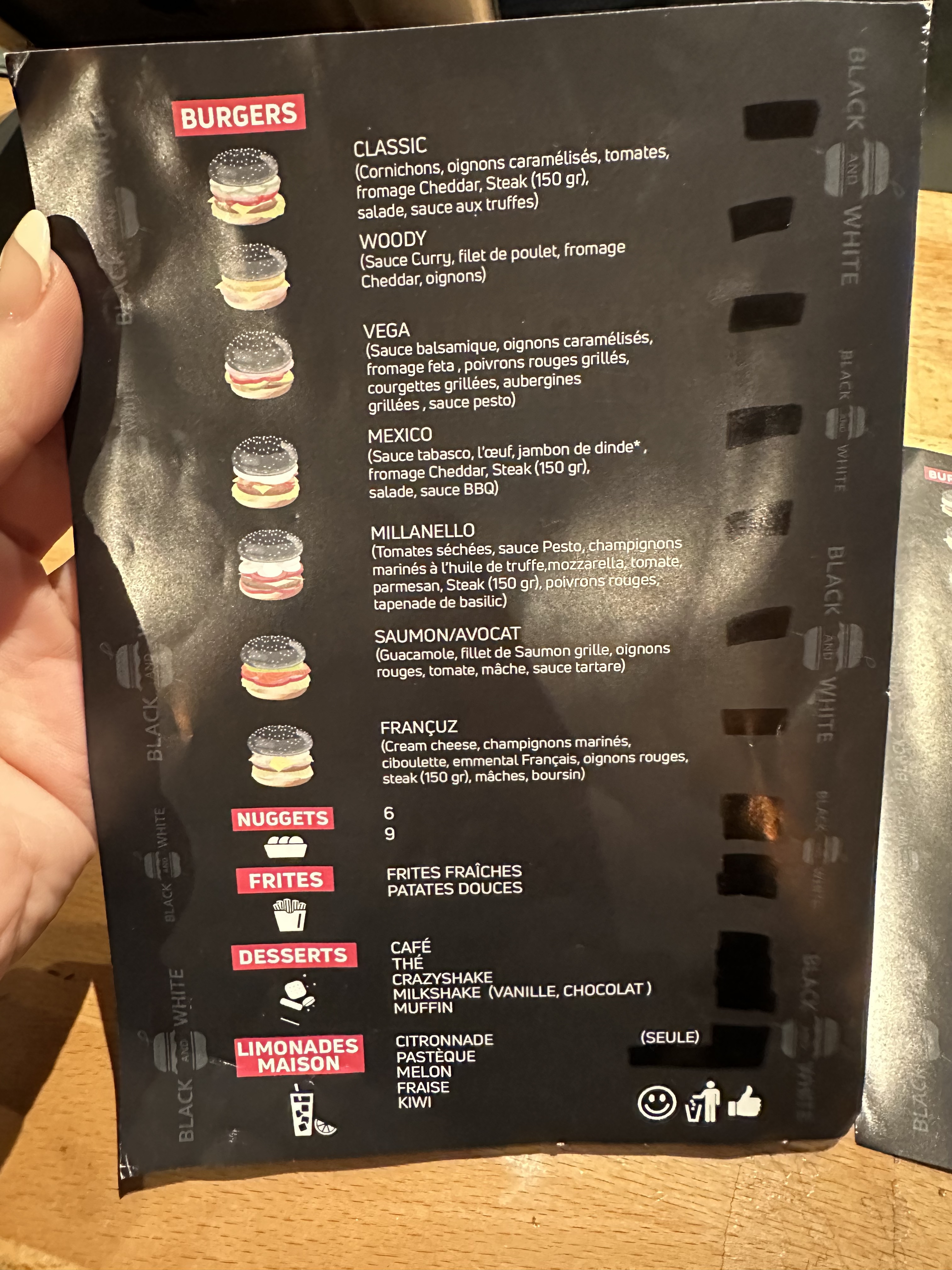 Bonjour, Merci pour votre visite chez Black And White Burger, nous sommes heureux de constater que vous avez apprécié notre accueil ! . À très bientôt !