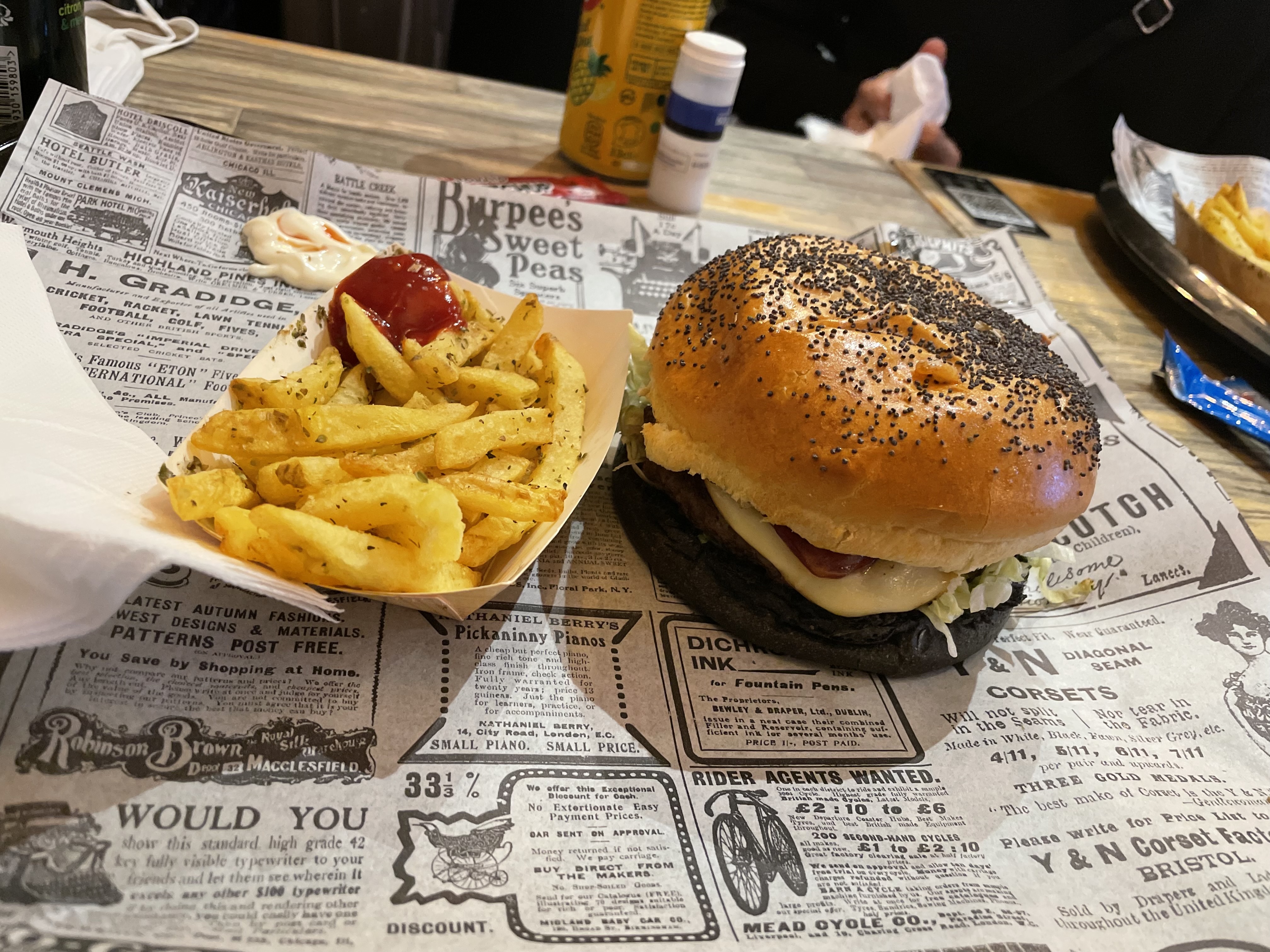 Premièrement des toilettes très sale… et même pas de chasse d’eau pour évacuer ce qu’il y a dedans, des prix exorbitants pour un FAST-FOOD oui oui un FAST FOOD et de qualité médiocre. Burger pas pratique du tout et goût moyen pour 22,50€… sans compter le service qui laisse clairement à désirer et on a tous entendu parler de ces gants en latex noir mais je ne les ai point vus. Un choix de sauce pour frites très restreint, ketchup ou mayo (inouvrable d’ailleurs). Ps : Les escaliers pour accéder au toilettes… Sur ceux bon appétit les gourmands !