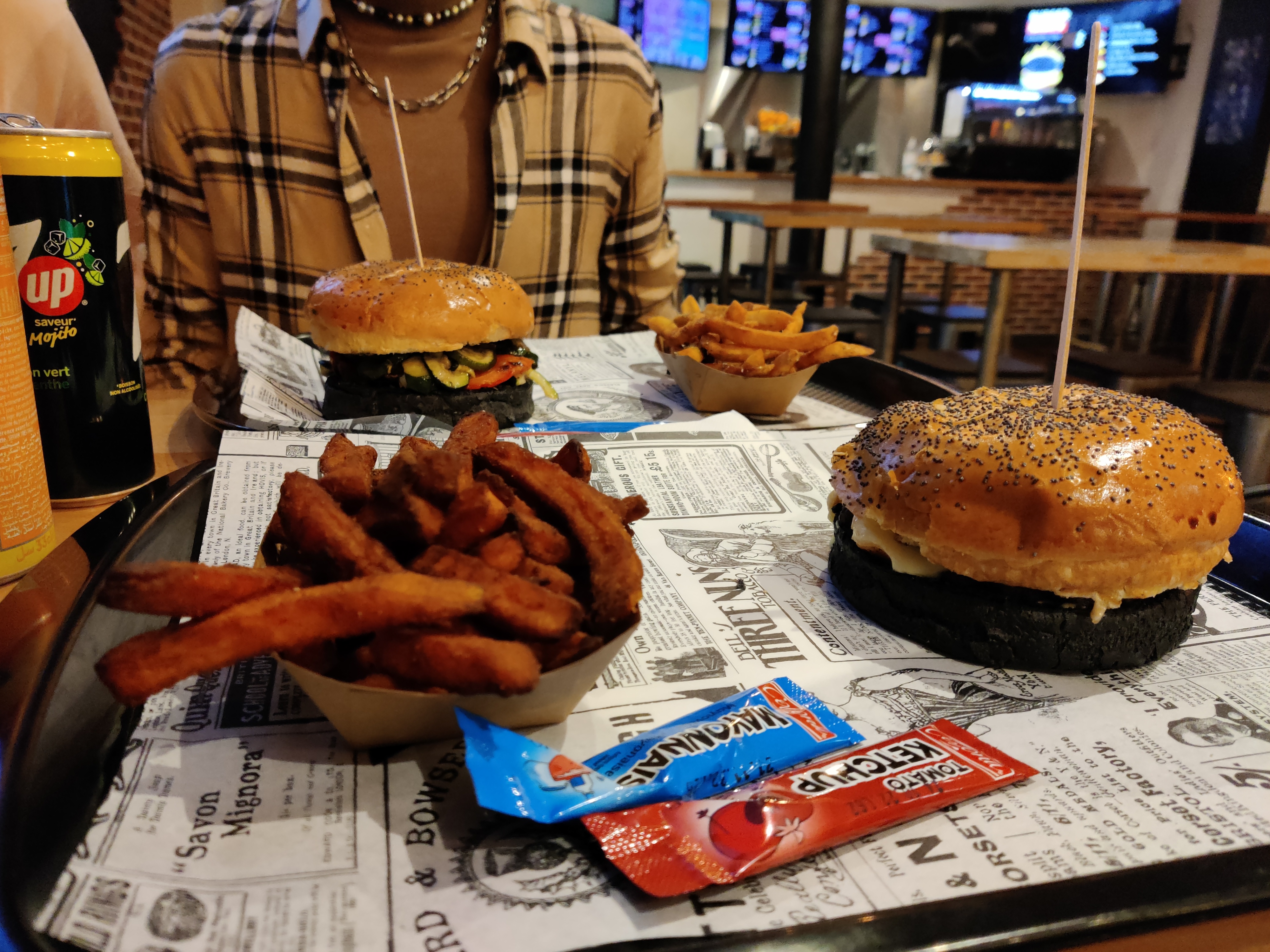 Je ne comprends absolument pas l’engouement pour cette enseigne, première et dernière fois pour nous. Nous n’avons jamais mangé des hamburgers aussi fades, sans saveurs, sauces totalement inexistantes, plus de pain et de salade que de viande, le pain noir a un goût et une odeur très désagréable. Nous sommes contre le gaspillage, mais malheureusement nous n’avons pas eu le choix. Je ne recommande pas du tout.