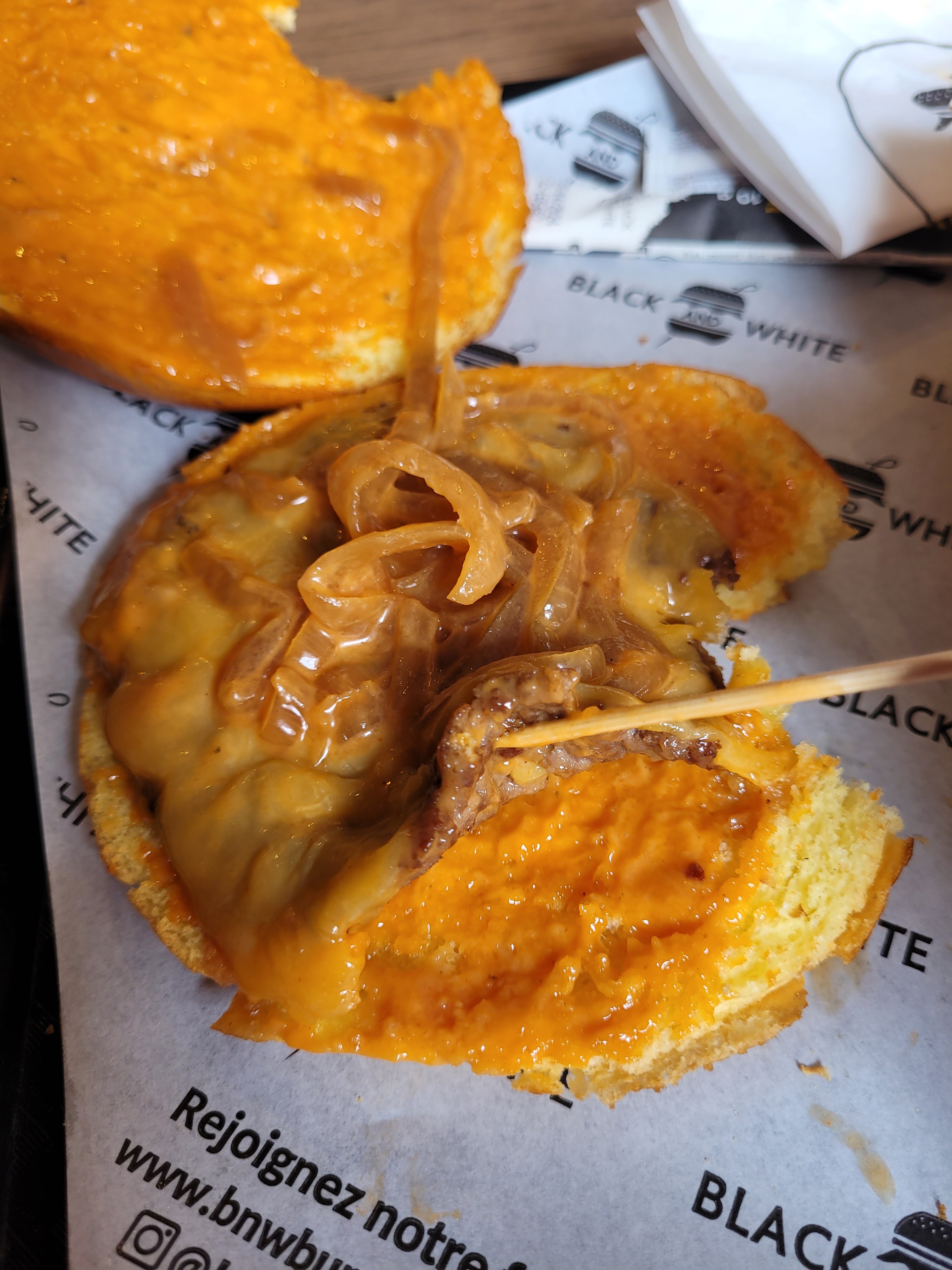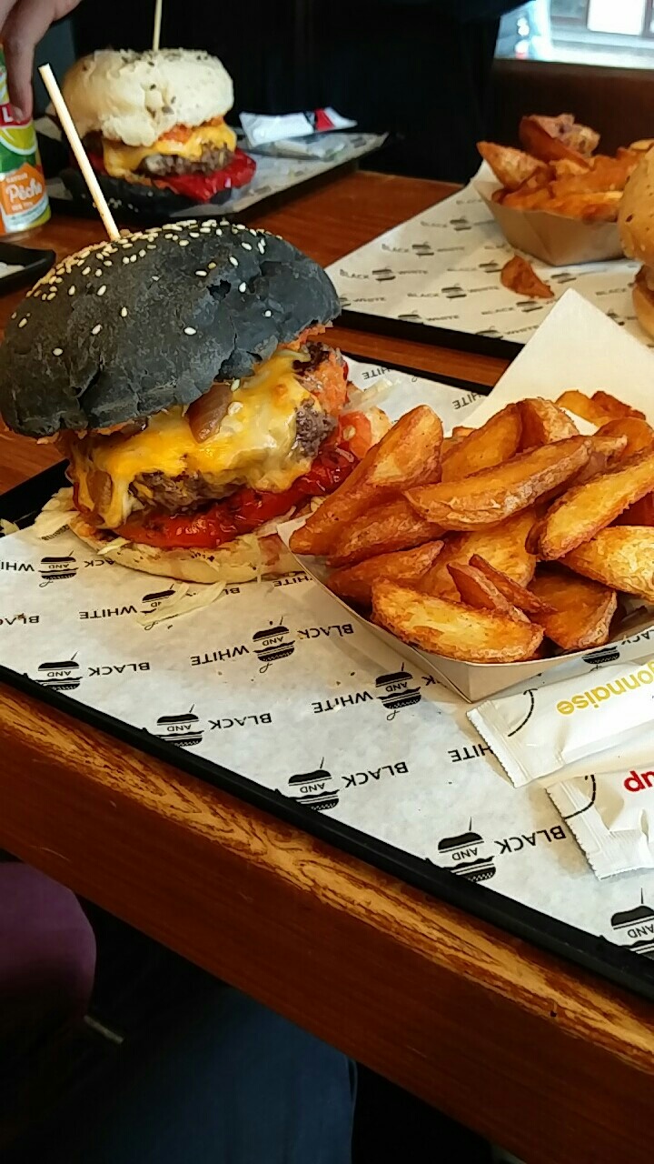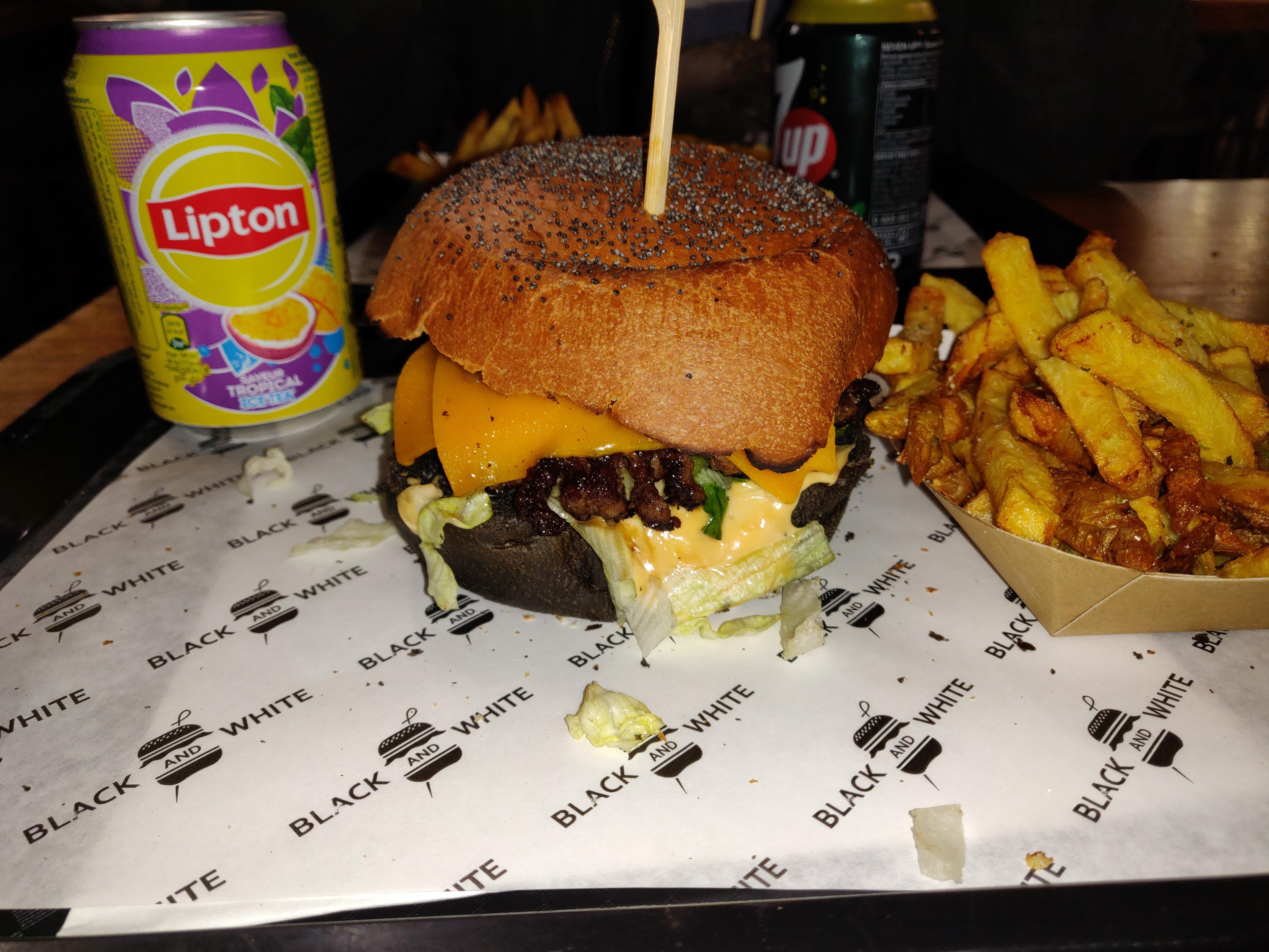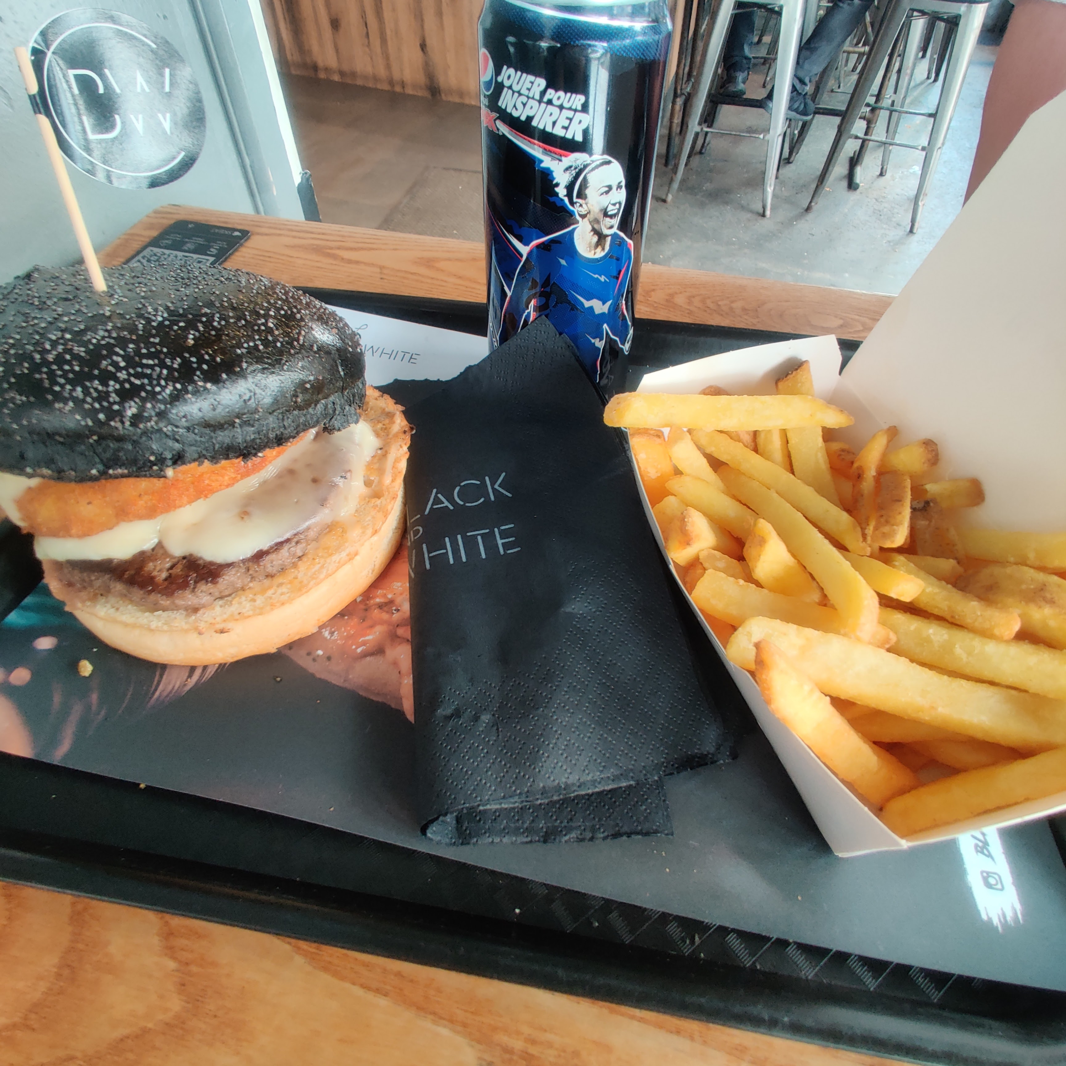 Bonne expérience chez Black and White Burger J’ai pris le Mountain Burger, et il est vraiment immense ! Très bon, avec une viande de qualité qui a un excellent goût. Par contre, les frites au cheddar sont assez classiques, rien d’exceptionnel. Petit bémol pour le choix des boissons que j’ai trouvé assez restreint c’est dommage. Mais dans l’ensemble une bonne adresse pour un burger généreux.