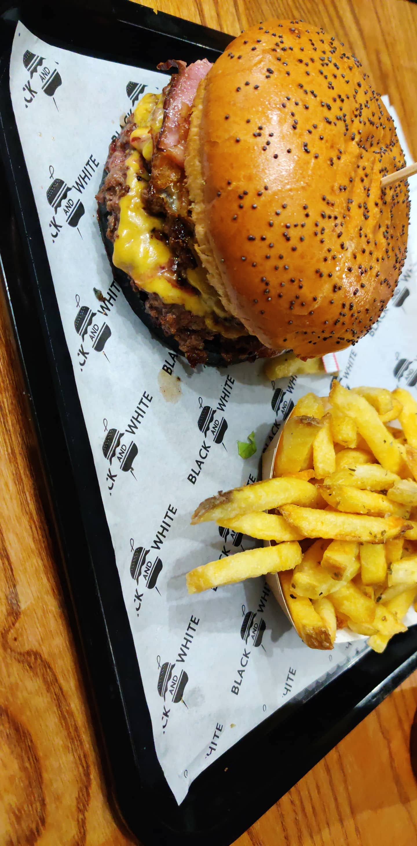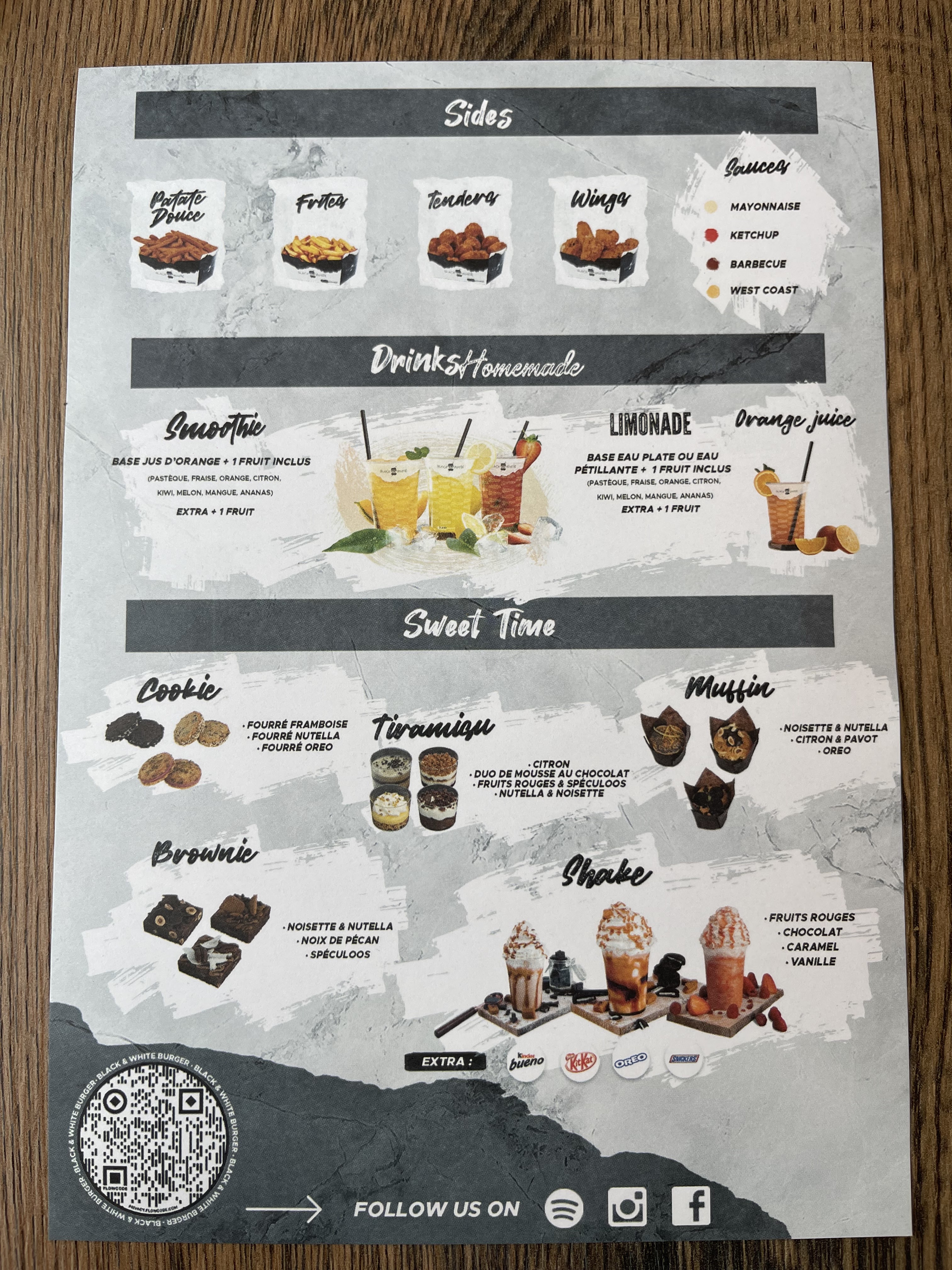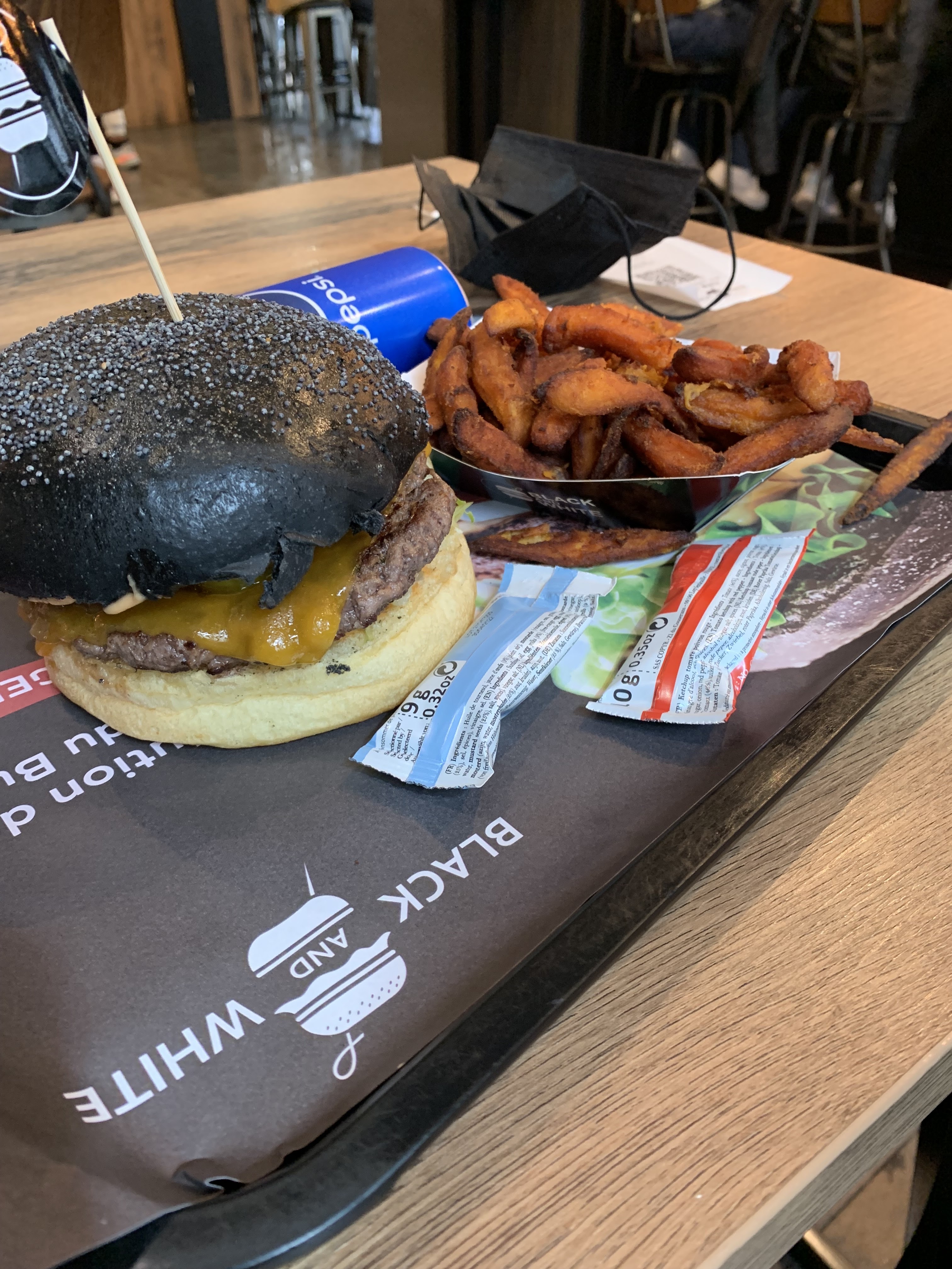 Bonne expérience chez Black and White Burger J’ai pris le Mountain Burger, et il est vraiment immense ! Très bon, avec une viande de qualité qui a un excellent goût. Par contre, les frites au cheddar sont assez classiques, rien d’exceptionnel. Petit bémol pour le choix des boissons que j’ai trouvé assez restreint c’est dommage. Mais dans l’ensemble une bonne adresse pour un burger généreux.