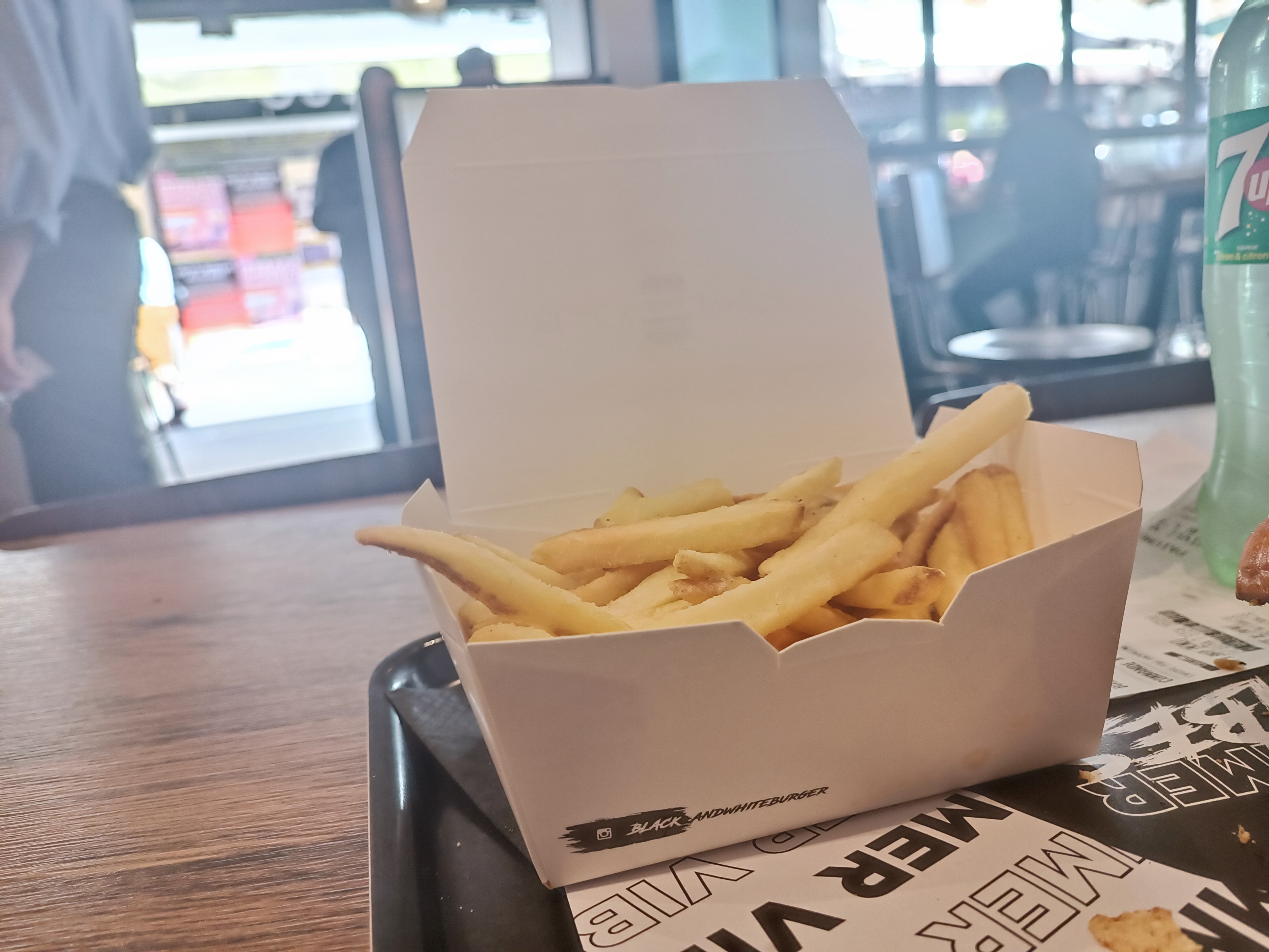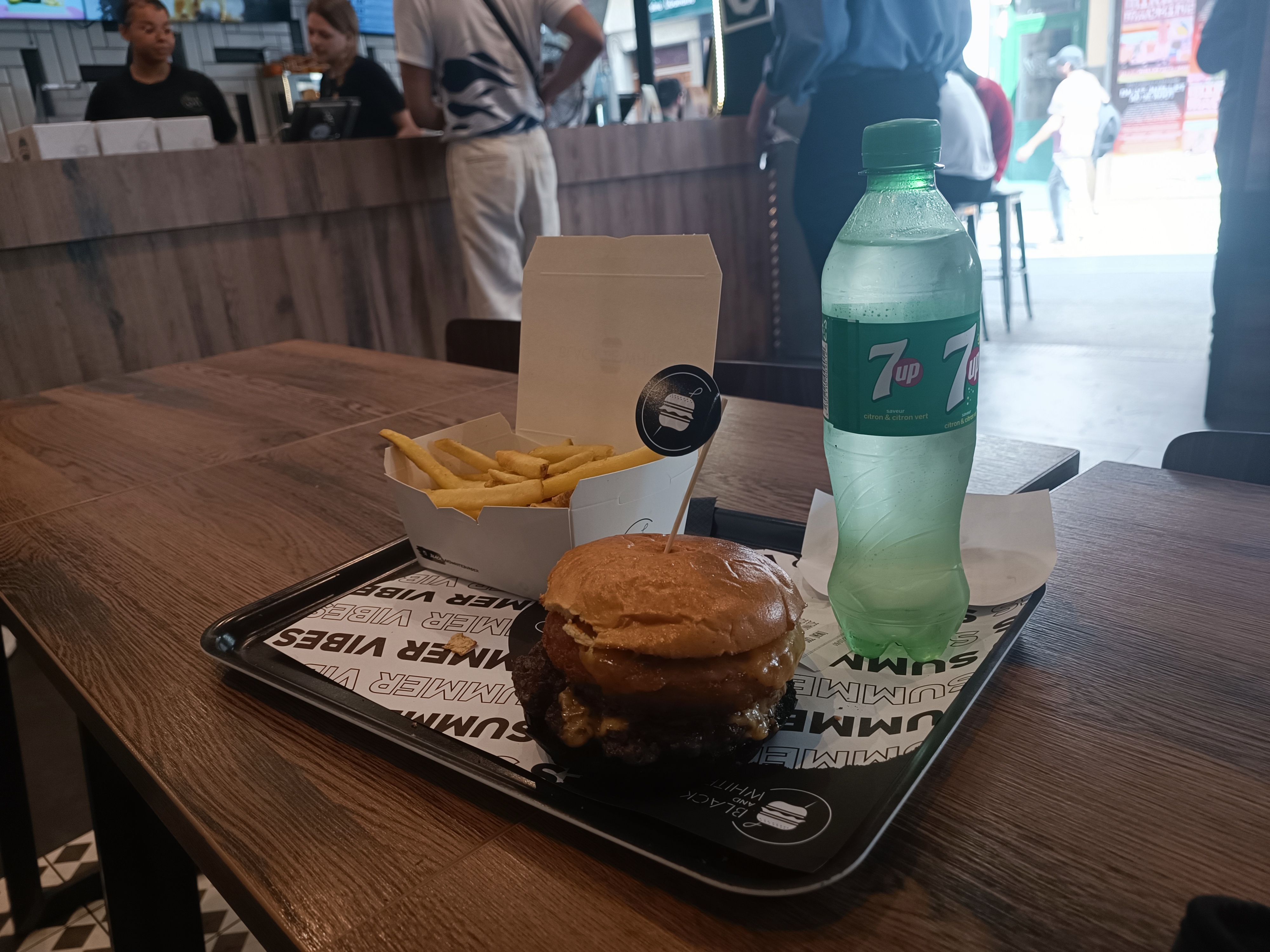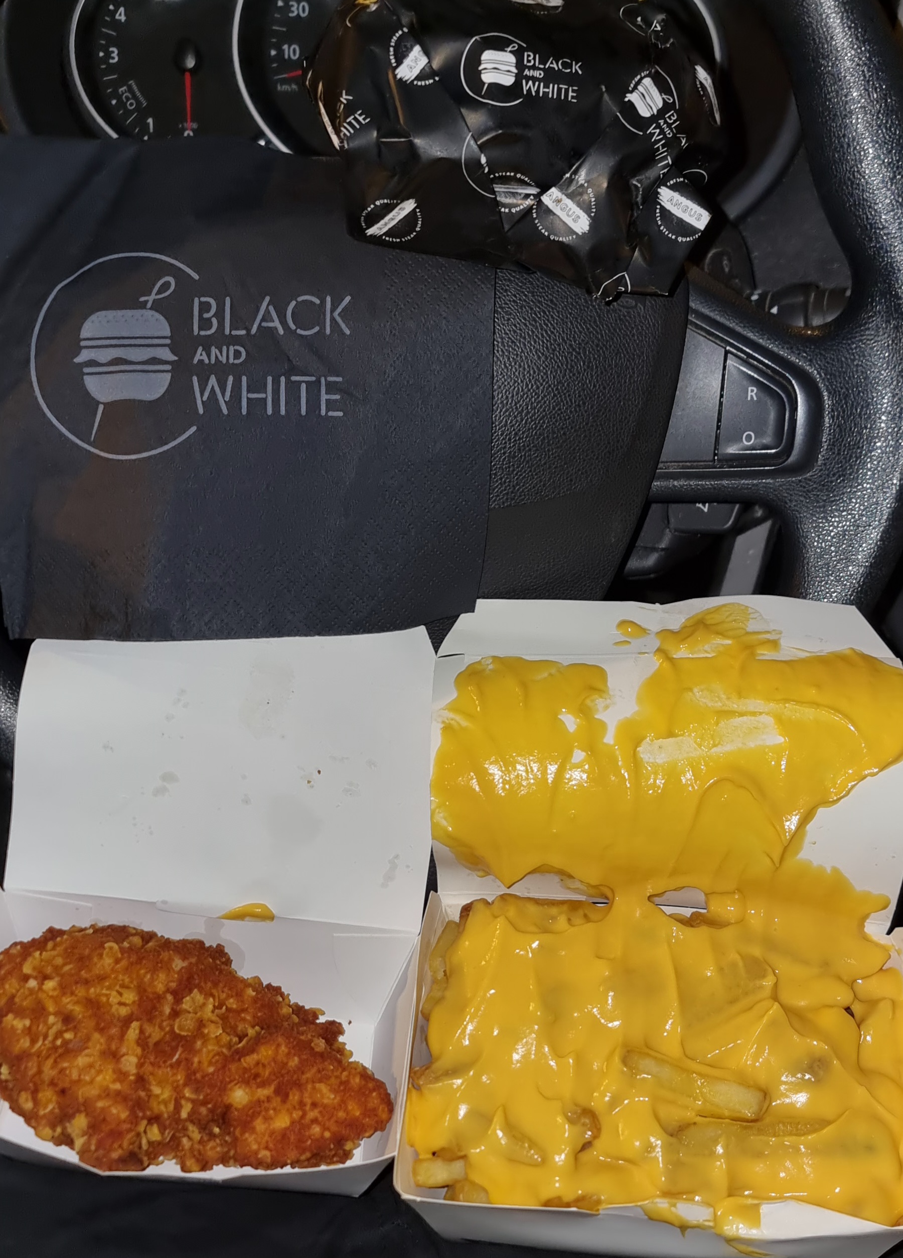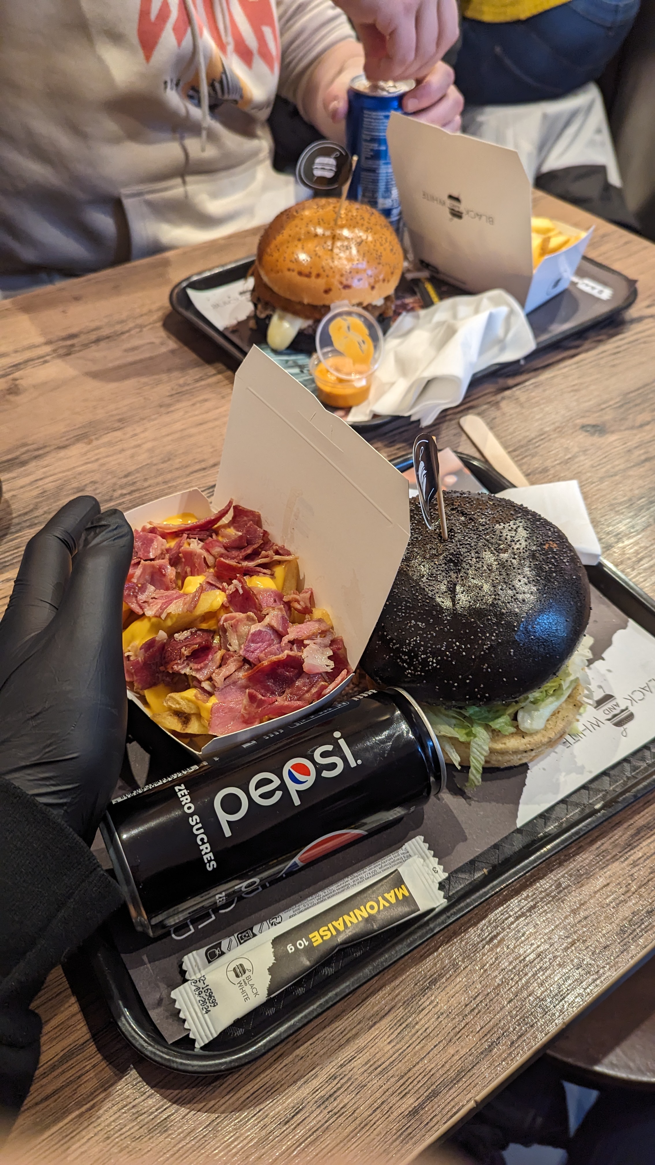 Bonne expérience chez Black and White Burger J’ai pris le Mountain Burger, et il est vraiment immense ! Très bon, avec une viande de qualité qui a un excellent goût. Par contre, les frites au cheddar sont assez classiques, rien d’exceptionnel. Petit bémol pour le choix des boissons que j’ai trouvé assez restreint c’est dommage. Mais dans l’ensemble une bonne adresse pour un burger généreux.