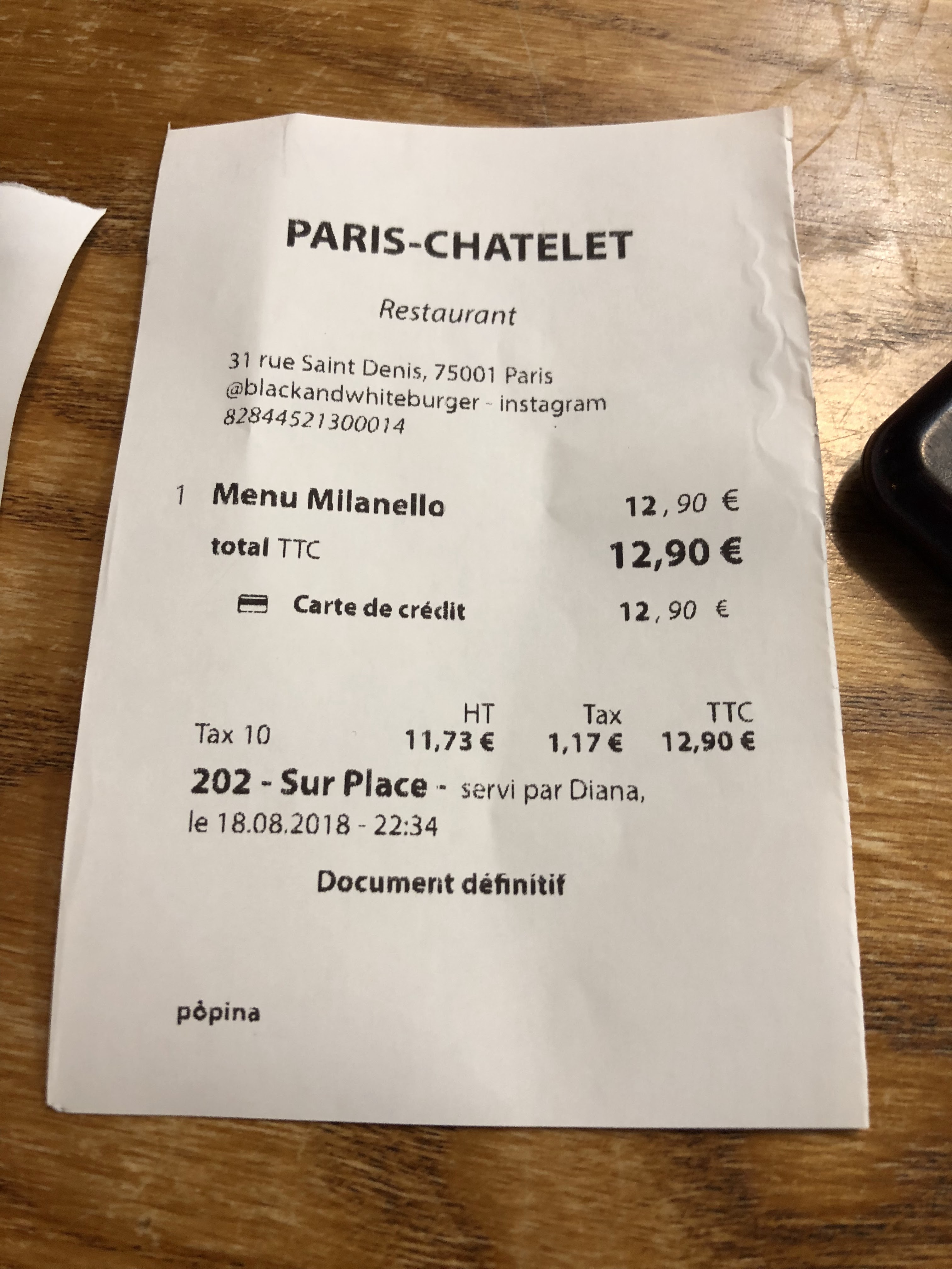 J'ai été agréablement surpris par mon expérience au Black & White Burger à Châtelet. Le service était incroyablement rapide et les portions étaient généreuses pour le prix. La qualité des produits était également au rendez-vous. Le personnel de la caisse et du service était très aimable et professionnel, ce qui a ajouté à notre satisfaction. Nous avions entendu parler de cet endroit via les réseaux sociaux et nous n'avons pas été déçus. L'endroit était propre, bien que les toilettes ne soient pas très pratiques, mais ils ont fait de leur mieux compte tenu de l'espace limité. Dans l'ensemble, je recommande vivement cet endroit pour une expérience culinaire satisfaisante à Paris.