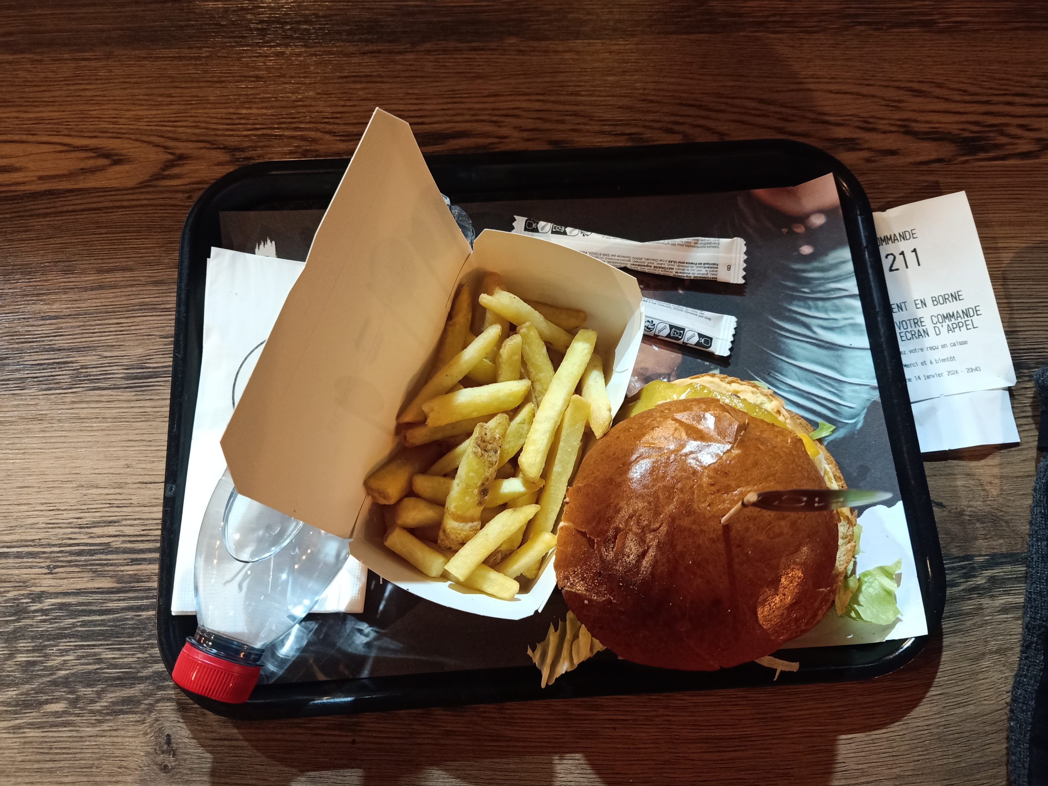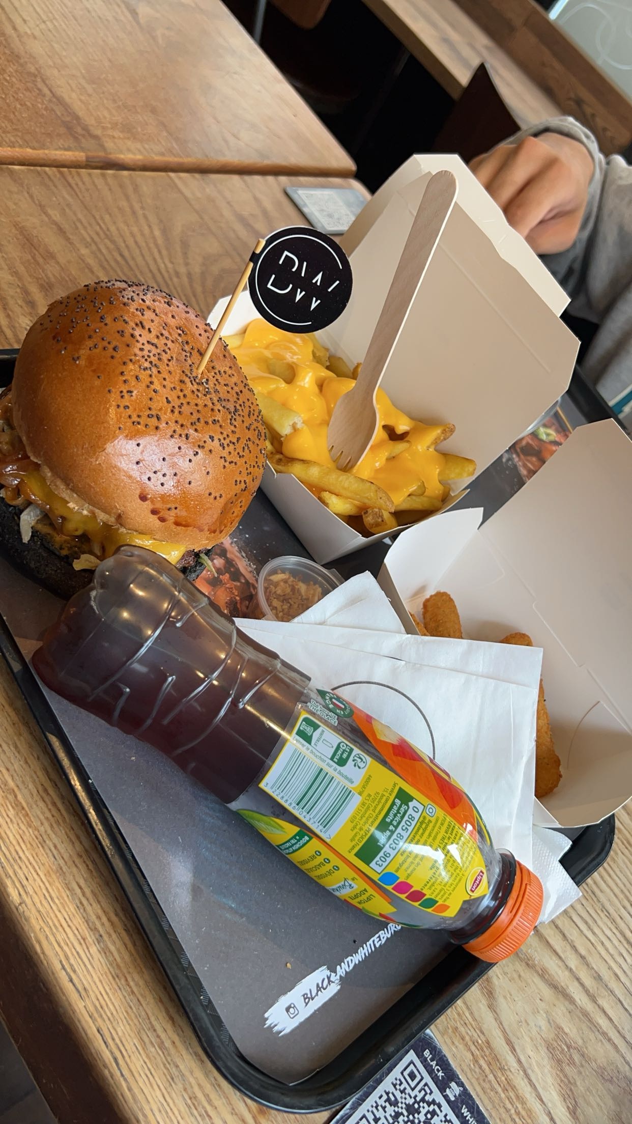 Bon burger :) frite a la sauce cheddar un peu écœurant mais c’est ok quand même