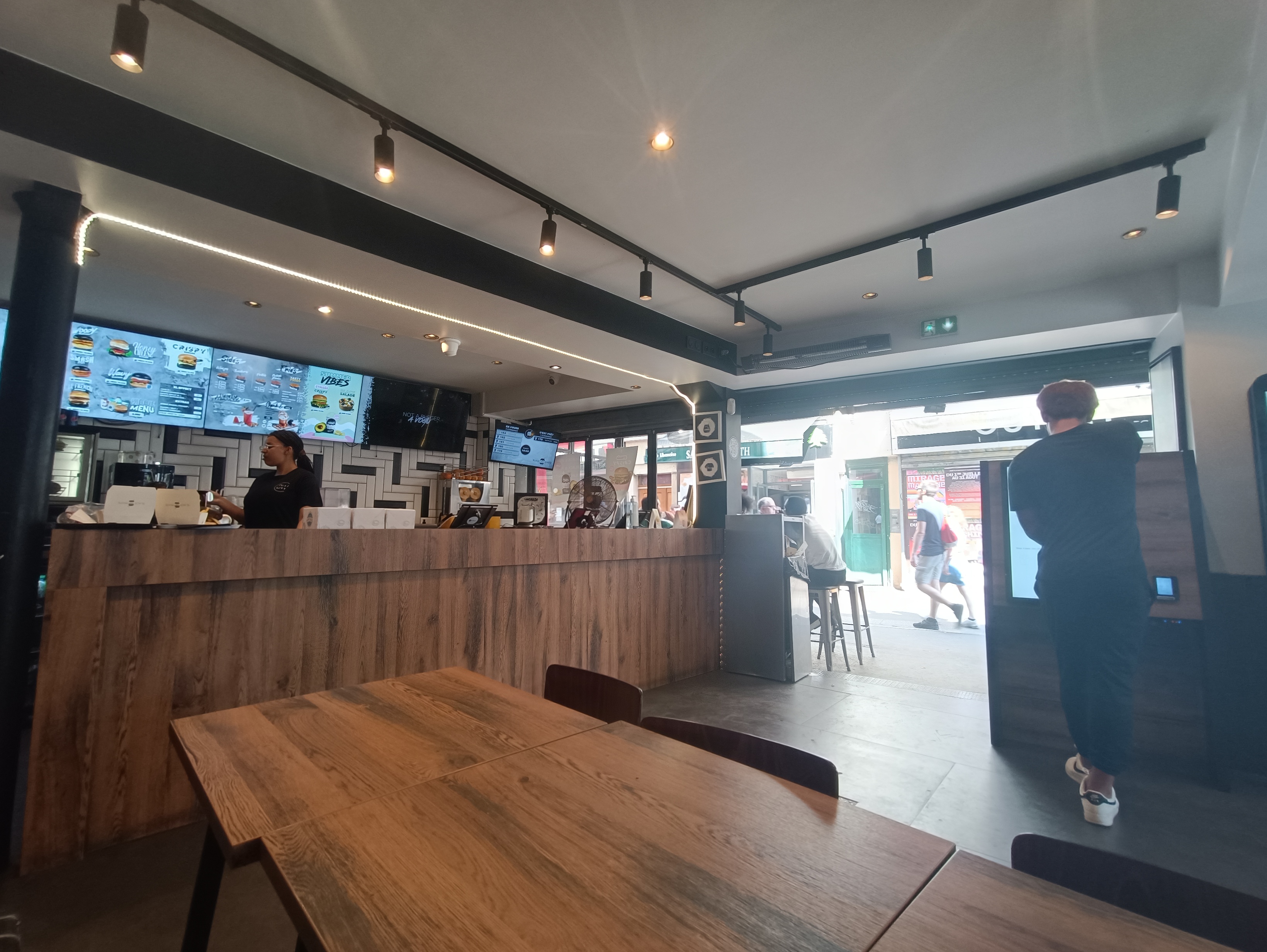 Je connaissais par Ibra et maintenant les flics en raffolent, je me suis laissée tenter. Commande aux bornes, j’ai trouvé les burgers classiques manquant un peu d’originalité. J’ai pris le menu normal, mountain, supplément jalepenos (13,50 euros) . Le burger est de taille moyenne, je m’attendais à plus gros, peut être en menu XL. (donc le prix diffère) Le burger est bon, le pain, les steacks, la sauce, le fromage raclette...tout se marient bien. C’est bon. Les frites, bonne cuisson, on sent bien le goût de la pomme de terre. J’avais un peu faim par là suite. La commande a été vite. Les serveurs quand on vient prendre la commande en caisse, manquent un peu d’empathie. Rapport qualité/prix...un peu cher. A refaire pour un burger plus gros, à l’occasion, tout dépendra de son prix, mais c’était bon. Note juste 2,5