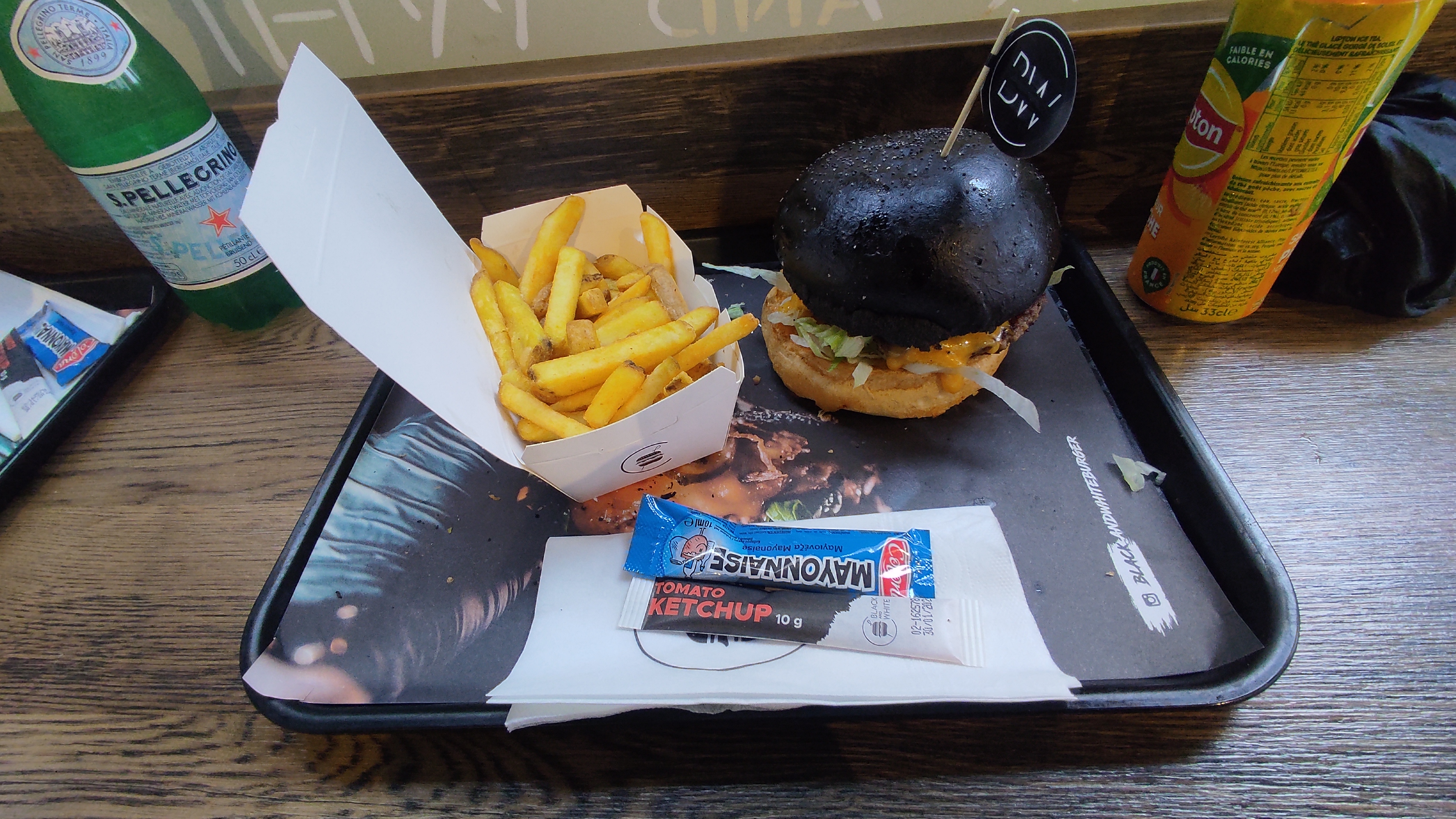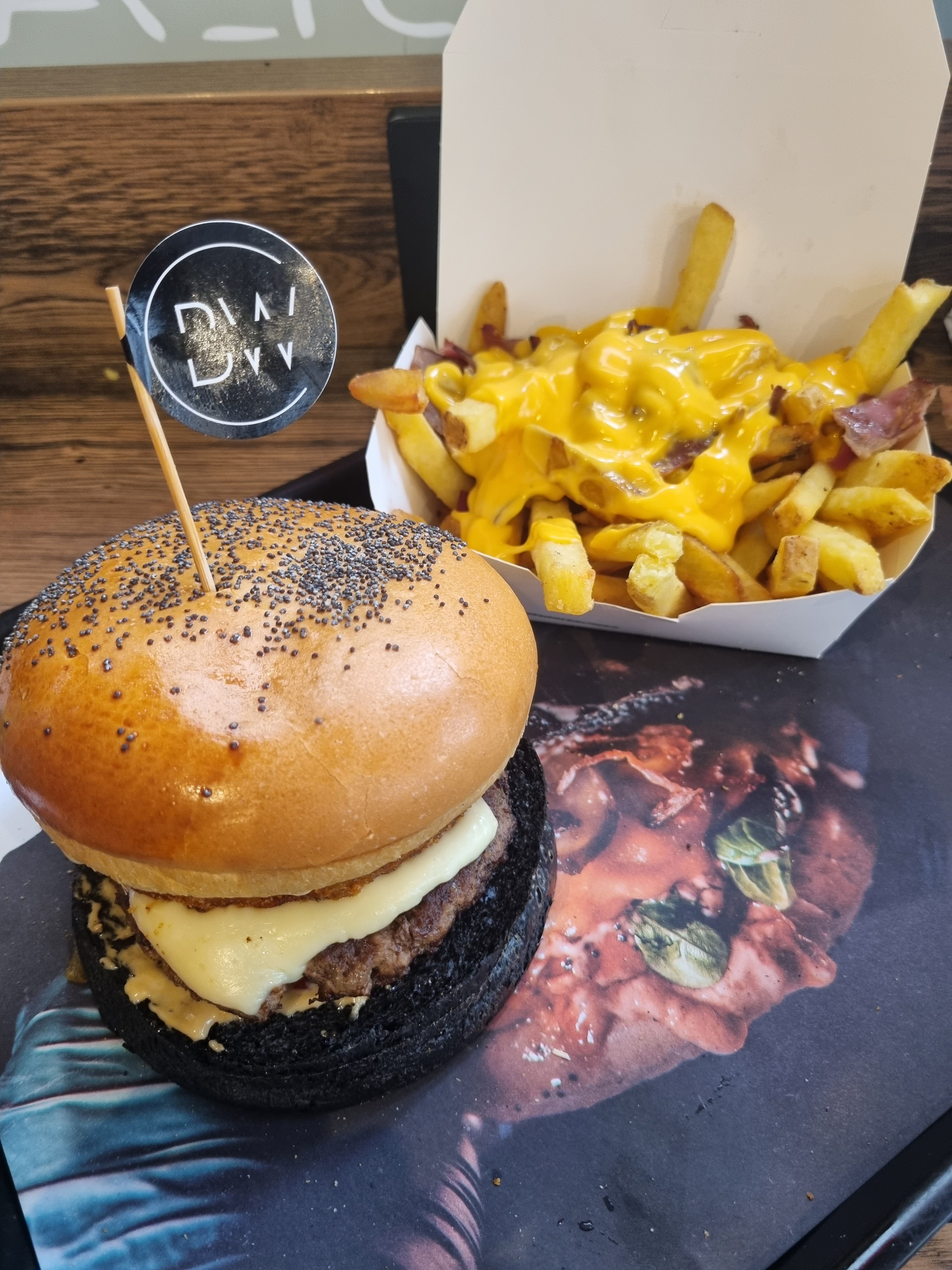 J'ai enfin mangé au B&W. Des burgers à base de charbon végétal.. pour changer du buger classique, la viande est cuite différemment ce qui donne un goût de feu de bois. J'ai pris le Menu Burger Classic. Ce que j'ai aimé sont la viande et la sauce épicée juste comme il faut . Plus des patates douces. Très bonnes . Les burgers sont généreux .. Rapport qualité prix convenable. Le seevie est rapide. Même si le restaurant est petit. Les clients circulent plutôt bien du coup les places sont libérées. A expérimenter !!!