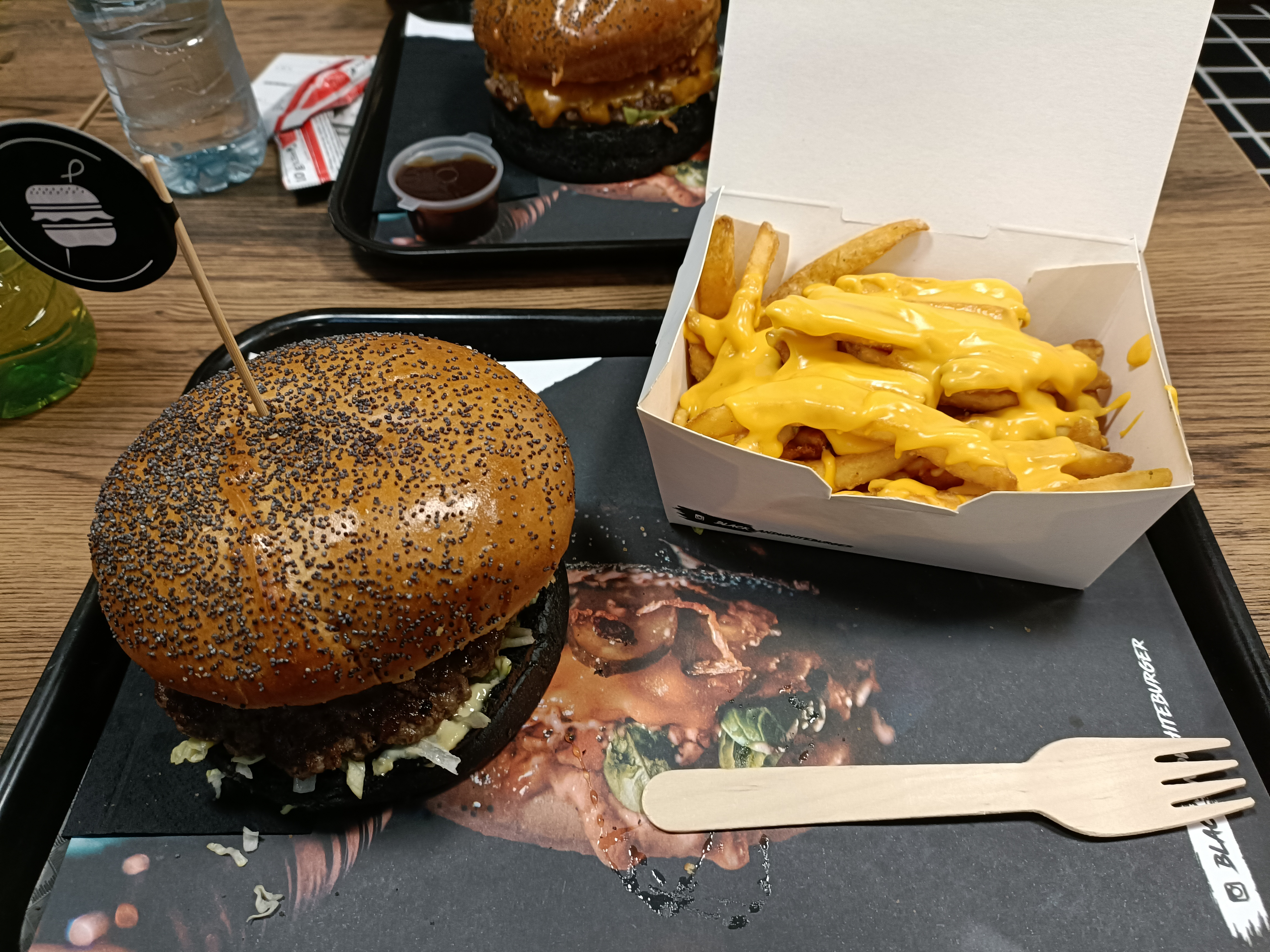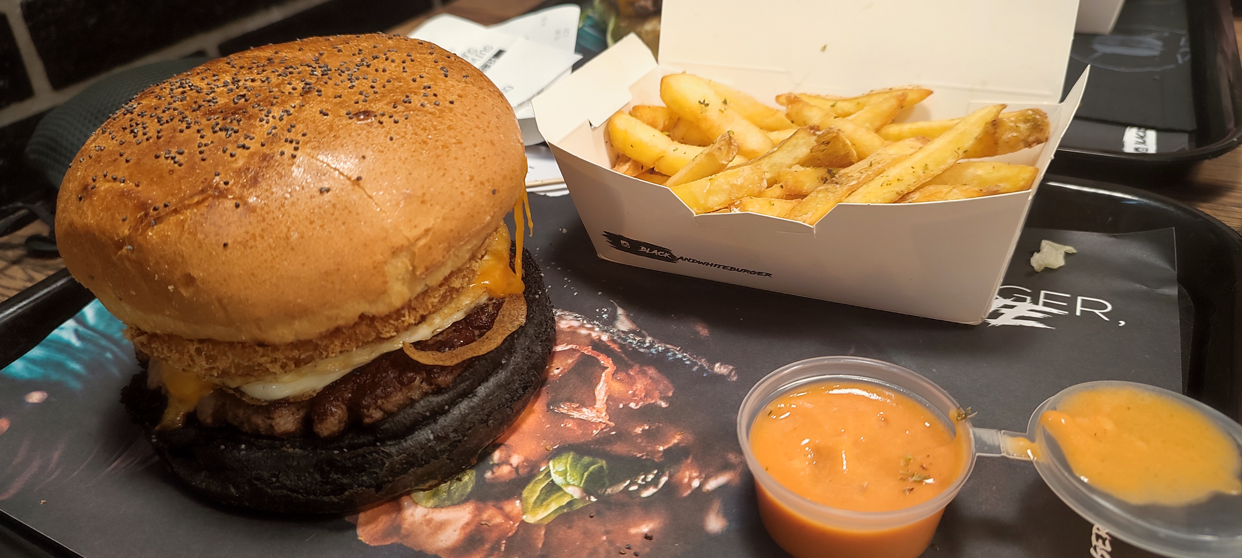 Première fois dans le restaurant black and white, franchement pas déçu de la qualité du burger. Le prix est très correct, et la serveuse très agréable et souriante 😉