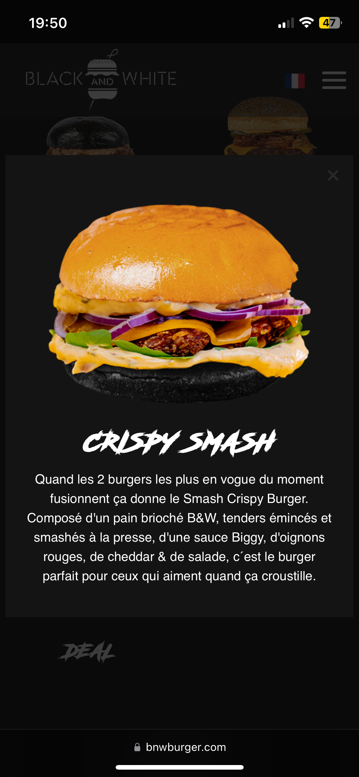 Bonjour Fernand, Nous vous remercions pour votre retour. Nous sommes sincèrement désolé d'apprendre que votre expérience n'a pas été à la hauteur. Dans l'optique de toujours nous améliorer, nous prenons à coeur votre commentaire sur la qualité du burger que nous transmettons à nos équipes. À bientôt chez Black&White Burger 🍔 - L'équipe Black&White Burger