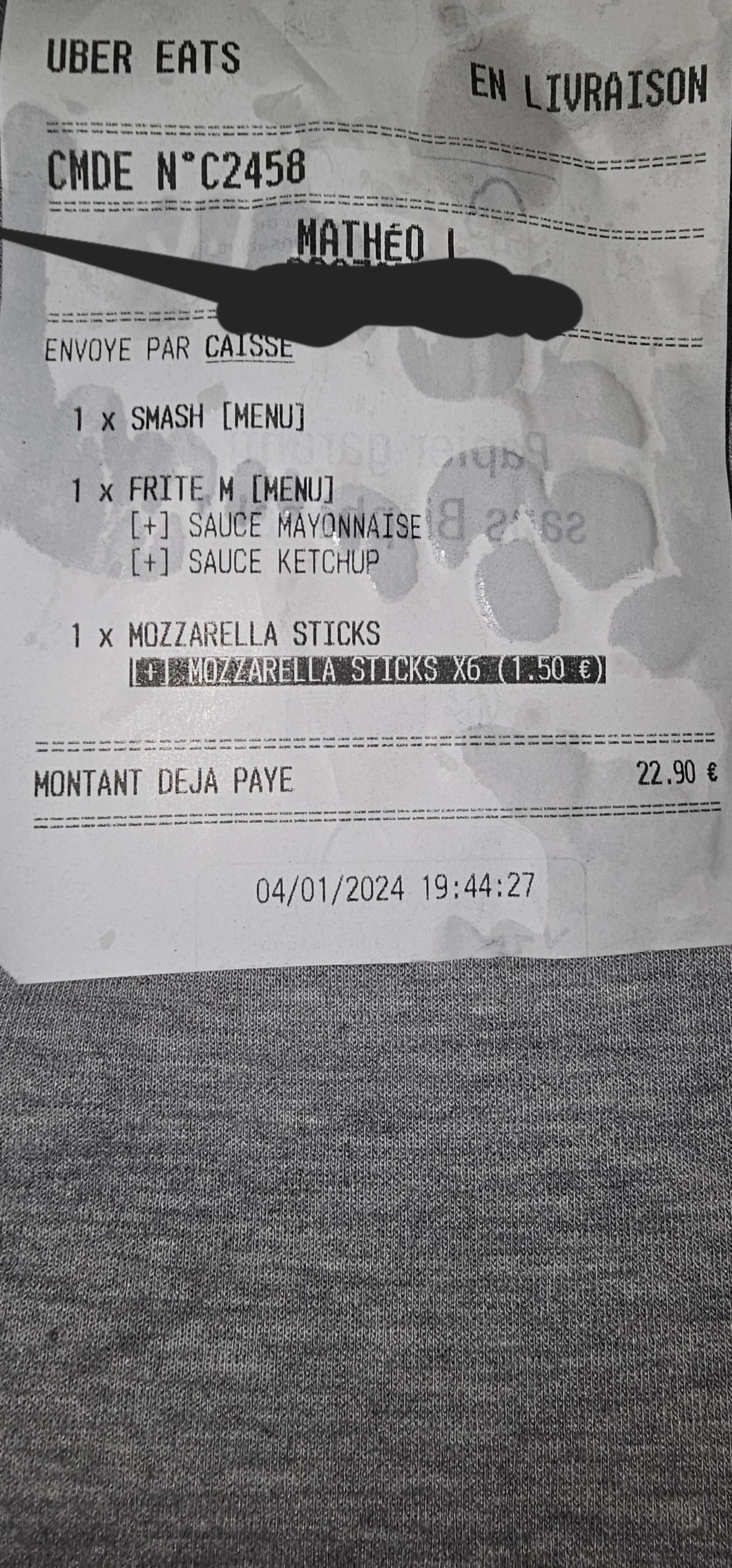 Première fois en commande par deliveroo, oublie de la boisson dans mon menu -> remboursement de 90 centimes . Facile de se faire des marges comme ça …. Du vol ? Oui !