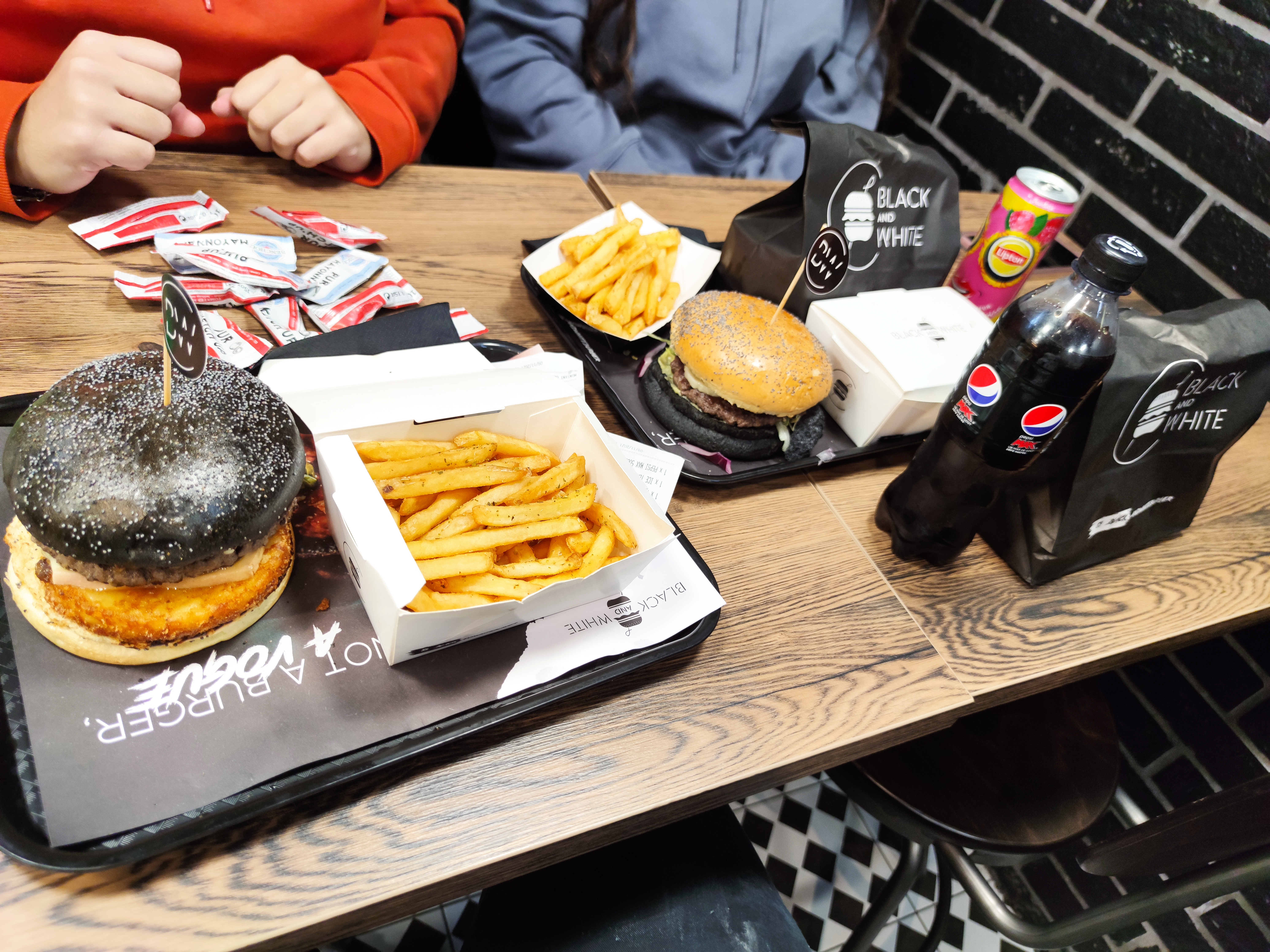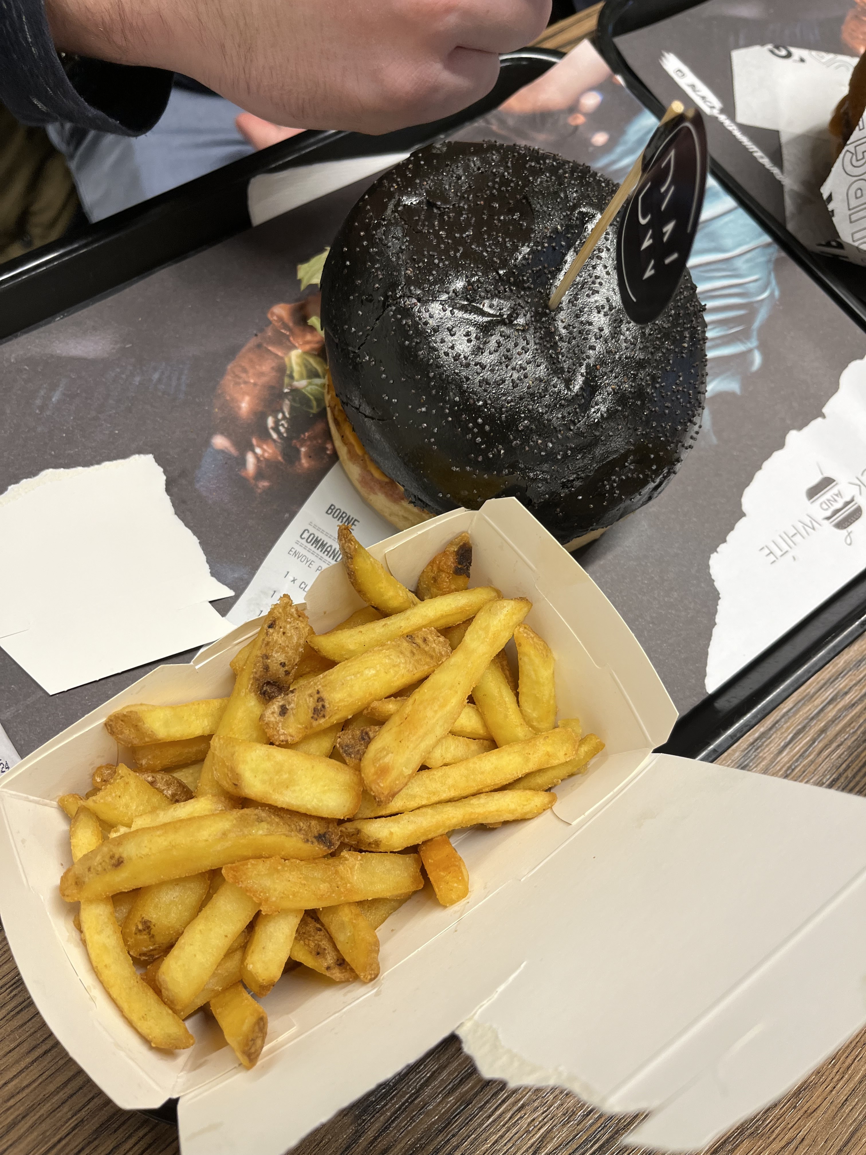 Très bon burgers autant au niveau de la viande que des garnitures. Les frites sont vraiment bien cuites tout est d'une grande qualité. J'ai donc eu le plaisir de revenir plusieurs fois, les wings et les tenders sont excellents aussi, cuits et croustillants comme il le faut. Un petit peu plus cher qu'un fast food classique mais vaut sont prix. Dommage que quelques rares fois certains produits soient en rupture de stock mais étant donné que j'y allais beaucoup vers l'ouverture du Black and White il est logique de penser que ce soit dû à la période d'adaptation. Bref tout est excellent le personnel est gentil, les prix un petit peu élevé mais le détour en vaut la peine !