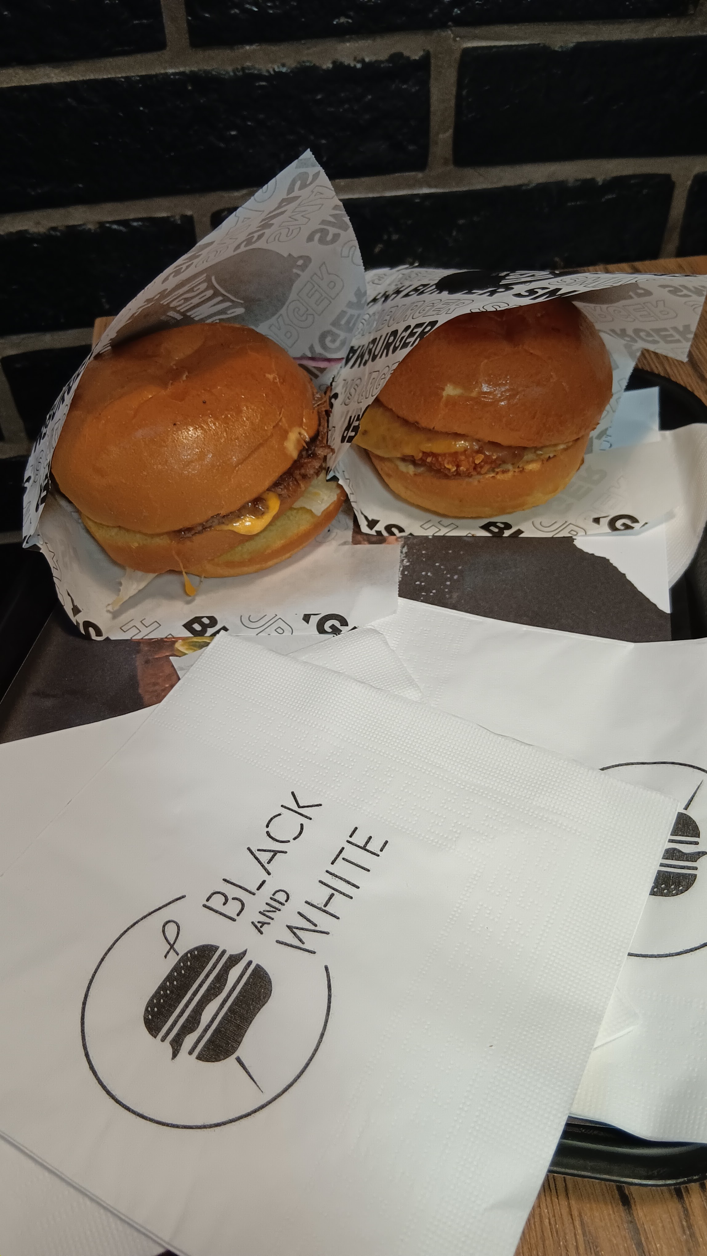 Première expérience au black and white : INCROYABLE !!! Le poulet est vraiment délicieux, croustillant et tendre. L’un des meilleurs burgers (kentucky) que j’ai pu manger.