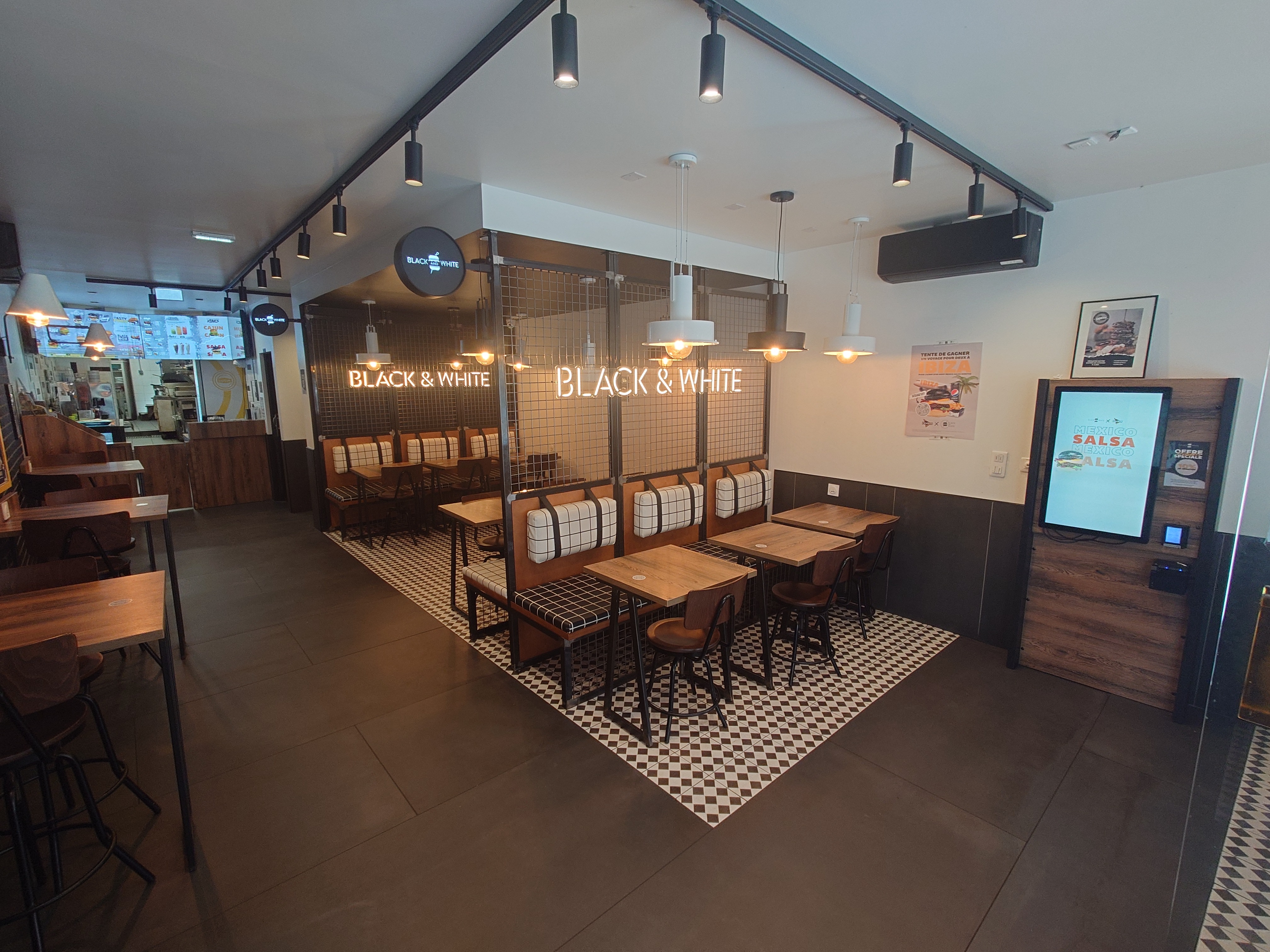 Black and white BURGER est endroit incontournable pour manger de bons hamburgers, produits frais de qualité accueil, agréable, équipe professionnelle réactive aux moindres besoins du clients. Musique d’ambiance inter générationnelles et bornes à dispo aussi pour commander. Le service de livraison est quant à lui respectueux dans les délais contrairement à d’autres restos…. Je recommande et valide FORT cette adresse.