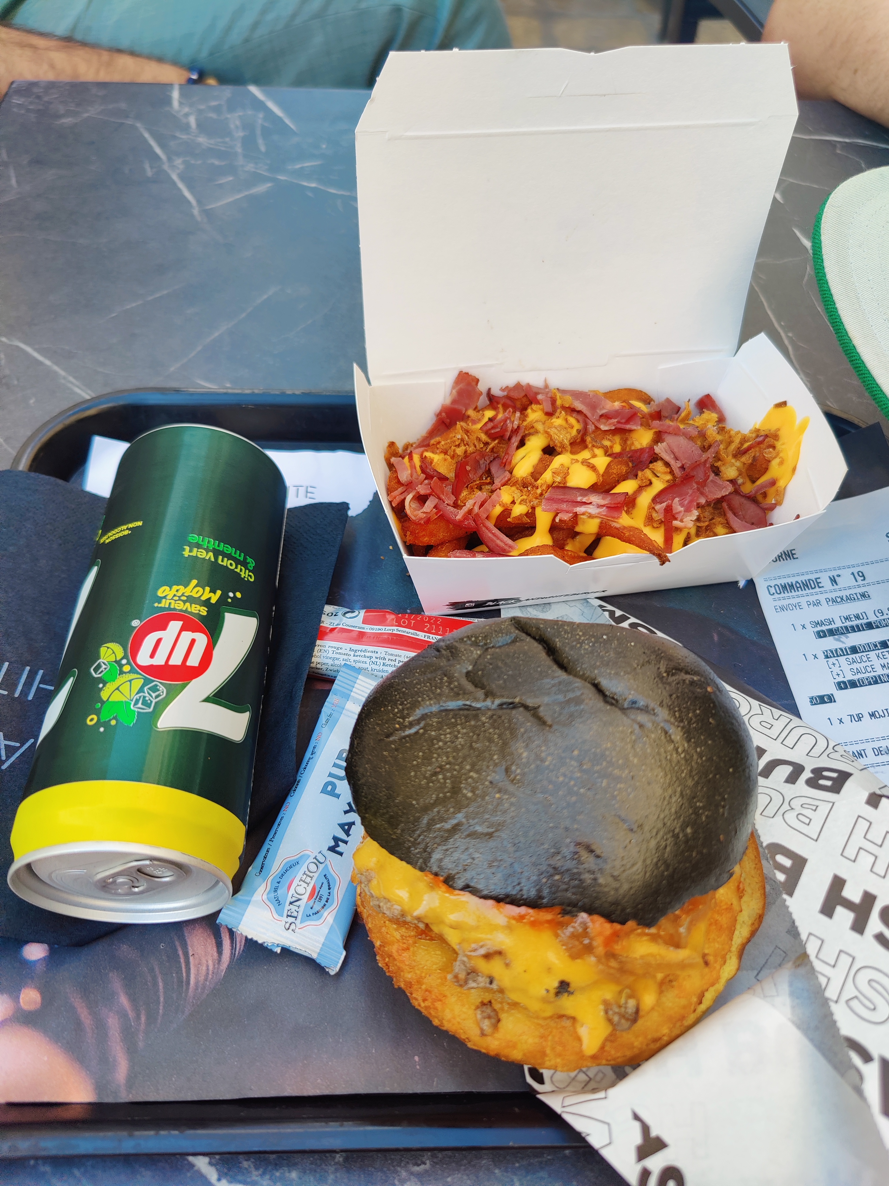 Commande passée sur Uber. J'ai commandé un burger avec du charbon végétal pour goûter, et j'ai reçu un burger normal. Les frites étaient farineuses et sèches Le prix est chère pour ce que sont les produits