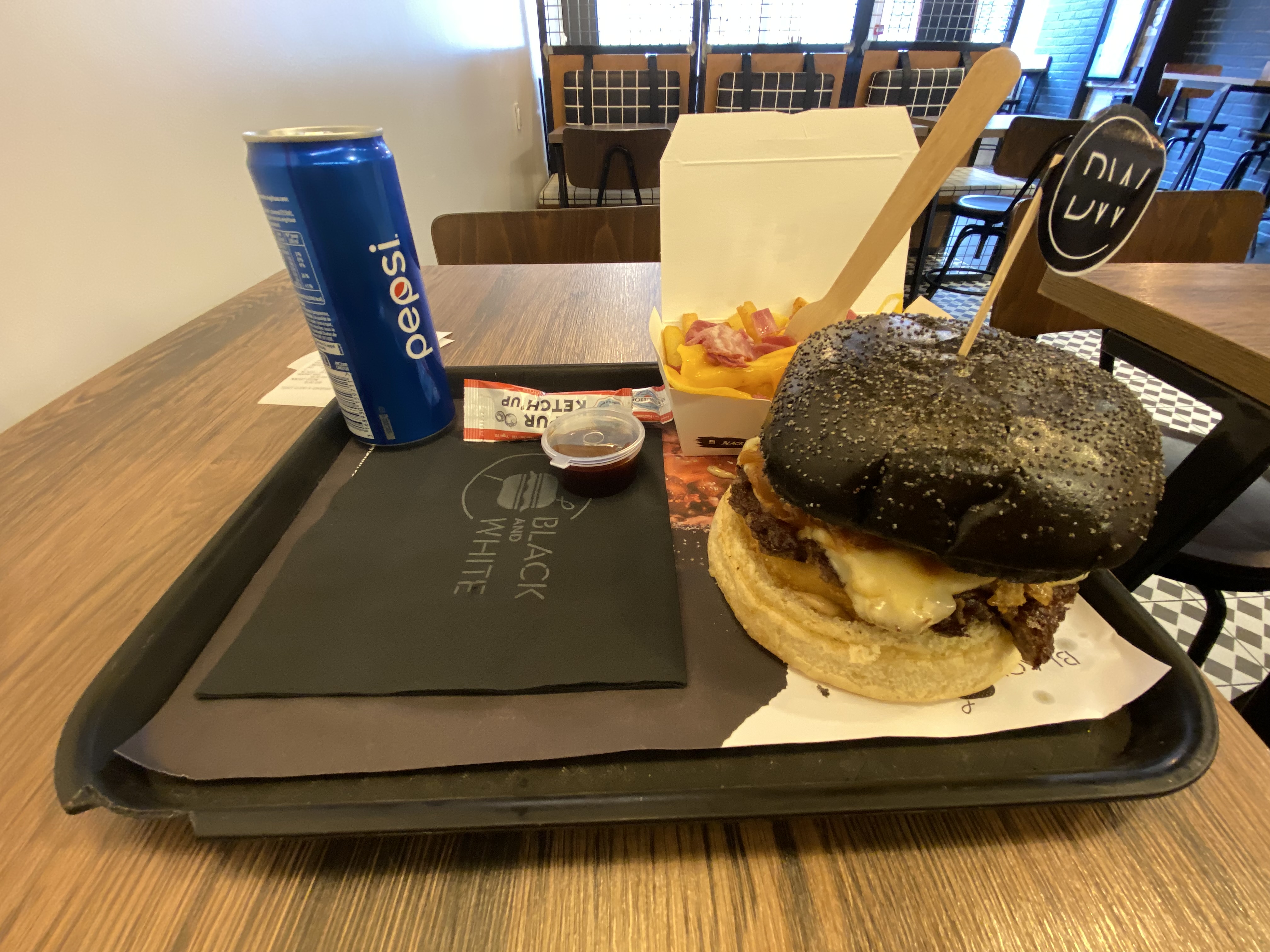 Un vendredi, à peine 12h, on cherche où aller manger (nous ne sommes pas du coin) et on tombe sur B&W. Go tester! Tout est top, de la déco au repas en lui même (à mon sens le plus important). Du goût dans le burger, bien épicé, des frites (patate douce ou classique) délicieuses, un pain délicieux, des viandes bien cuites,... bref rien à redire. Et merci aux deux jeunes hommes présents ce jour là et qui ont rendu cet avis possible.