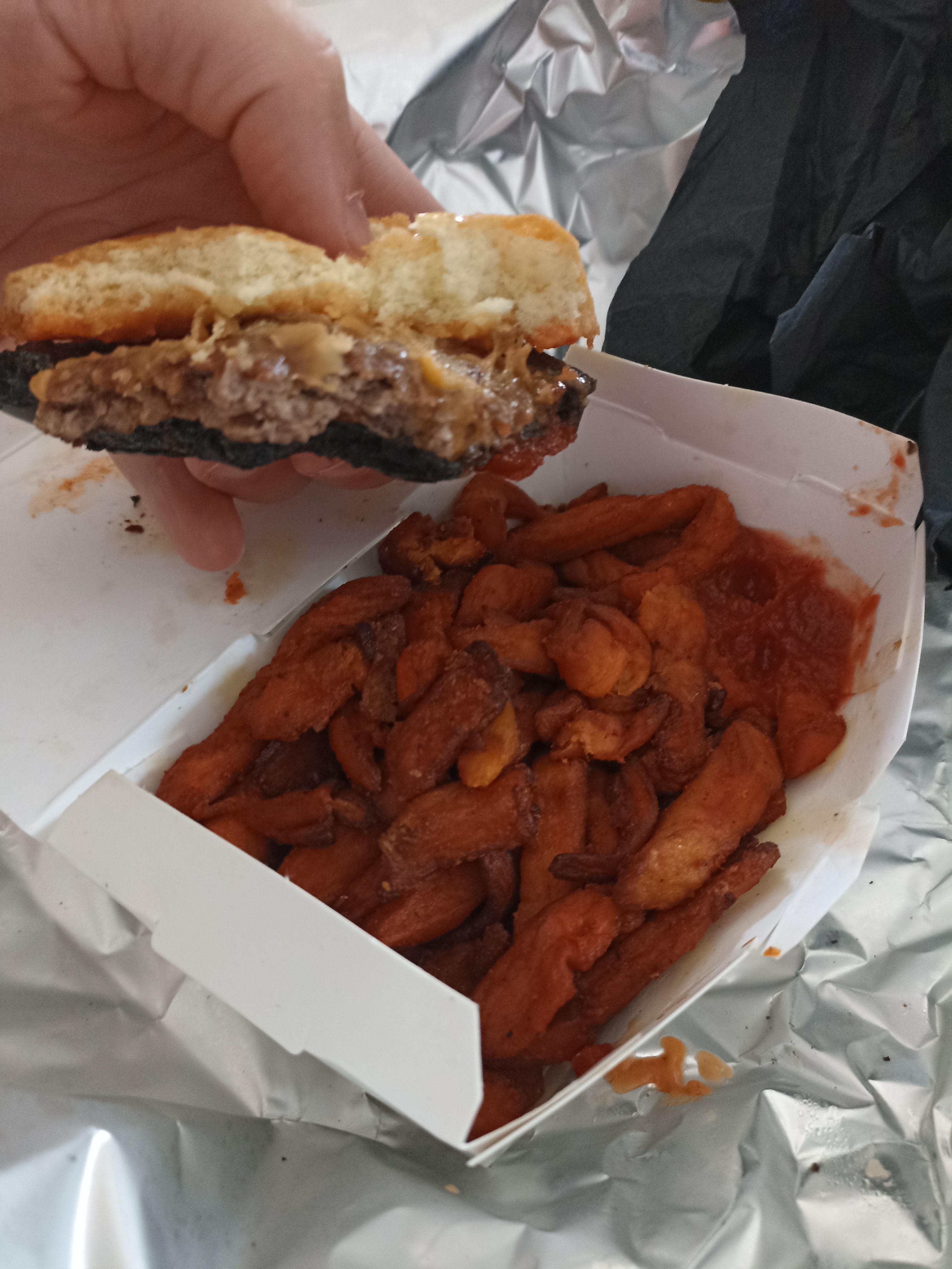 Bonjour, J’ai commandé en ce jour du 06/02/2025 un burger crispy qui fut un délice. Le pain était bien moelleux et fondait dans la bouche tandis que le steak était bien cuit et très goûtu. Je recommande.