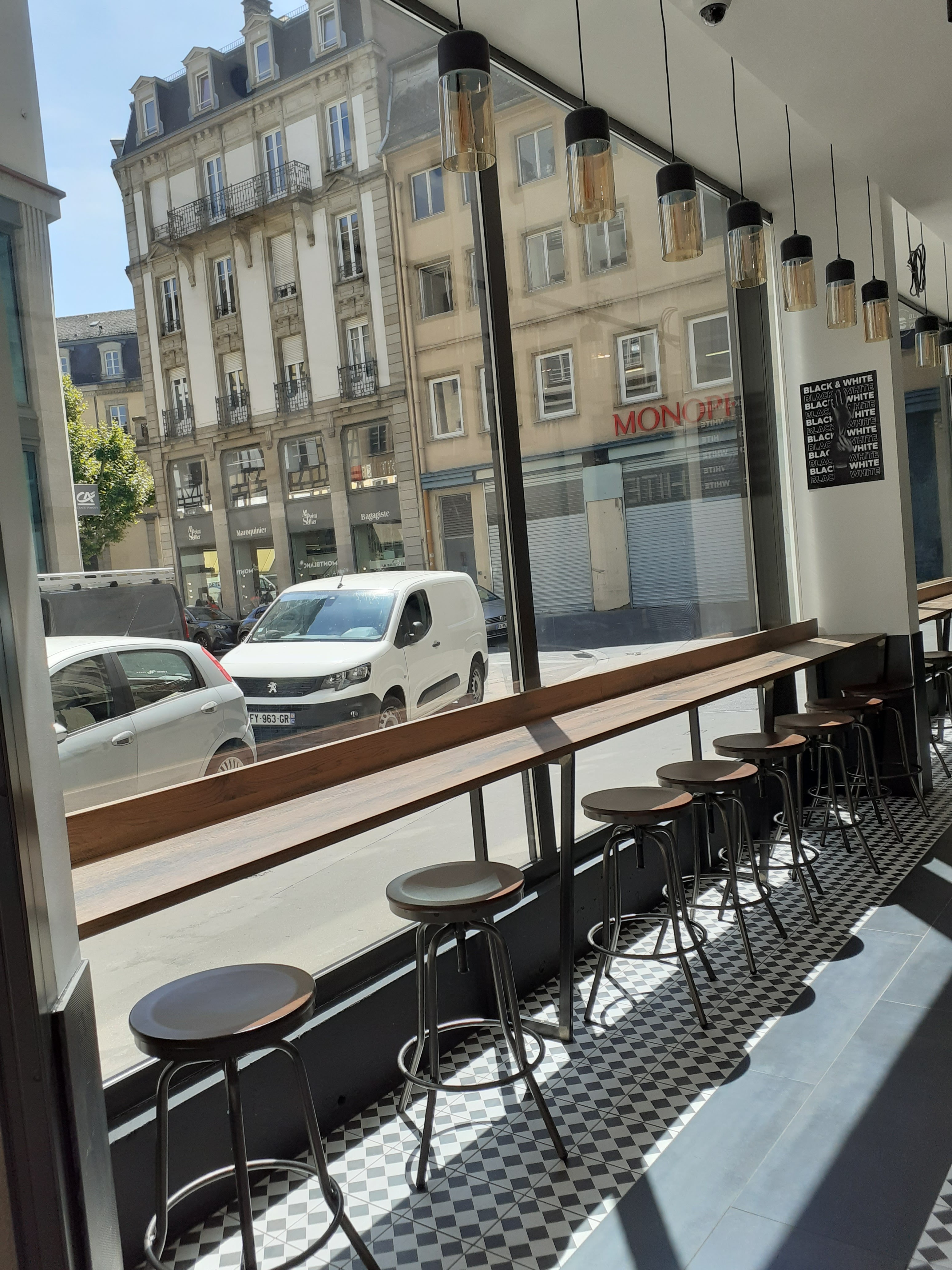 Je recommande pas cette endroit. La viande était cru, il n’y avait plus de frites à seulement 12h50 donc pas le choix de prendre des frites de patate douce qui était encore à moitié congelé. Les serveuses étaient nonchalante, et agressive. Rien à voir avec les Black & White que j’ai pu tester dans d’autres ville c’est dommage