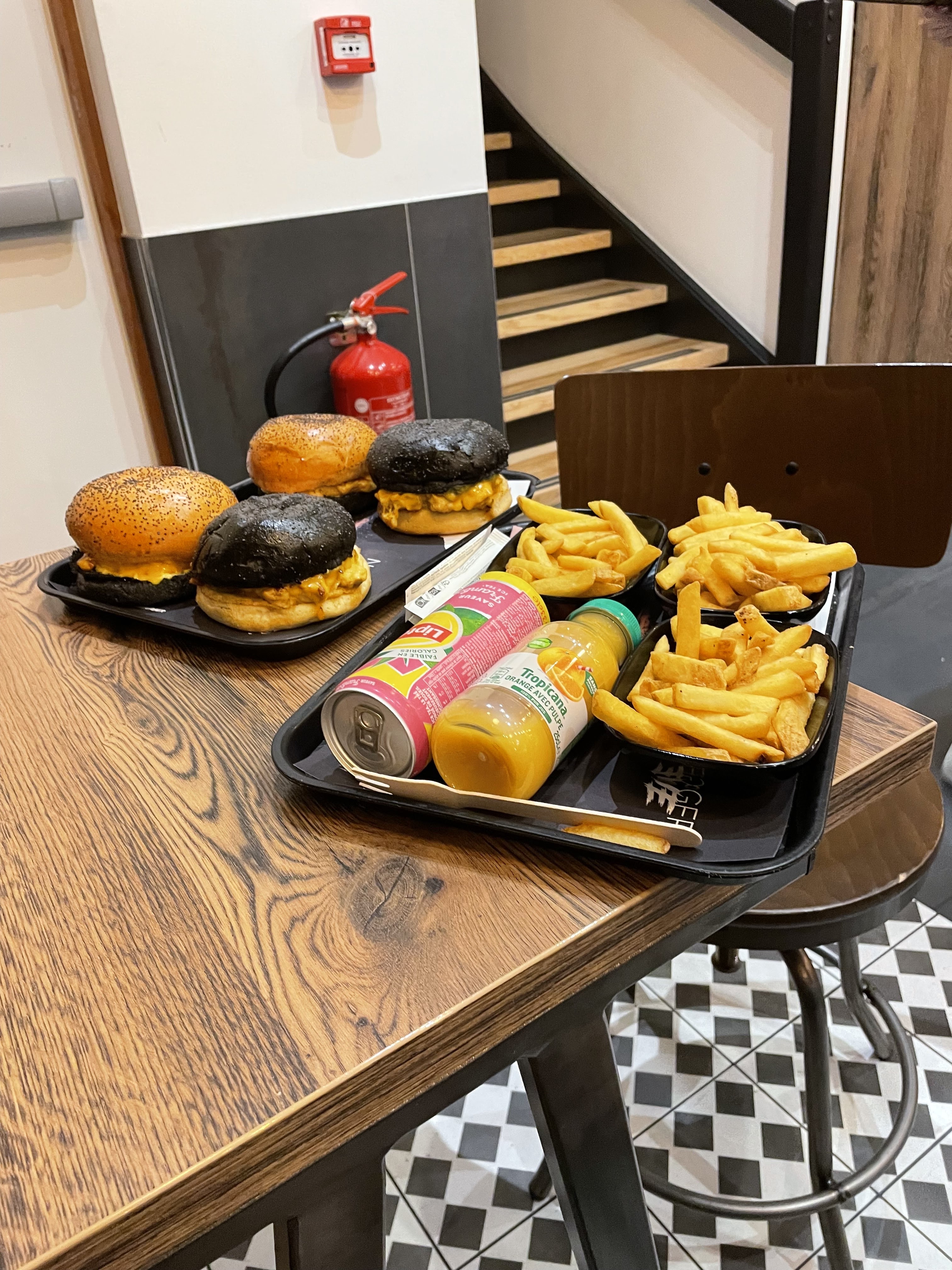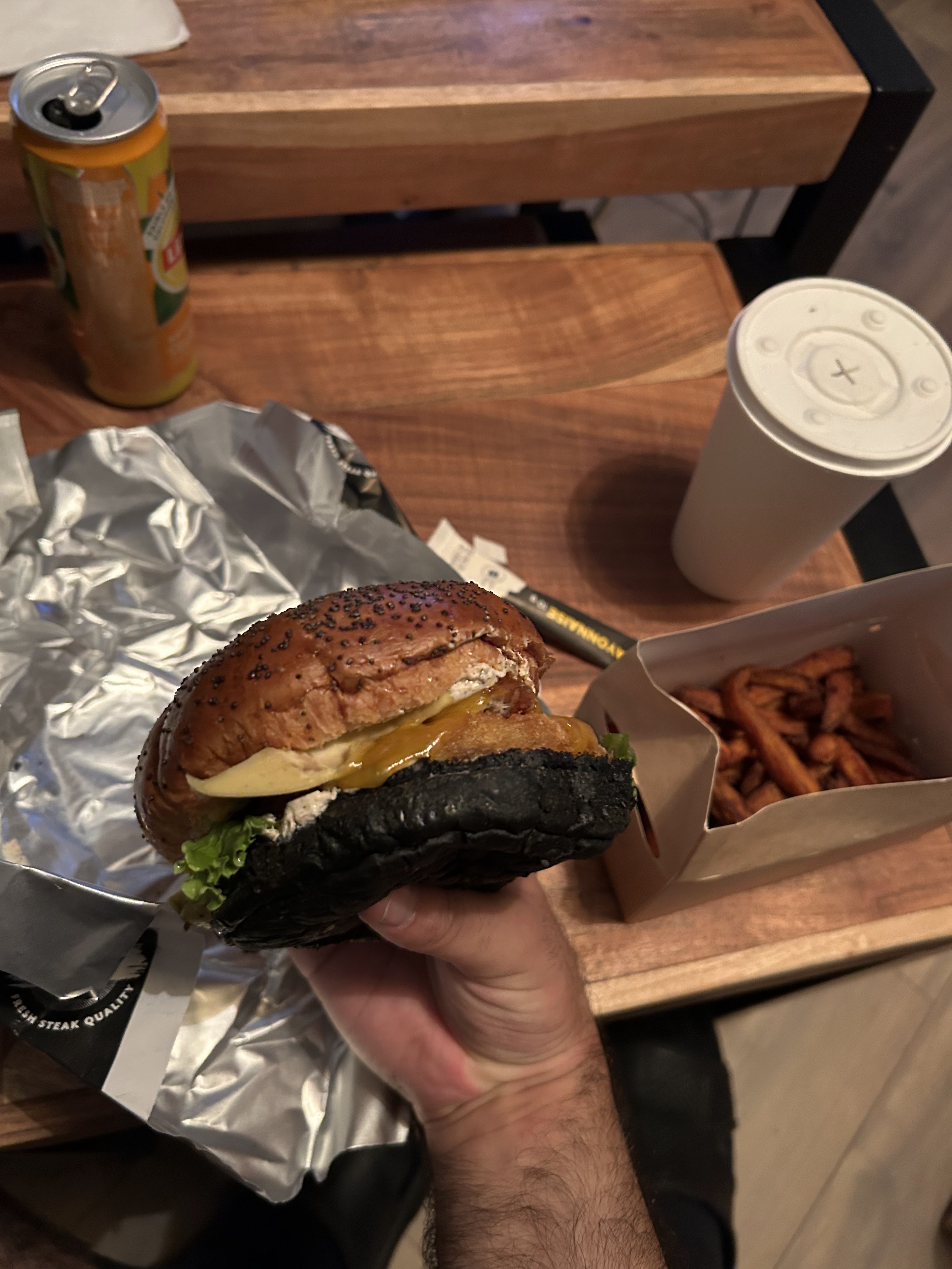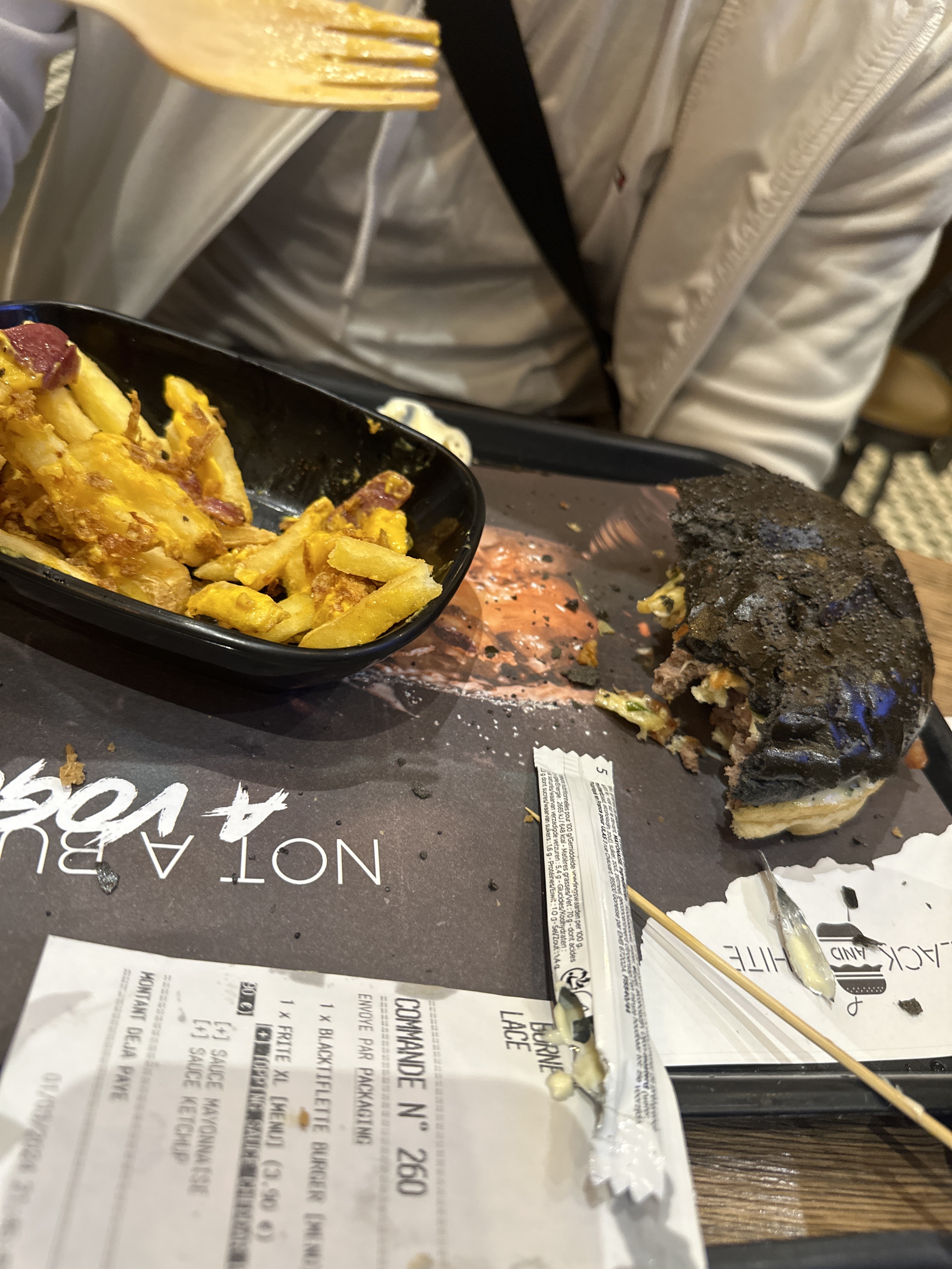Quelle déception ! Rien d’alarmant mais je n’ai jamais ressenti aussi peu d’émotions dans un lieu et dans des plats. Alors bien sûr, je sais bien que j’ai atterri dans une chaîne de fast food mais j’espérais au moins un peu de plaisir ! Les frites sont pas salées, les burgers froids, les sauces sont payantes et pas suffisantes, c’est un océan de platitude. Le fameux bun noir n’est qu’un argument marketing fallacieux qui autorise cette chaîne à vendre de simple cheeseburger au prix de 15€ ( plutôt aller au kebab du coin ! ). Pour une chaîne de restauration étant si proche de l’UFC, et du MMA je dois bien dire que c’est bien trouvé, car mon portefeuille en a pris un coup et mon estomac a fini au tapis tellement il avait encore faim. Pour finir je dirais que le personnel s’est montré professionnel tout le long et je pense qu’ils sont en rien responsable de mon expérience client.