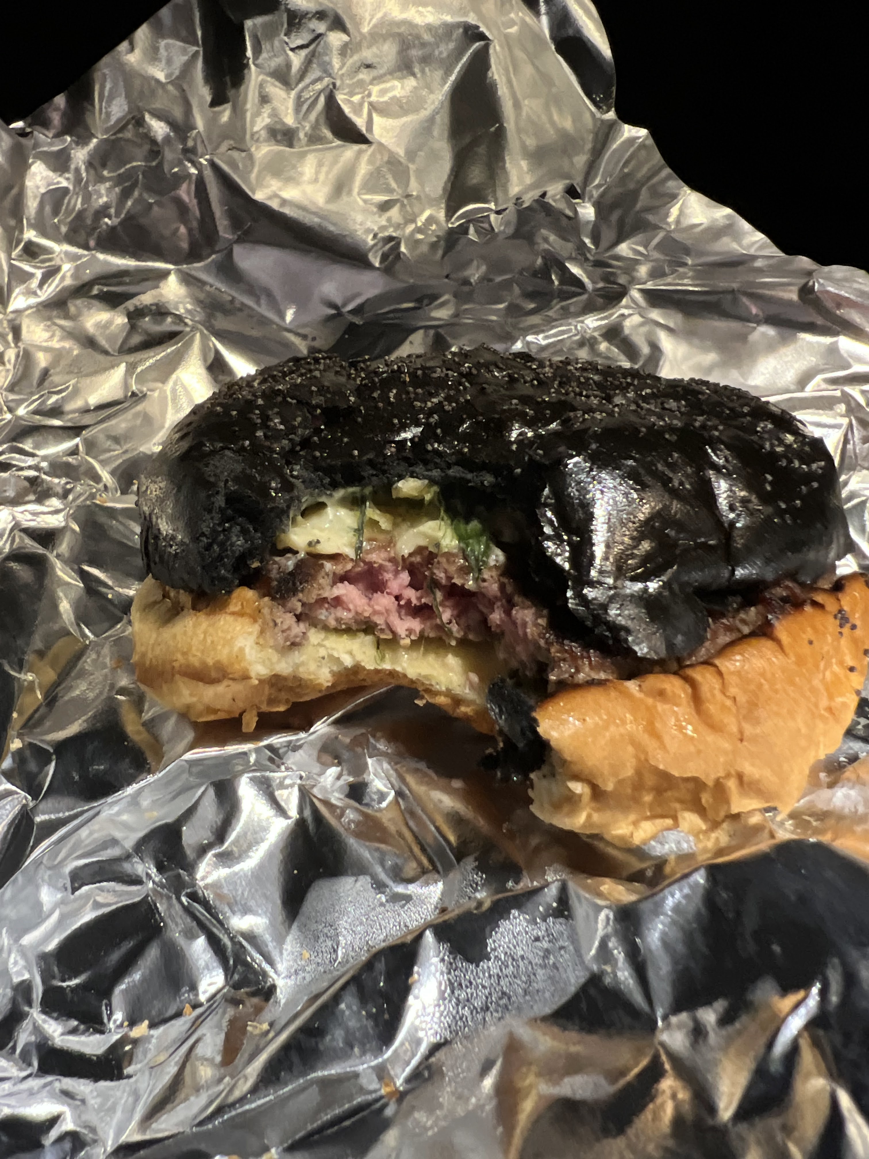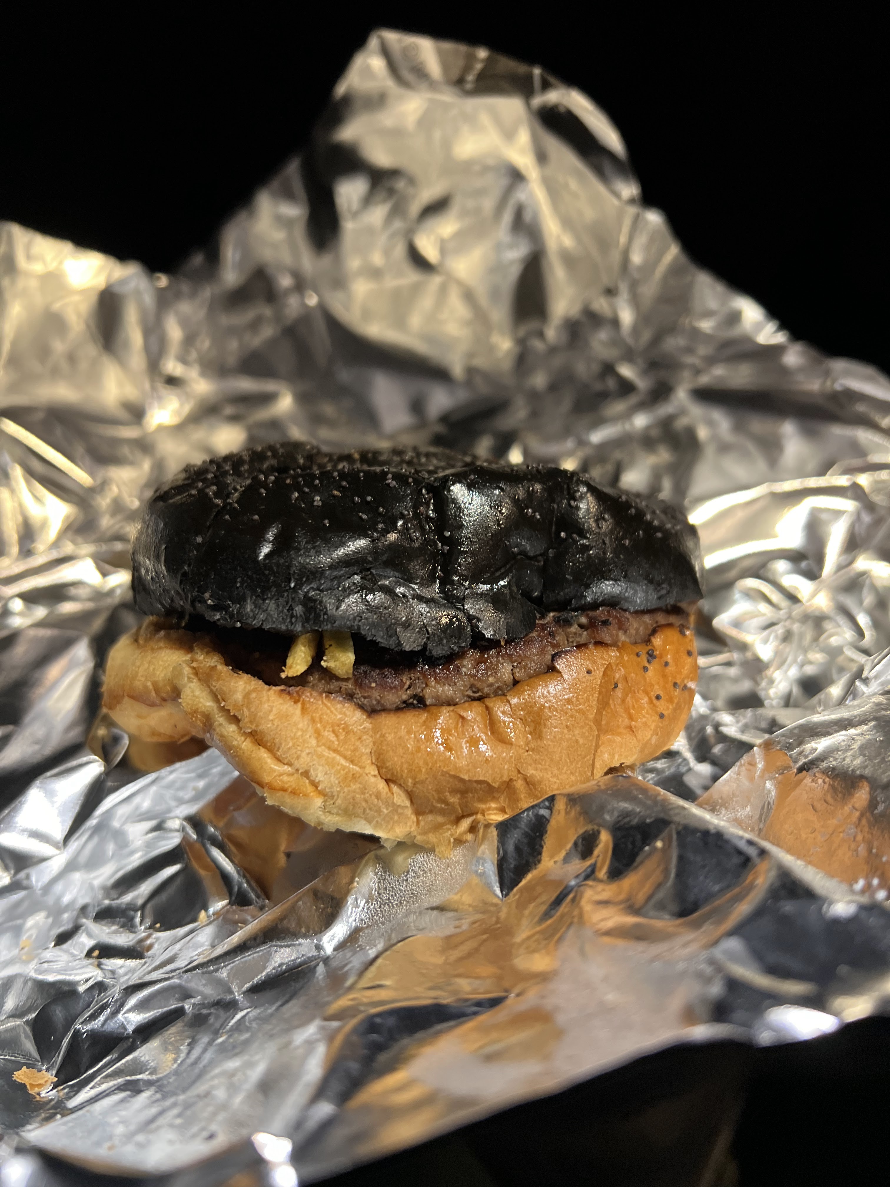 Un smash burger classique avec le supplément bacon qui a été payé, mais complètement omis, dommage. On sent essentiellement les cornichons et le ketchup au goût, c'est assez cher pour le résultat, certes pas écoeurant, mais assez basique au final. Au moins le bun noir signature est joli. Commande à emporter, alors rien à dire sur l'ambiance, c'était vide lors de mon passage en début de pause déjeuner, le service était rapide et efficace.