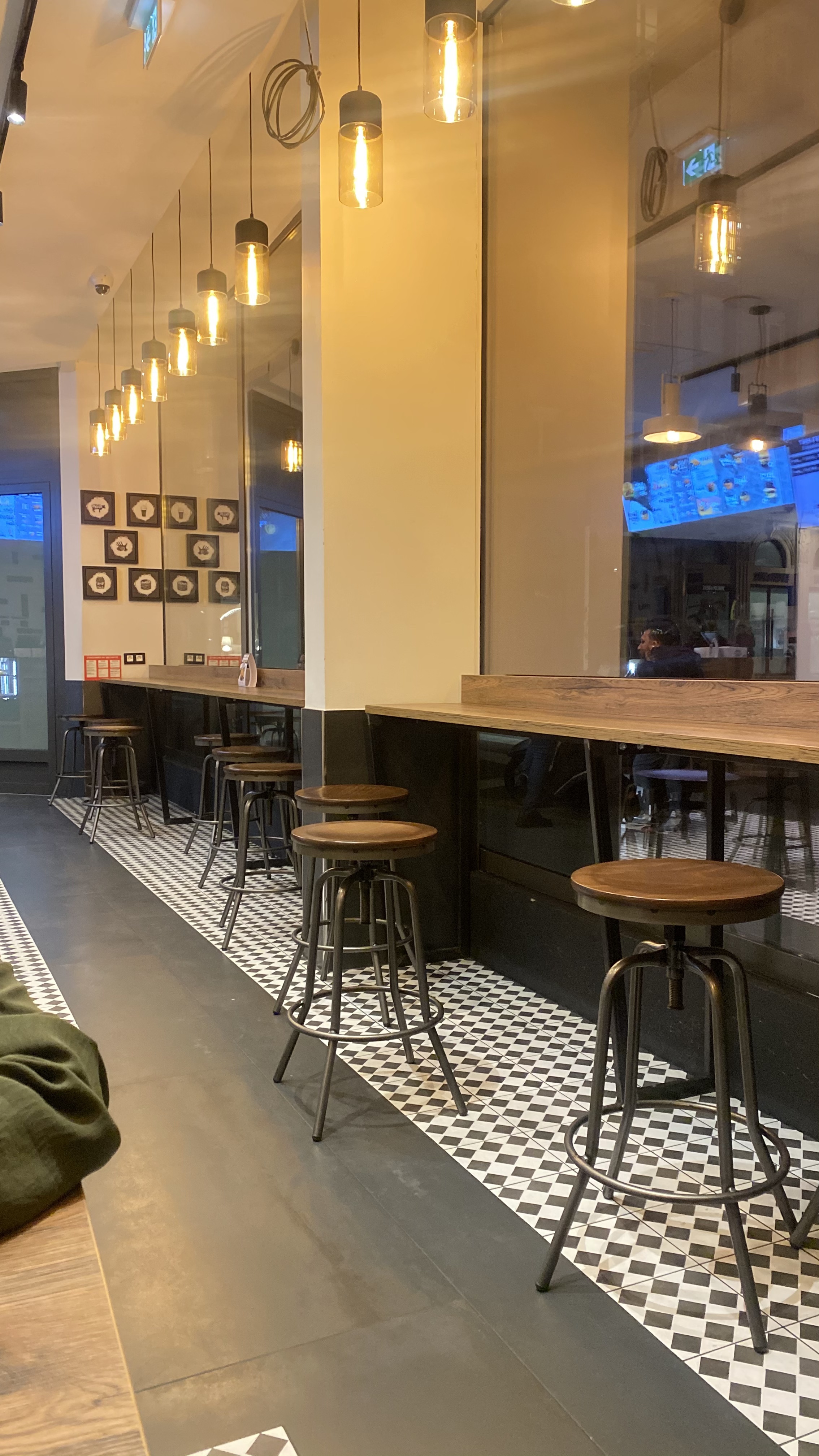 Rapide & efficace ! Un peu déçu des frites et du burger ( trop de pain et très peu de viande à mon goût …) Sinon ambiance sympa, le personnel très gentil ! Prix non excessif 👍🏼