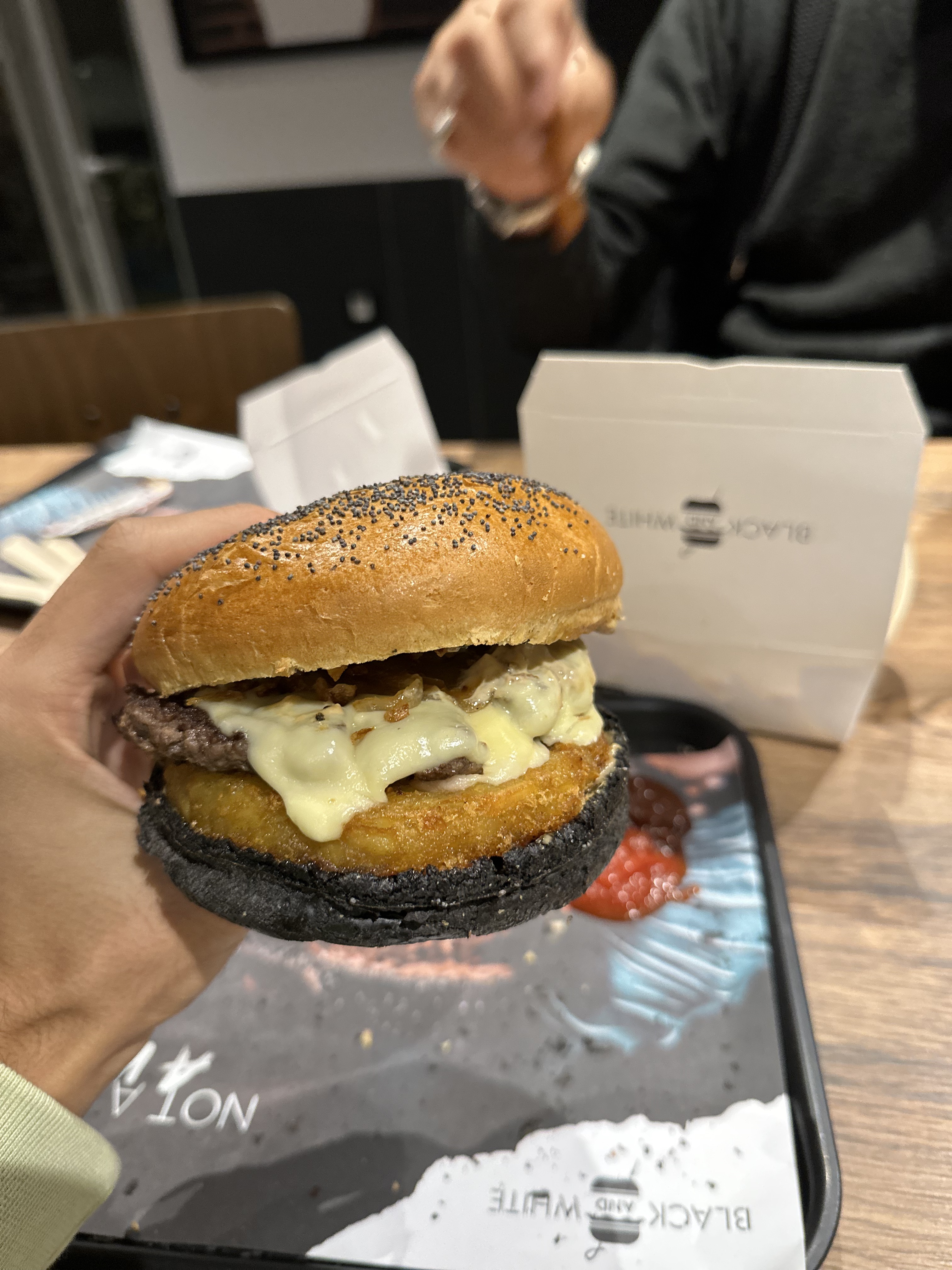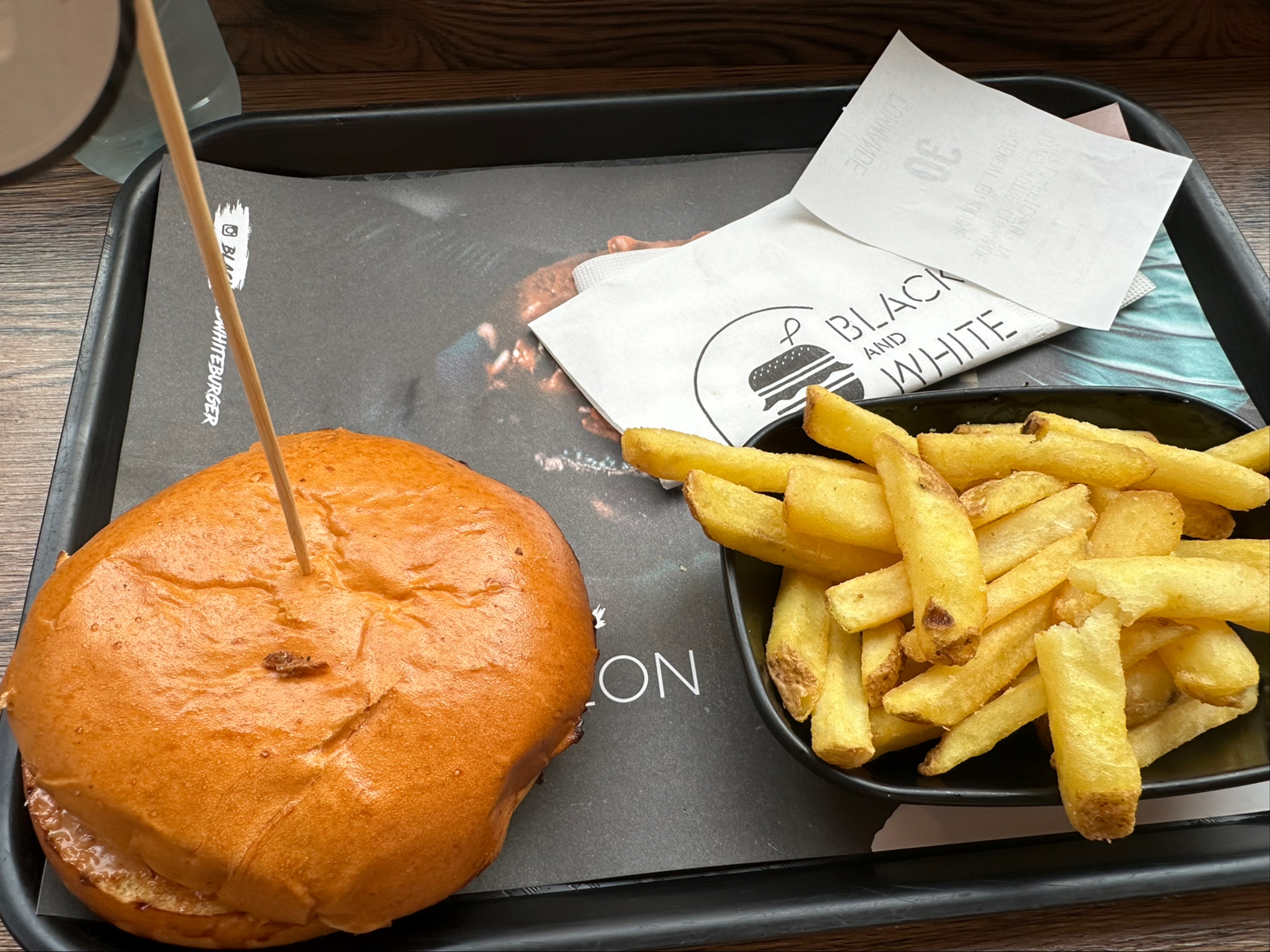 Super expérience au Black and White Burger ! Le burger était délicieux, avec des produits frais et une bonne cuisson. L’ambiance était sympa et le service rapide et agréable avec un serveur très aimable. Je recommande vivement pour une pause gourmande réussie !