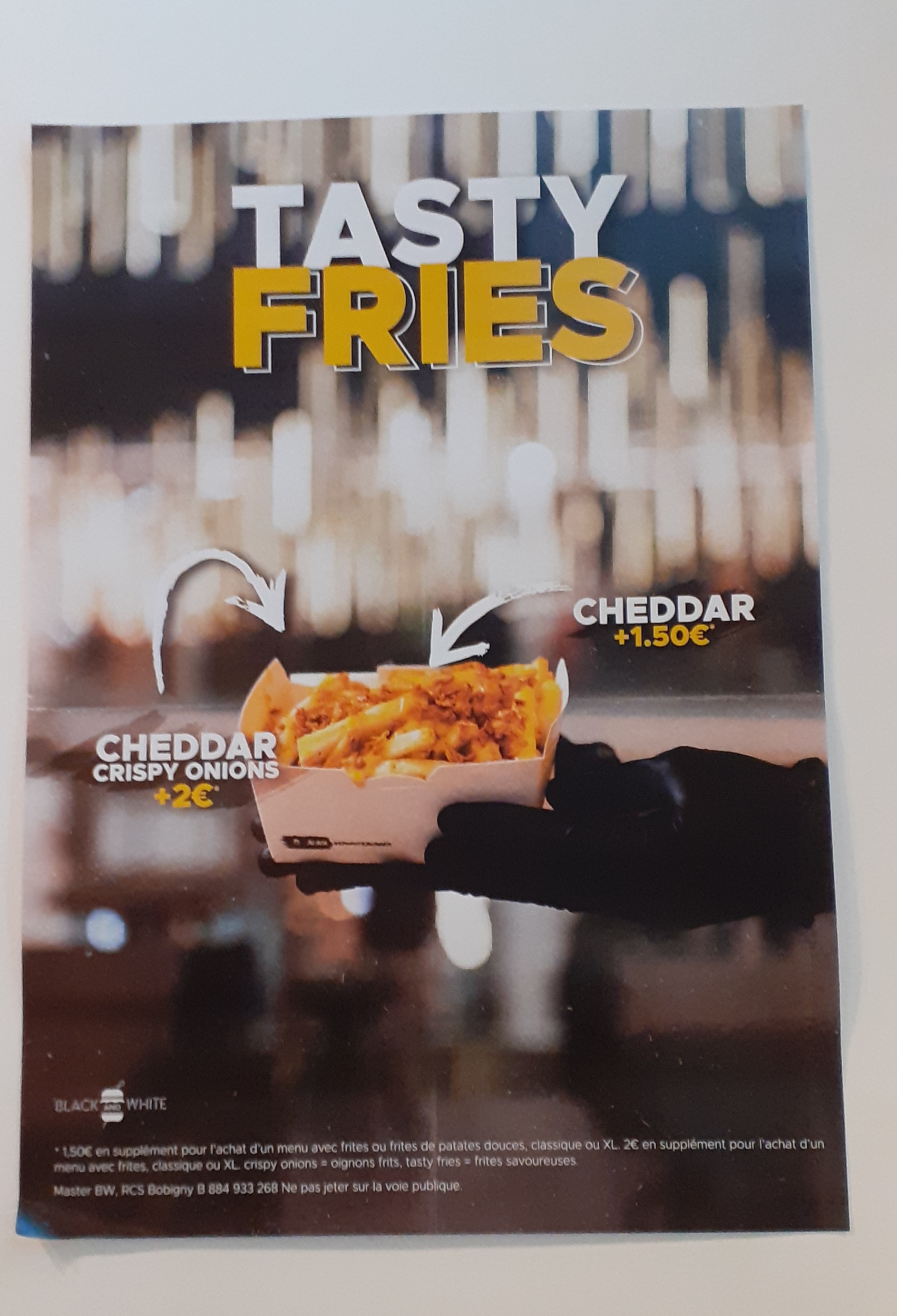 Le black and white de Strasbourg est excellent, on y retrouve toute les meilleurs recettes du black and white, le service est très rapide. Le personnel est très accueillant et très serviable. j’ai payé 11.90€ pour un énorme burger beaucoup de frites et une boisson, vous pourrez aussi y retrouver des gants pour ne pas vous salir. De plus il est très bien placé sur Strasbourg proche de tous les grands magasins. je vous le recommande fortement. Merci beaucoup, je reviens vite