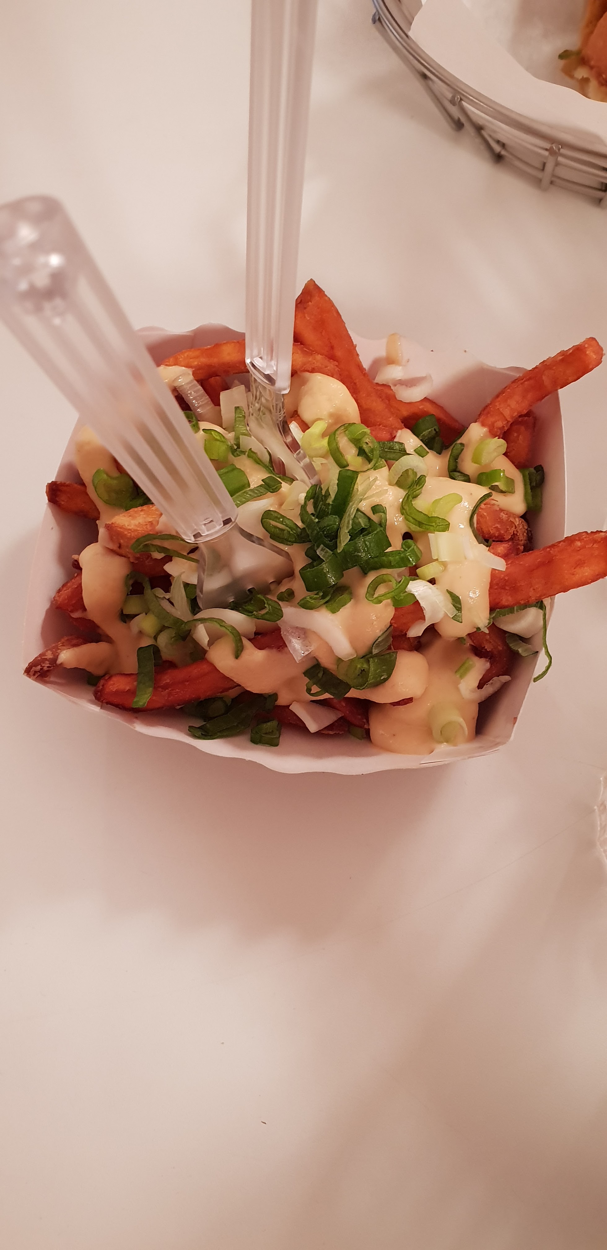 Burger plutôt fade et sans rien d'especial vu le prix plutôt salé. Frites de patates douce trop cuites.