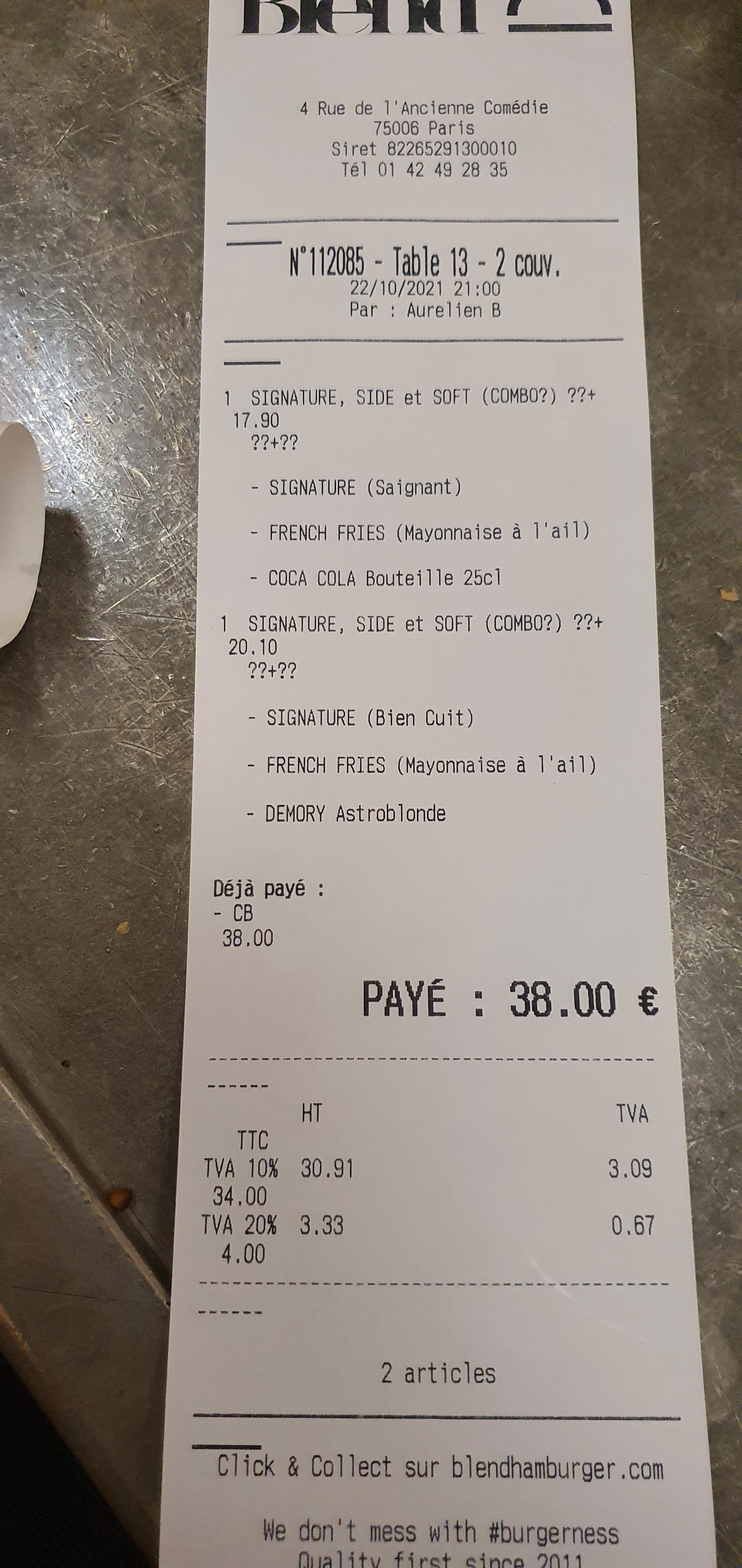 Cher Cams, nous sommes très sensible à votre commentaire, notamment sur nos hamburgers et l'accueil ; ) Cela a été transmis aux équipes. Malgré que nous cuisions les pains de nos hamburgers tout au long de la journée nous-mêmes avec de la farine TRADITION LABEL ROUGE, que nous hachions la viande maturée d’Yves-Marie le Bourdonnec, nourrie à l'herbe, sur place, avant chaque service, avec des accompagnements frais et des fromages AOP : nous faisons tout pour garder des prix accessibles afin d'en faire profiter le plus grand nombre. Notre mantra au sein des équipes c'est même : Bringing People Together ; ) Bon après-midi et bonne semaine L'équipe Blend