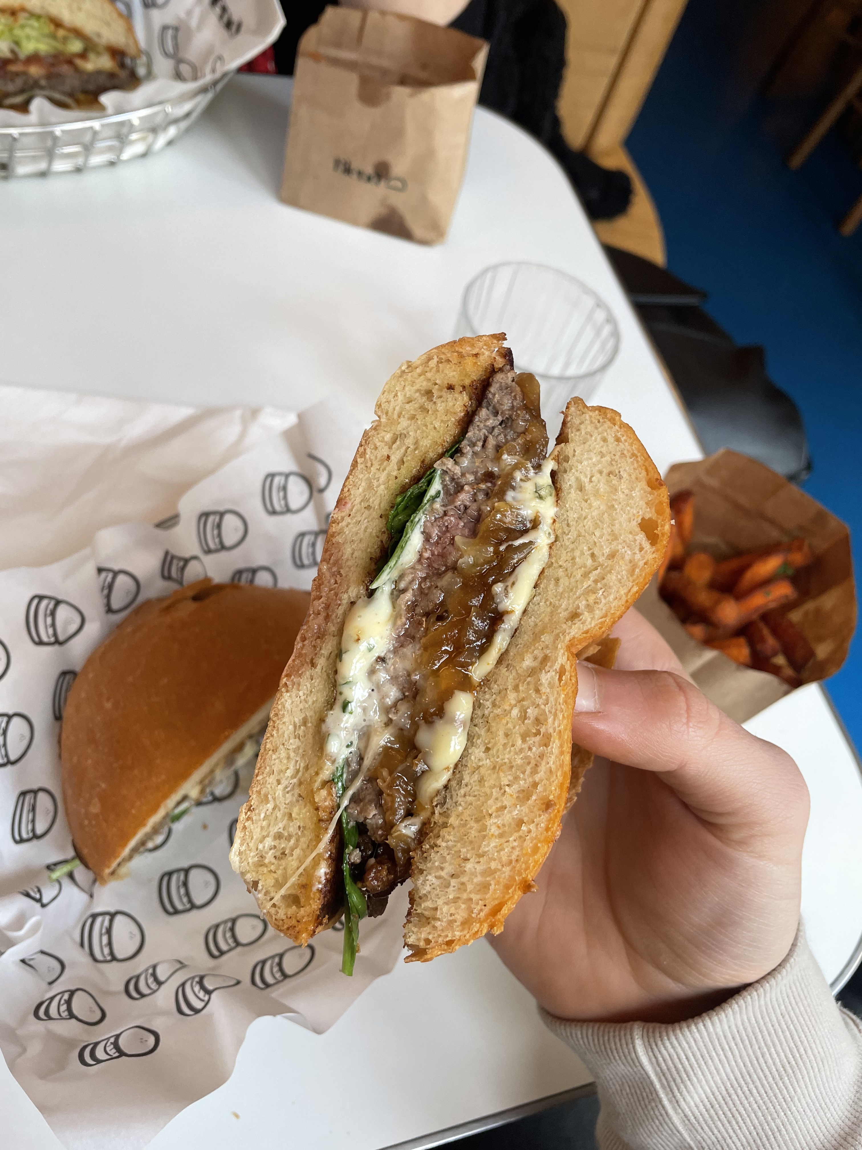 Encore une chaîne connue et reconnue... le Blend est très bon ! Son pain moelleux est bon, la viande est bonne, les compositions sont sympas, leurs frites de patates douces sont excellentes, la sauce aïoli est addictive.. un burger assez original et très bon. Parmi les meilleurs à Paris ! Note : en livraison (glovo) ça rend pas trop mal mais jamais aussi bien que sur place
