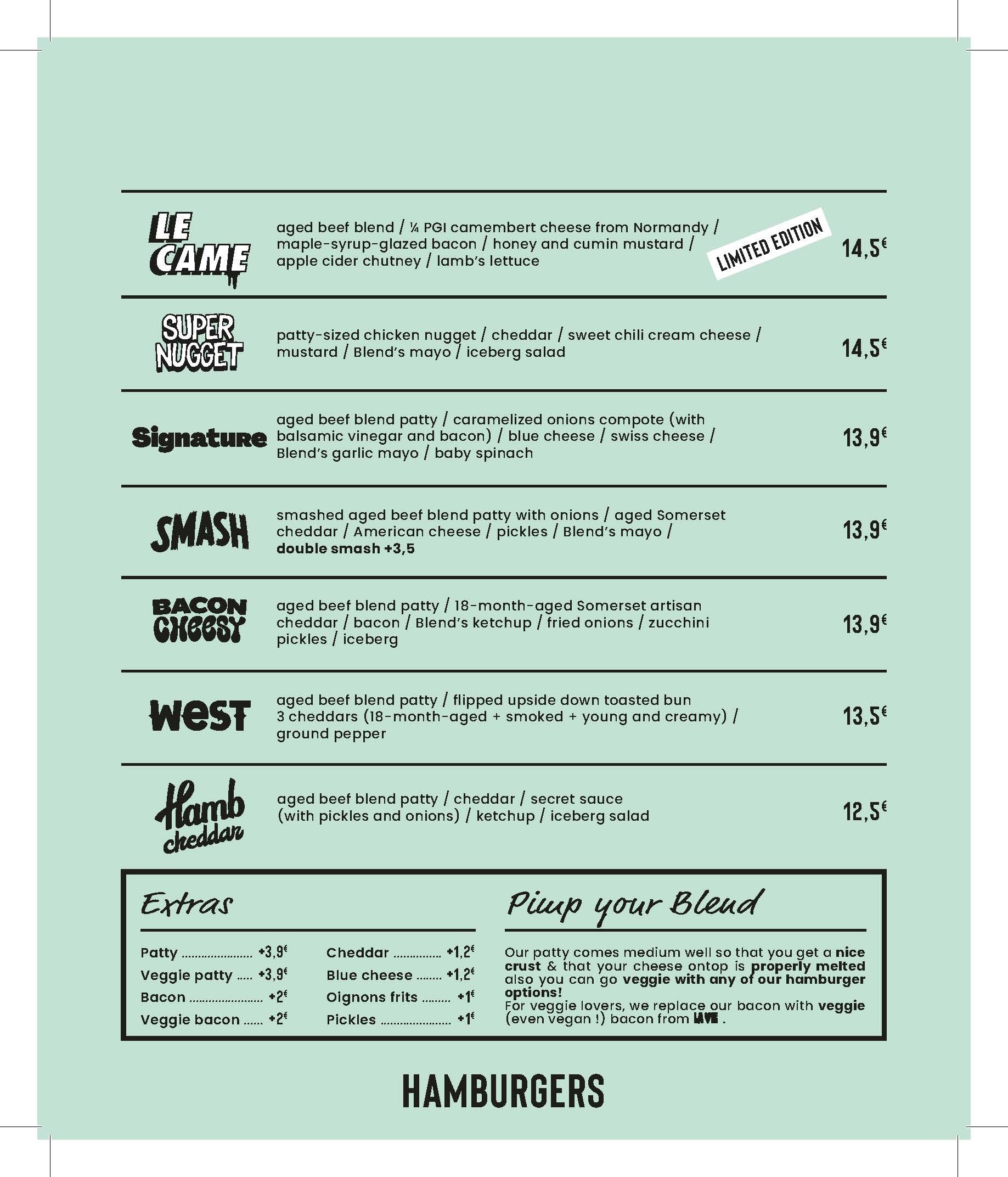 Excellent lieu chaleureux avec un accueil cool et sympa. Délicieux burgers avec frites maison. Une adresse incontournable à St Germain des Prés. Click and collect via blendhamburger.com Excellent, warm place with a cool, friendly welcome. Delicious burgers with home fries. A must in St Germain des Prés. Click and collect via blendhamburger.com Excelente lugar cálido con una bienvenida fresca y amable. Deliciosas hamburguesas con patatas fritas caseras. Imprescindible en St Germain des Prés. Haga clic y recoja a través de blendhamburger.com