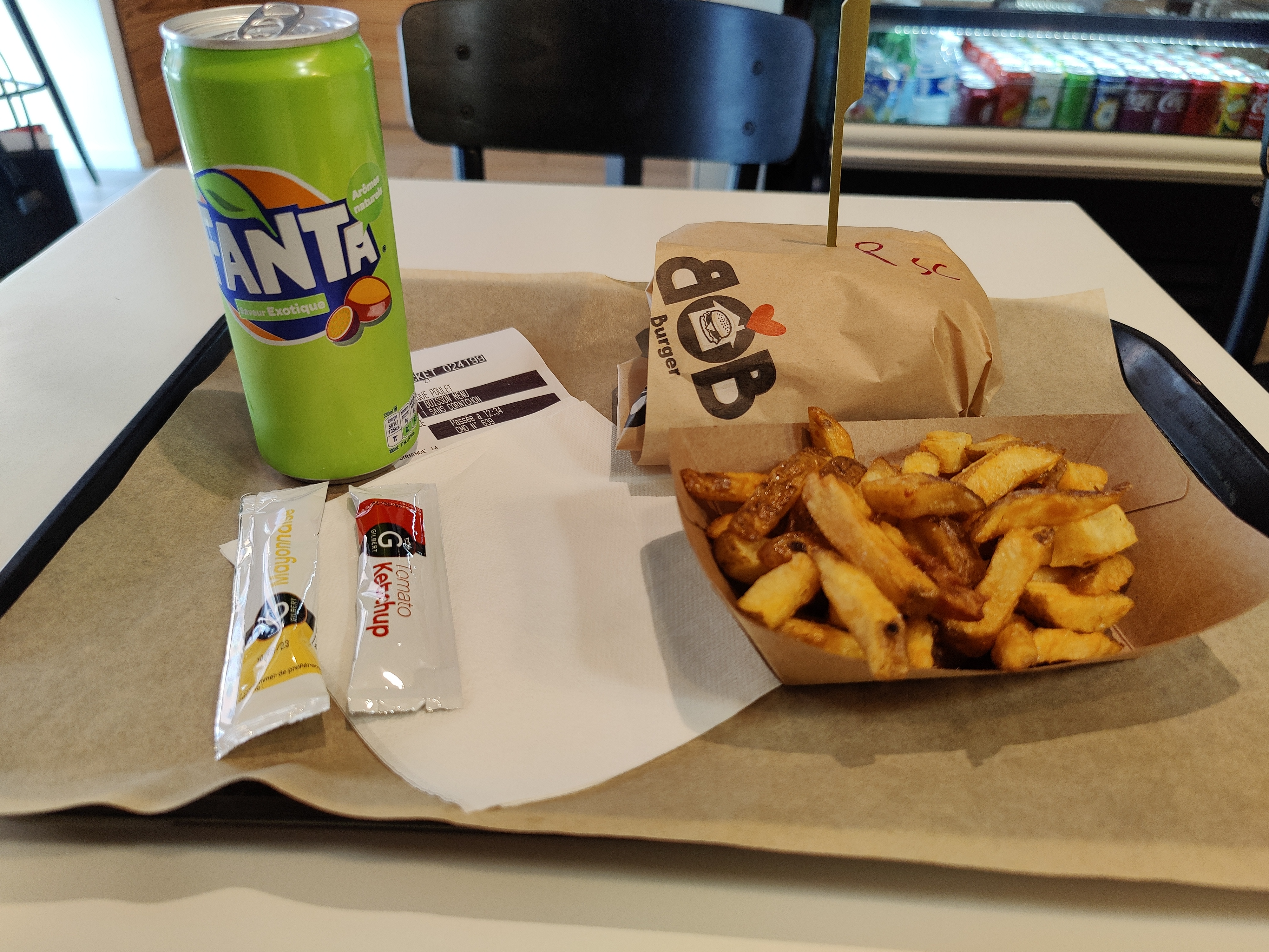 Alors Bob Burger le burger est assez bon par contre le menu à 15.90 ça fait assez mal et ça justifie pas le prix sachant qu’on est dans un fast food basique... La part de frites n’est pas non plus très copieuse... Bref je n’y retournerai pas