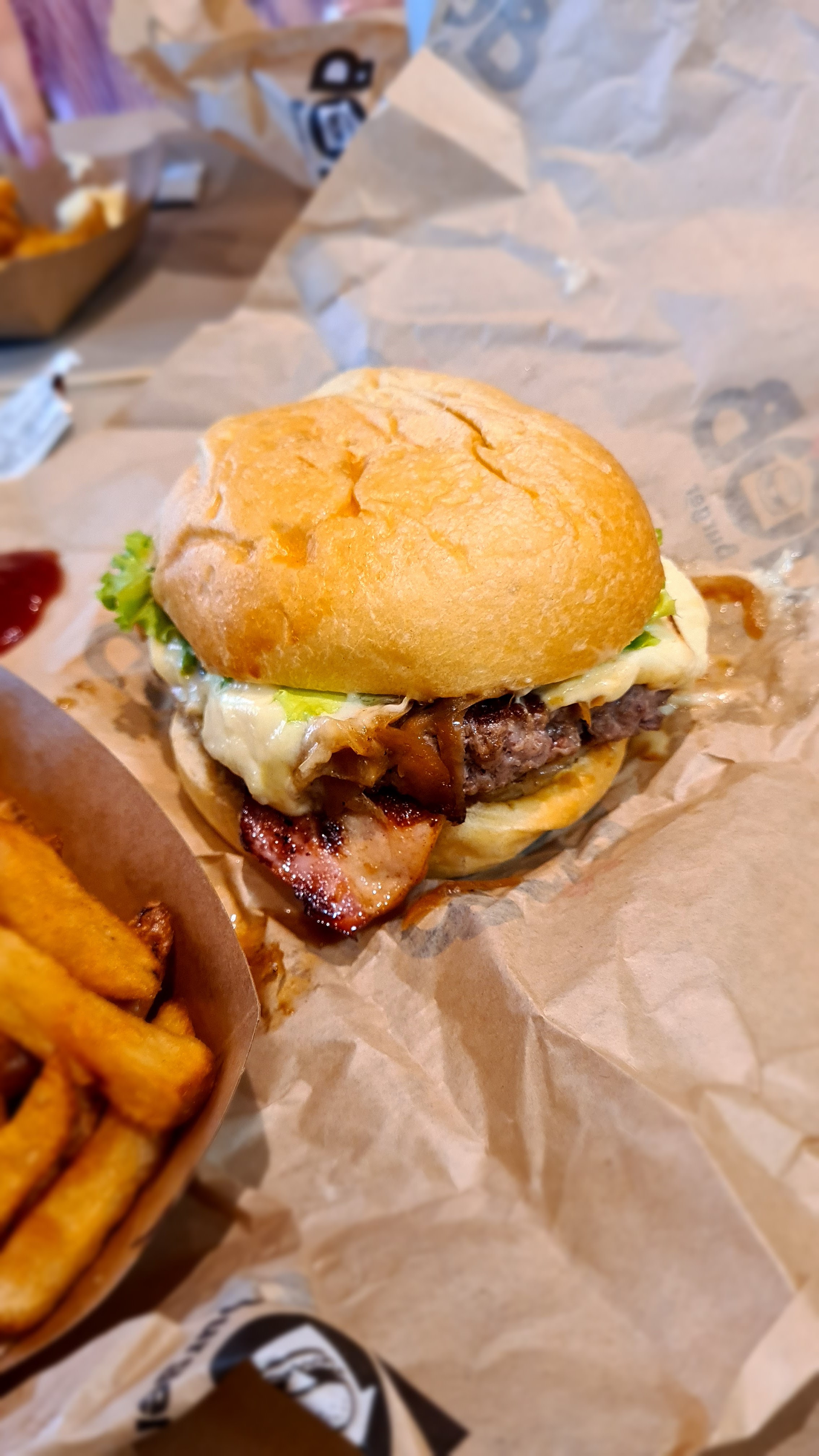 Le burger est plutôt bon, mais le bun n'est pas suffisamment cuit à mon ,gout, et l'attente pour le prix (plutôt élevé), ne répond malheureusement pas à mes attentes.