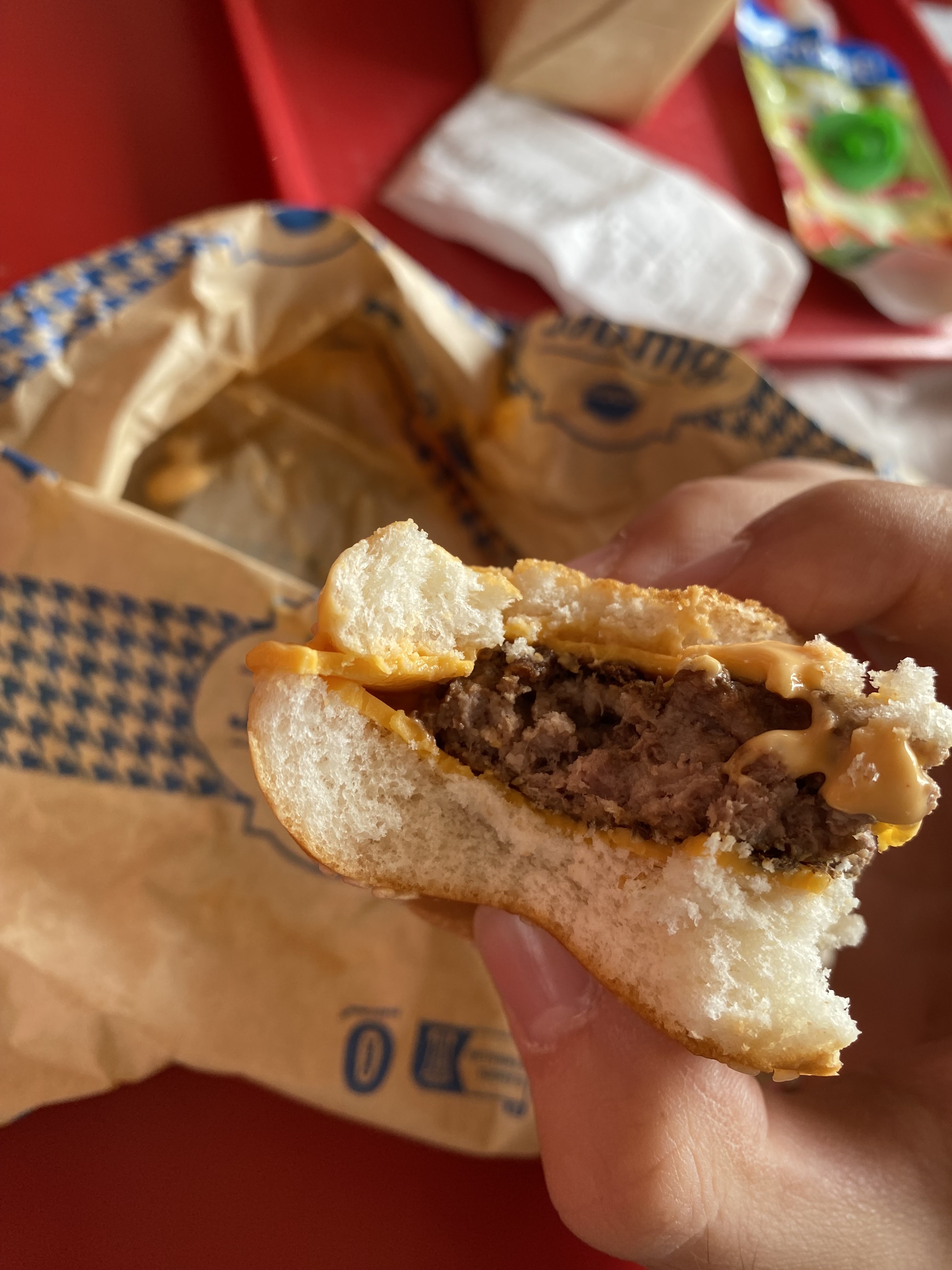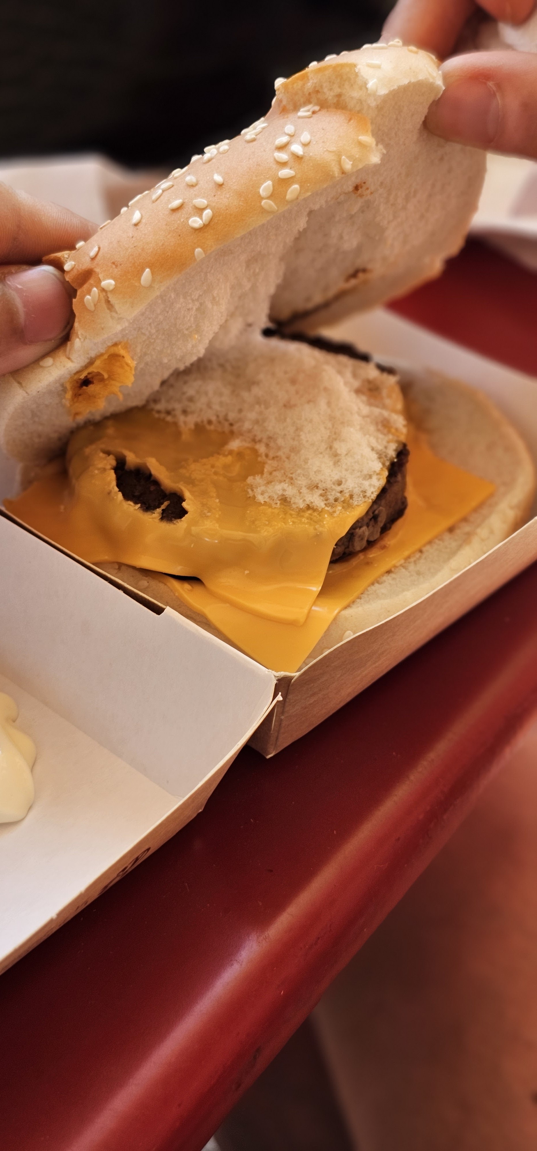 Patienter 50mn pour accéder à la caisse Devoir reprendre le serveur qui oublie une frite, une boisson et le dessert enfant Manger un cheeseburger décongelé trop vite au micro-ondes (pain dur et sauce collée à l'intérieur du pain) Ne pas s'éloigner des toilettes les 2 jours suivants Une expérience Boom Boom sans aucun doute
