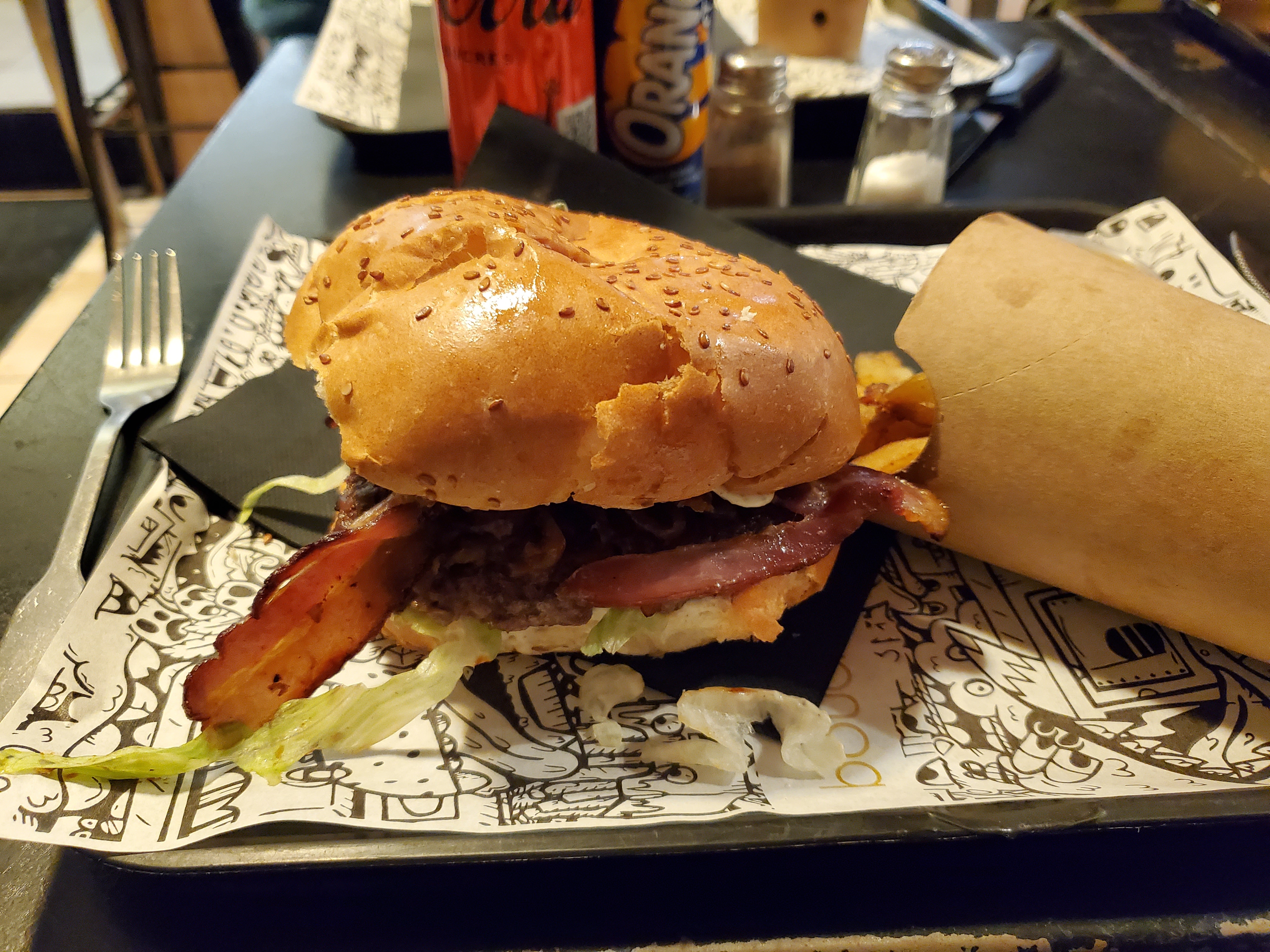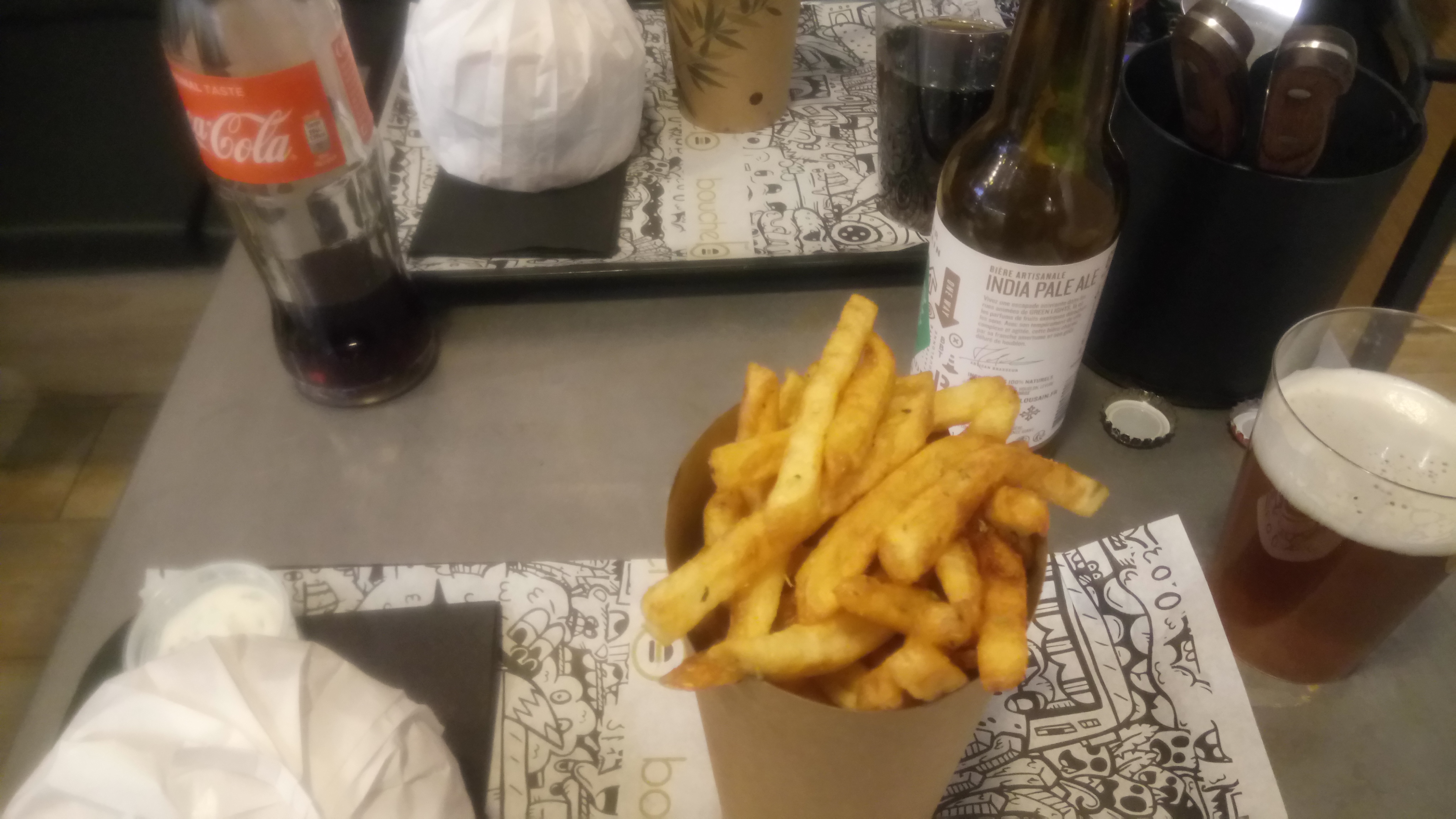Burger bon mais frites catastrophiques pour le prix (graillons, trop cuites, minuscules)