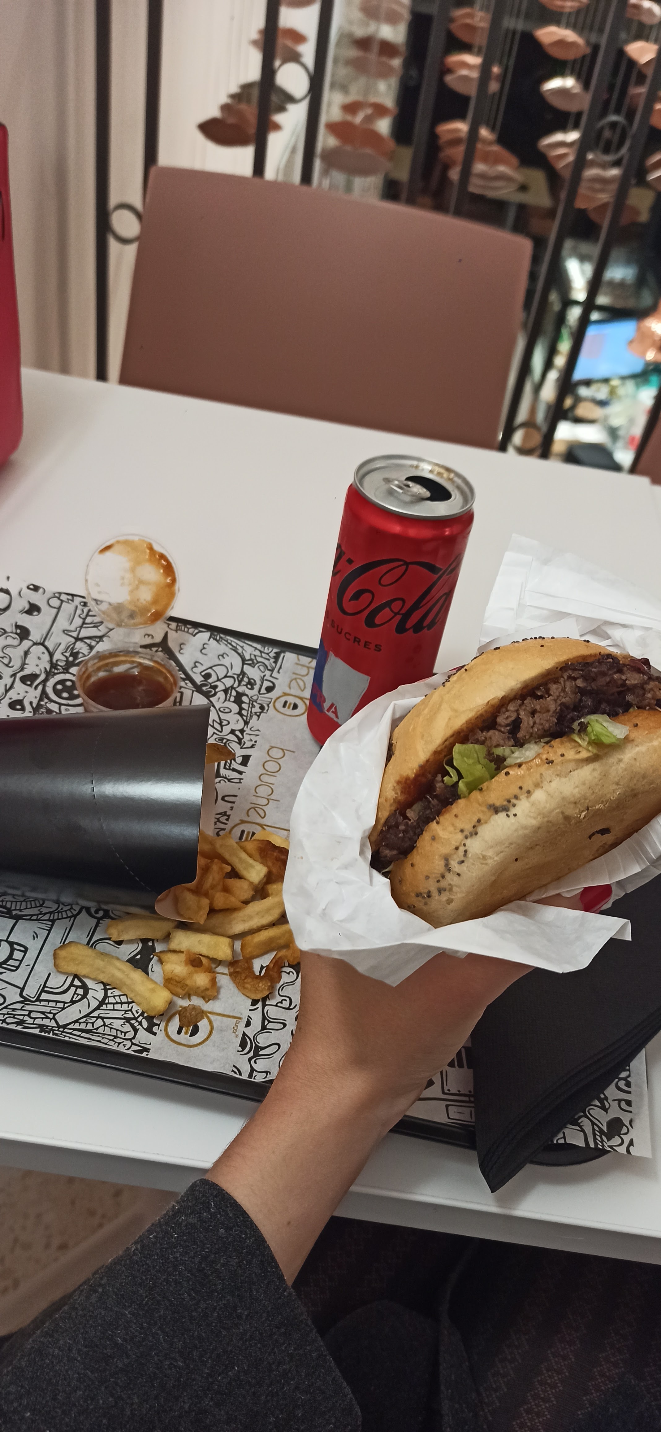 Très déçue de l'expérience ! Une seule personne pour la prise de commande, la cuisine, le service et le nettoyage... En plein rush de midi c'est un peu hallucinant... Salle sans chauffage, pas vraiment propre, sandwich très gras, pain à burger très froid, rien que des petits bouts de frites...