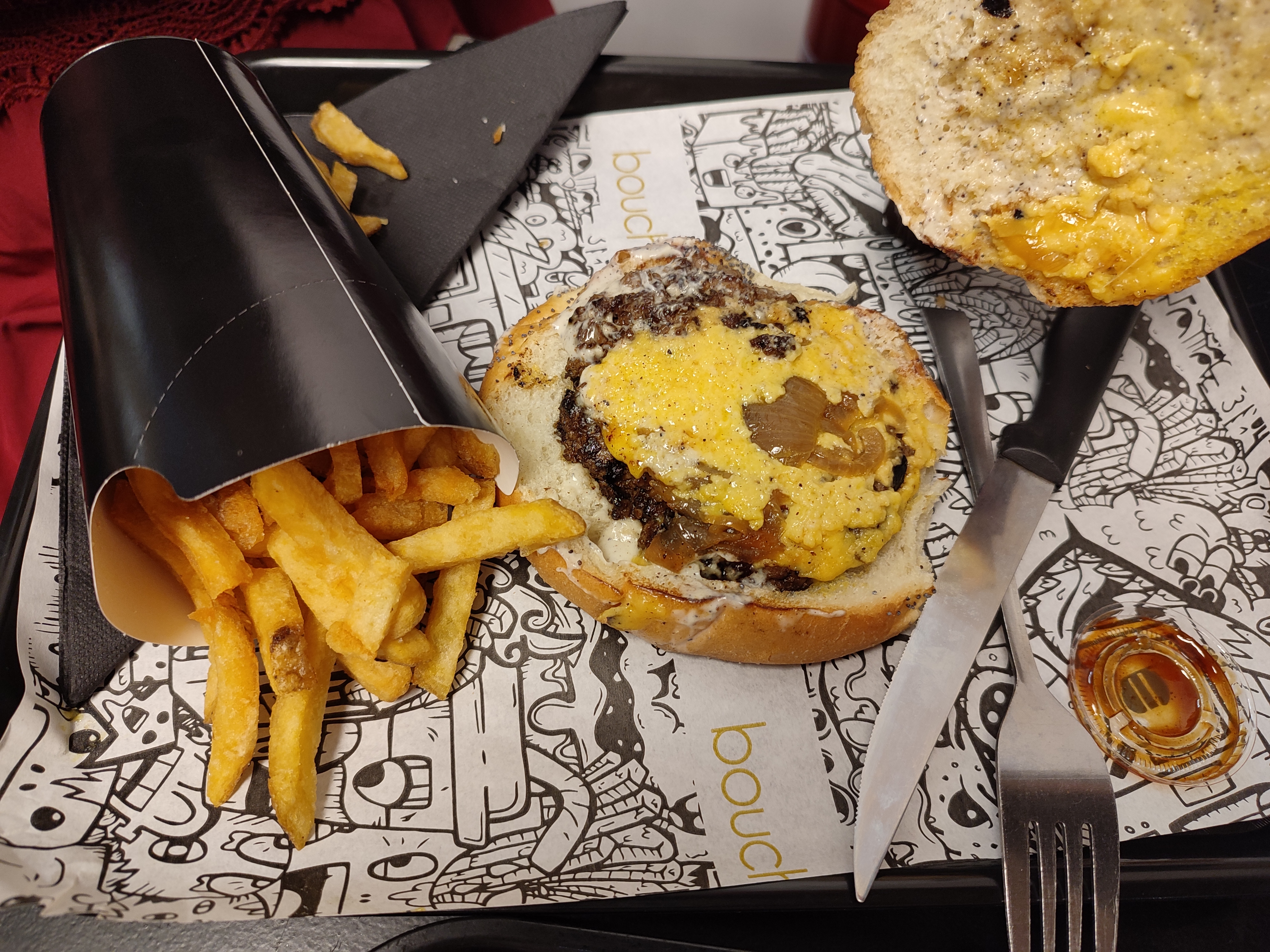 J'ai mangé deux fois Bouche B, la première sur Uber Eats, premier burger à Toulouse, j'ai pu choisir la cuisson, carré dans l'axe. 5/5. Frites maisons, burger cuisson bleue (j'attribue une haute importance à la qualité de la viande et à sa cuisson), tout était au top. Deuxième fois dans la Street, à la maison mère, bien servis. ça manque pas de place mais on est dans la rue, y'a du passage, c'est pas un restau où t'as envie de te poser 2h t'as capté. J'ai emmené mes potes et ils ont kiffés, à forcer d'en parler. Encore une fois cuisson parfaite (comme j'aime), viande délicieuse. On est 2/3 à avoir trouvé les frites un peu trop cuites et/ou sèches, c'était dommage pour le coup mais voilà, un +1 pour des frites maison. Possibilité de choisir son steak végétarien, -2 € sur tous les menus pour les étudiants, le délire est bon.