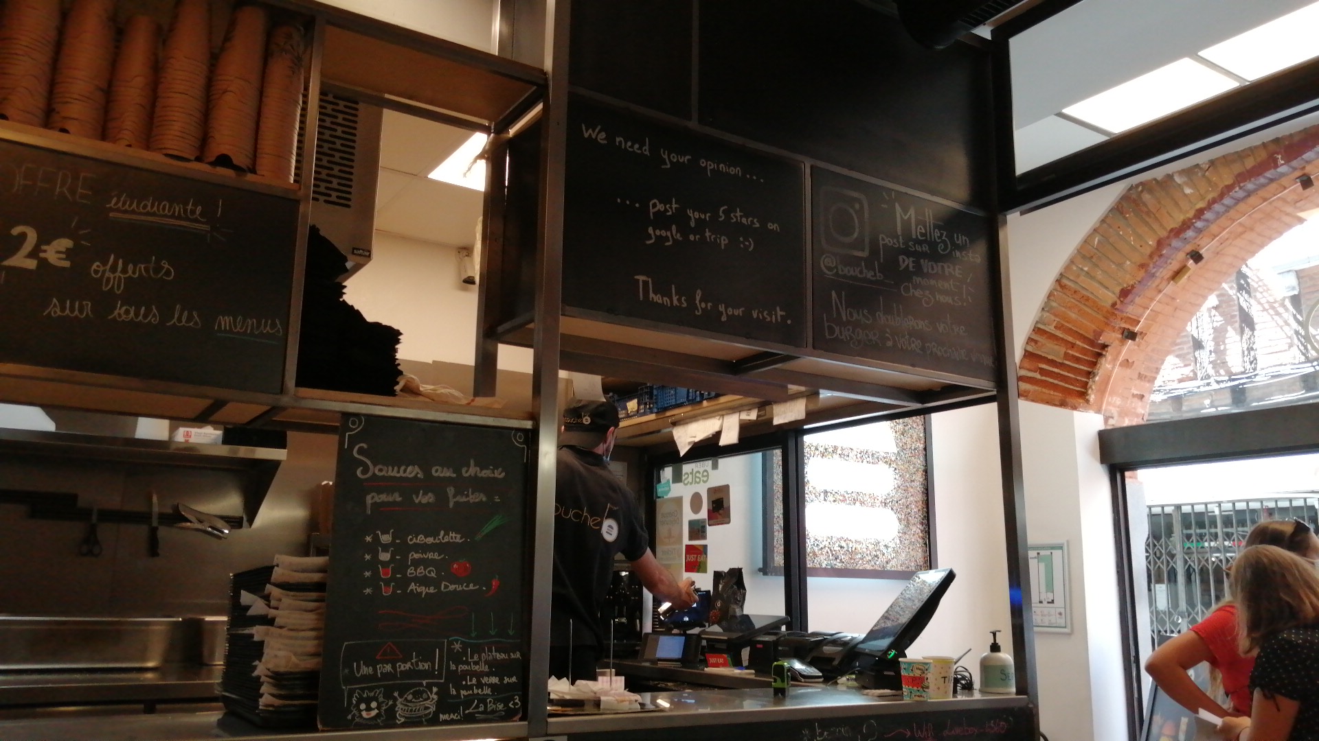 Pour le coup cette expérience nous a littéralement laissés « bouche b ». C’était la PIRE expérience que j’ai pu vivre pour un burger. Un seul employé présent pour TOUT assurer ! C’est inadmissible de la part du patron d’ouvrir un restaurant dans ces conditions. Tout était sale : les toilettes, le sol du restaurant, la cuisine, vraiment tout. Il y avait une seconde personne « qui ne travaille pas ici mais qui est là pour aider » selon ses propos, qui fait des blagues aux clients, qui a osé me faire 2 blagues et rire de moi avec d’autres gens sur place alors que j’étais déjà choqué de l’expérience que j’étais en train de vivre. RIEN ne peut justifier d’ouvrir dans ces conditions, on est au bord de l’insalubrité. D’après ce que j’ai compris il y avait à la base plus de 5 employés ? Le pauvre homme qui se retrouve seul fait son maximum mais cela ne permet malheureusement pas de faire tourner correctement et proprement un resto de burger censé être une institution toulousaine (d’autant qu’il n’y a même pas de lavabo dans la cuisine directement ! Donc l’employé fait les burgers tout en encaissant les gens…). J’espère que le patron verra bien ce commentaire car il est le seul responsable de cette situation. Si pas assez d’employé, alors pas d’ouverture.