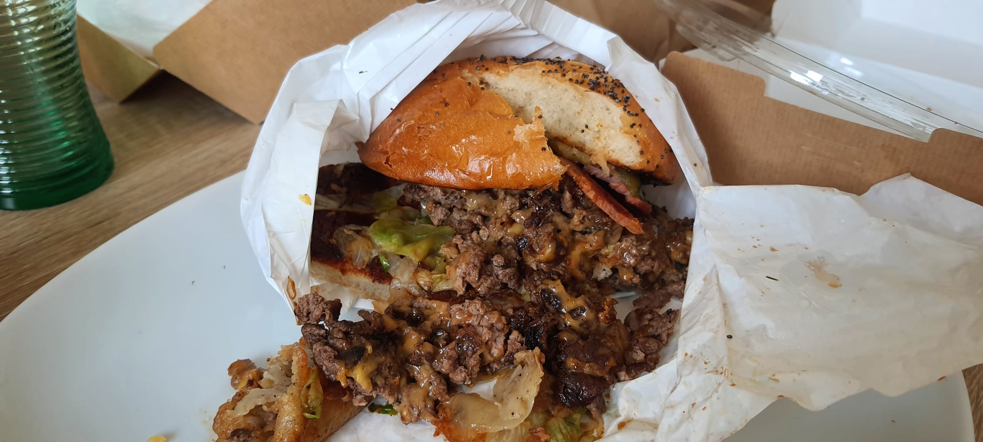 Personnel très sympa, nous avons fait deux commandes (dernières commandes avant de fermer), ils nous ont demandé s'ils pouvaient rassembler les deux dans le même sac et fermer le sac pour garder la chaleur. Accepté de notre part. Arrivés à l'appartement, un burger veggie en moins... sympa vu le prix. Le lendemain j'appelle pour expliquer et ils me répondent qu'ils ne peuvent rien faire... J'espère que le personnel a apprécié leur repas gratuit de fin de service (ironique), payé par mon amie, étudiante en difficulté financière...