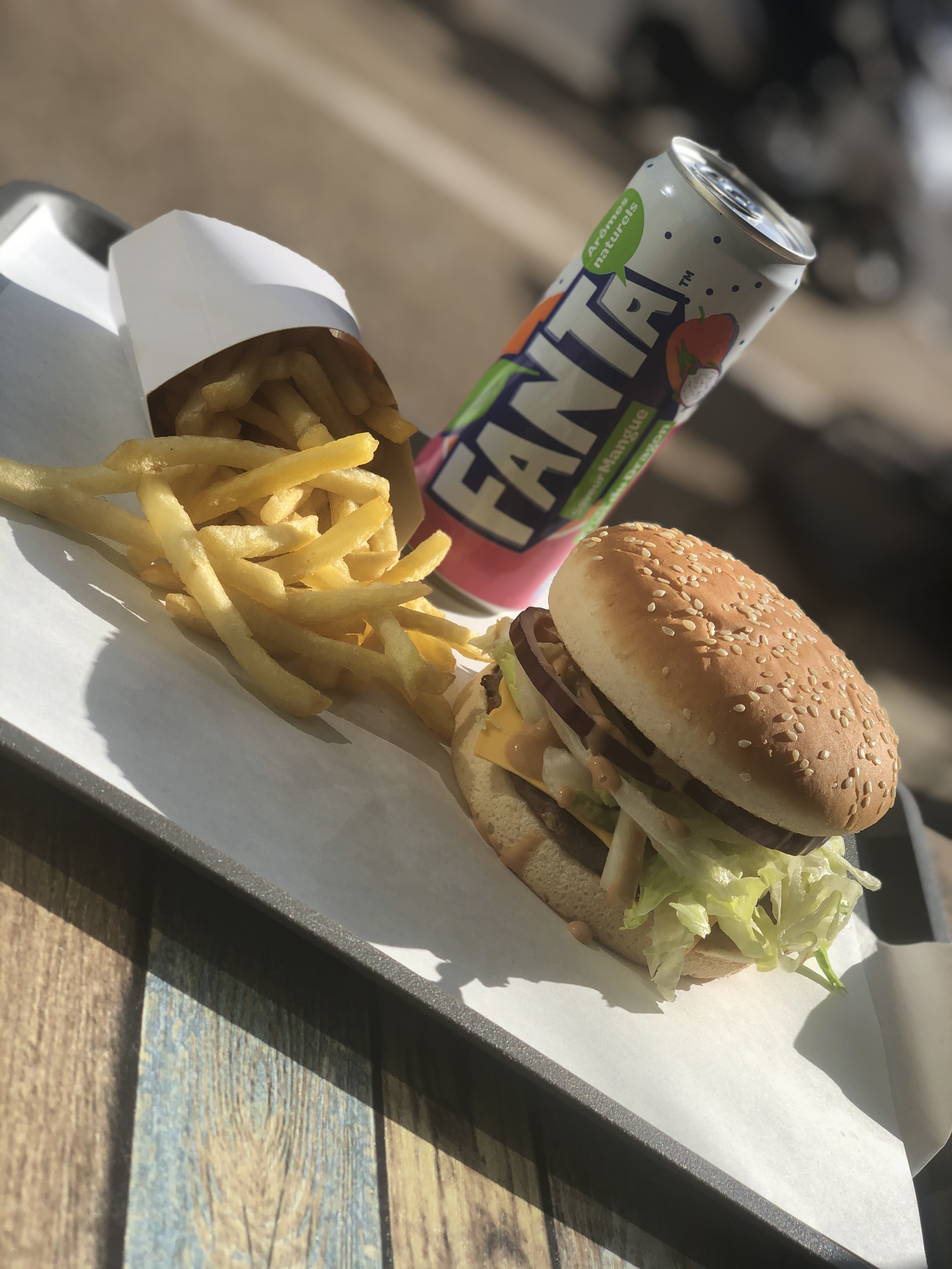 Pain dur qui casse, frites en morceau que j'ai pas terminé, cher pour ce que c'est. Franchement très déçu. Et manque du savon aux toilettes.