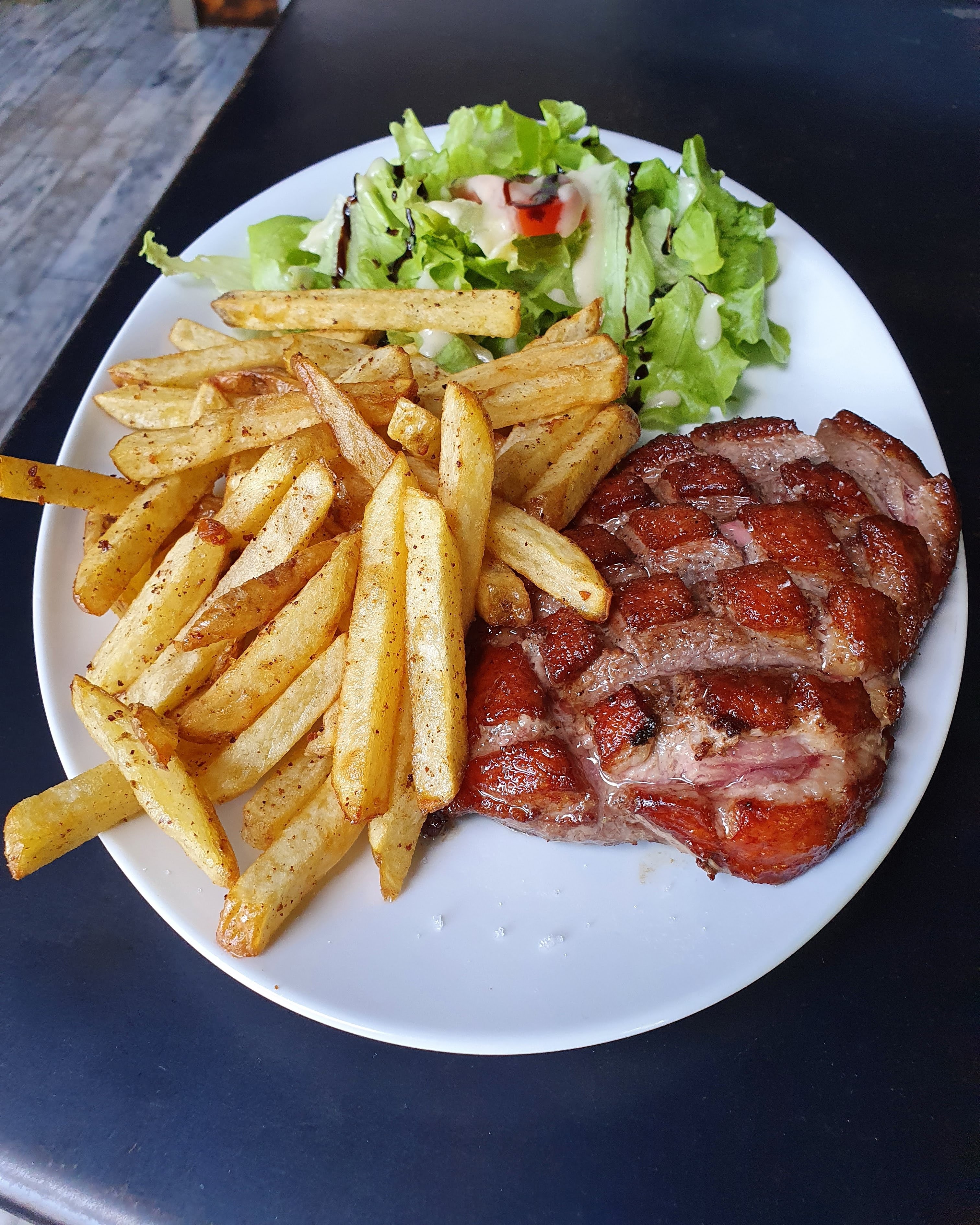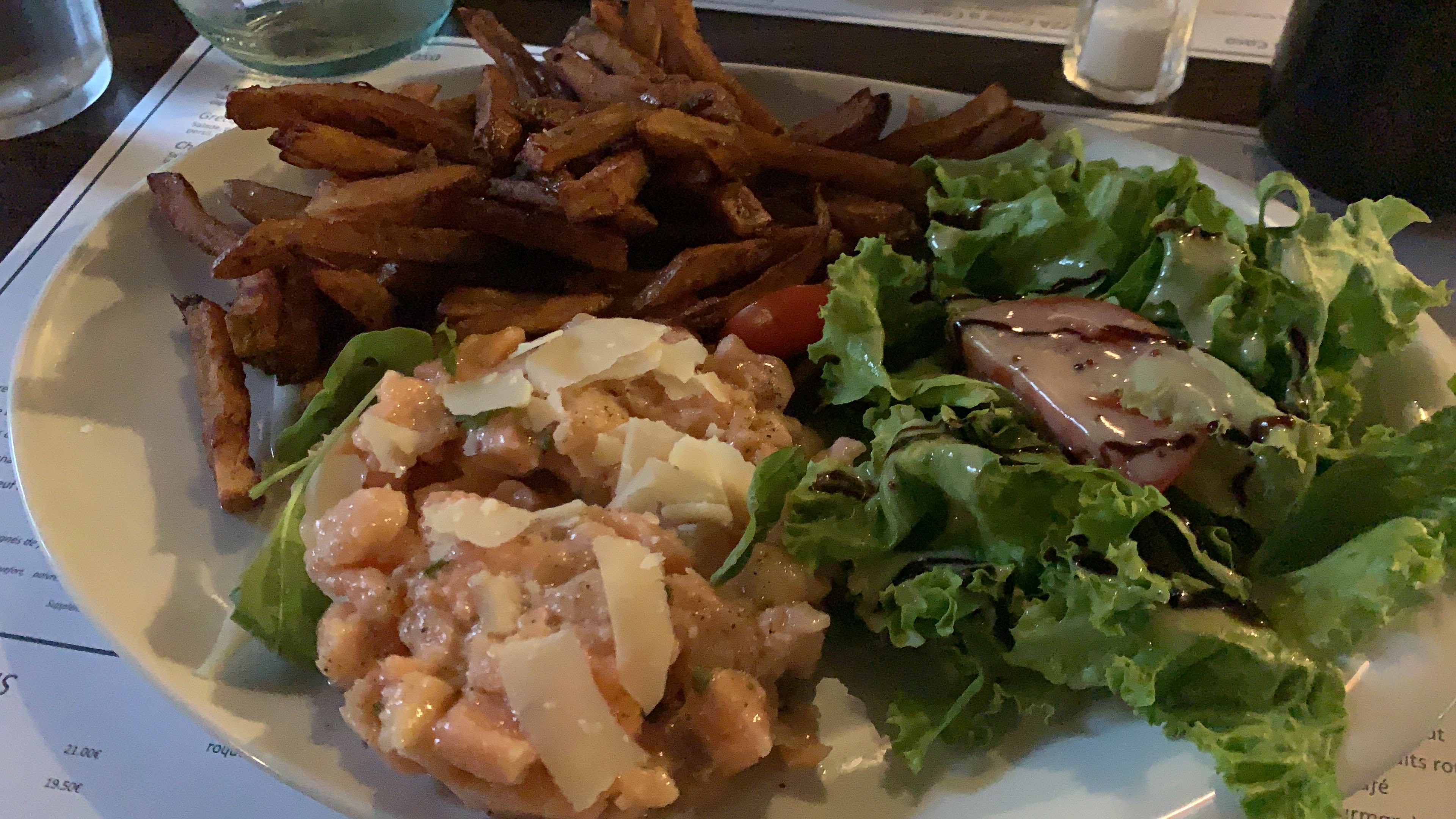 Trouve par hasard car nous avions envie d’une pizza. Pas de bol la serveuse nous apprend une fois installé qu’il n’y a pas de pizzas ce soir.. mes enfants se sont rabattus sur des burgers qu’ils ont jugés bien bons. En revanche avec mon épouse nous nous sommes rabattus vers des pâtes. Assiettes très copieuses. J’ai pris des pâtes au bleu qui étaient surtout à la crème avec un goût peu marqué en roquefort. Ma femme a pris des pâtes à la carbonara et la c’est le drame. Pates baignant dans la crème sans saveurs. On le répète pas assez mais IL N’Y A PAS DE CRÈME DANS LES PÂTES À LA CARBONARA!!!! Forcément on a été déçu….