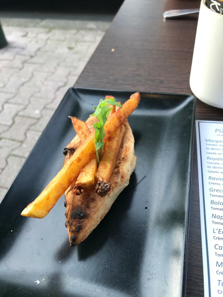 Pain hyper bon, frites sympa, deco vraiment cool et le serveur bien sympa aussi. Qualité/prix excellente, allez y les yeux fermés