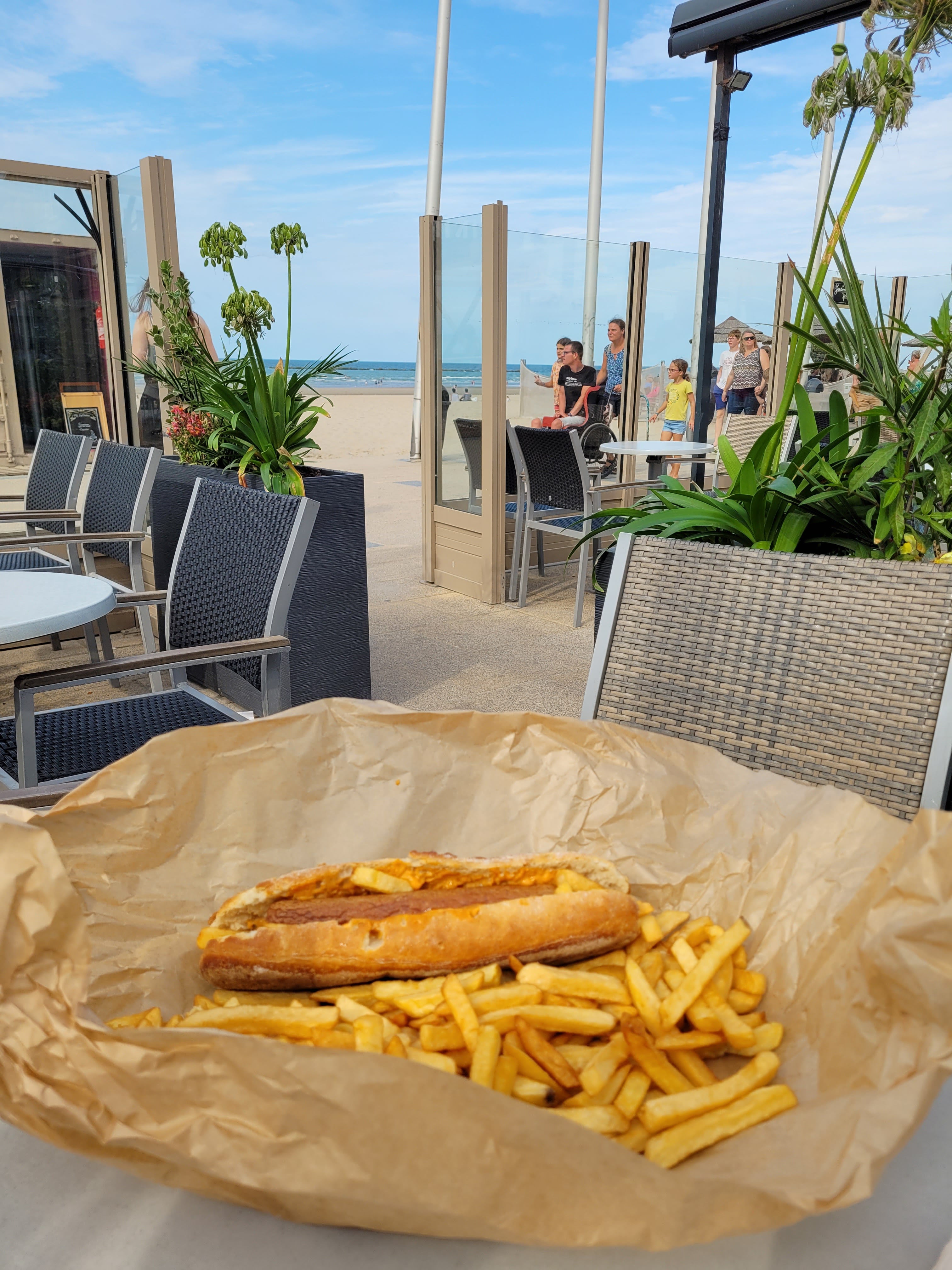 Premier rayon de soleil à 13h30, un jour férié sur la plage à la recherche d´une terrasse désinfecté à chaque client, de produits frais, goûteux avec un bon rapport qualité prix...Le tout réuni ici, servi avec un sourire chaleureux ❣ Merci pour ce burger préparé avec goût, un délicieux steak haché frais, croustillant de bonne crudités et saucer avec modération..une tuerie dans son pain frais❣ Nous reviendrons