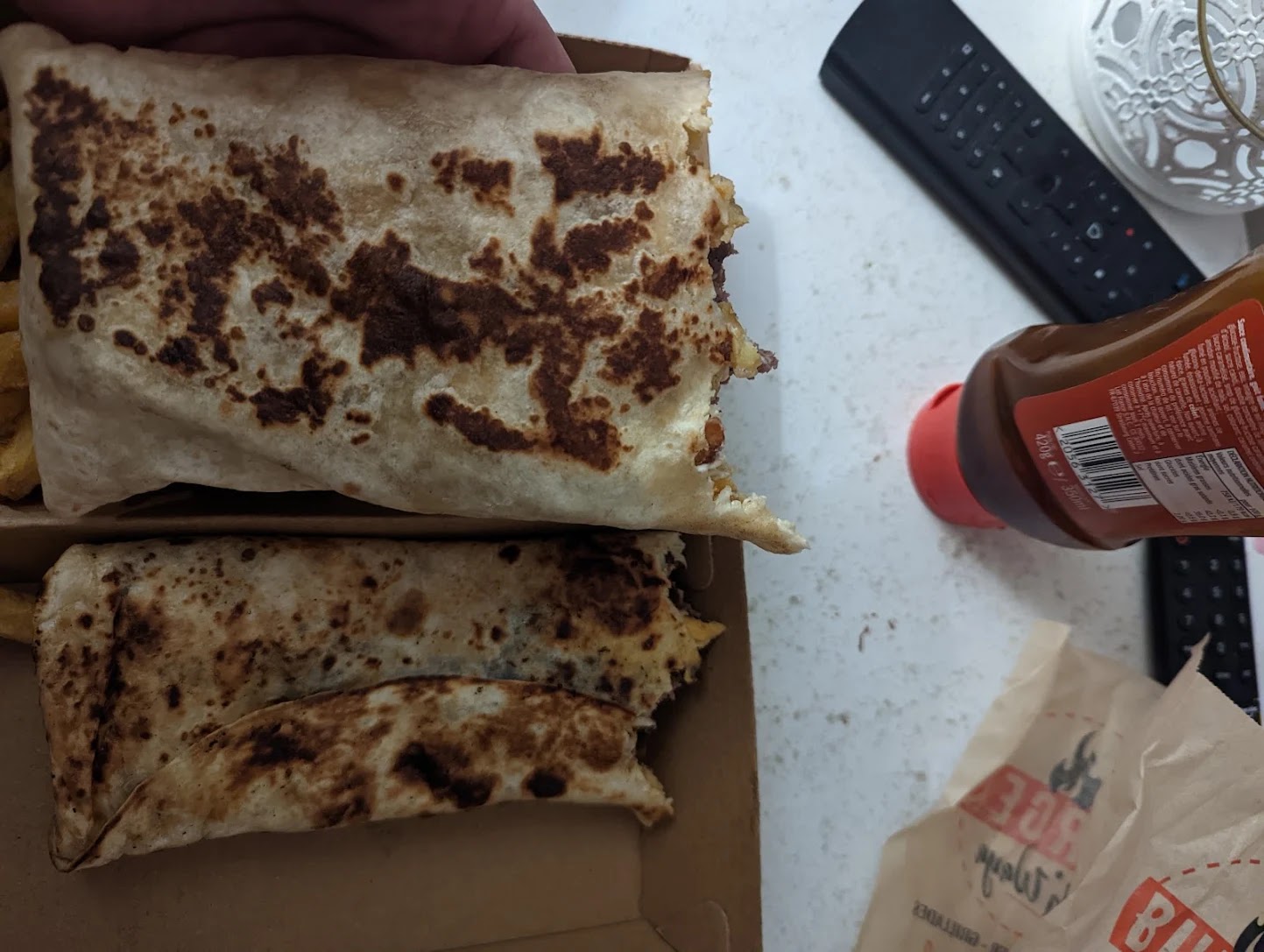 Commande passée la semaine dernière, le compte Google n'était pas encore créé, j'ai commandé à Rouen sans remarquer, obliger d'aller chercher la commande à St hilaire vraiment dommage.. (ça va pour nous car on était en voiture mais pour les autres pas cool..) après vérification le numéro de petit quevilly n'était afficher nul part... Bref pas de geste commercial pour cette erreur qu'on ne pouvait pas savoir ignorant l'existence de celui de Rouen.. Obliger d'aller en centre ville pendant le confinement.. Sinon burger Special A excellant avec le fromage au cheddar à l'intérieur 🥰 Ensuite on a commander sur uber eat mais la : Tacos reçu sans sauce fromagère (pas sélectionné de sauce en pansant en avoir dedans) donc sans sauce et frites à l'intérieur donc au final pas vraiment un tacos mais une galette sans sauce.. Très dommage.. Voilà voilà